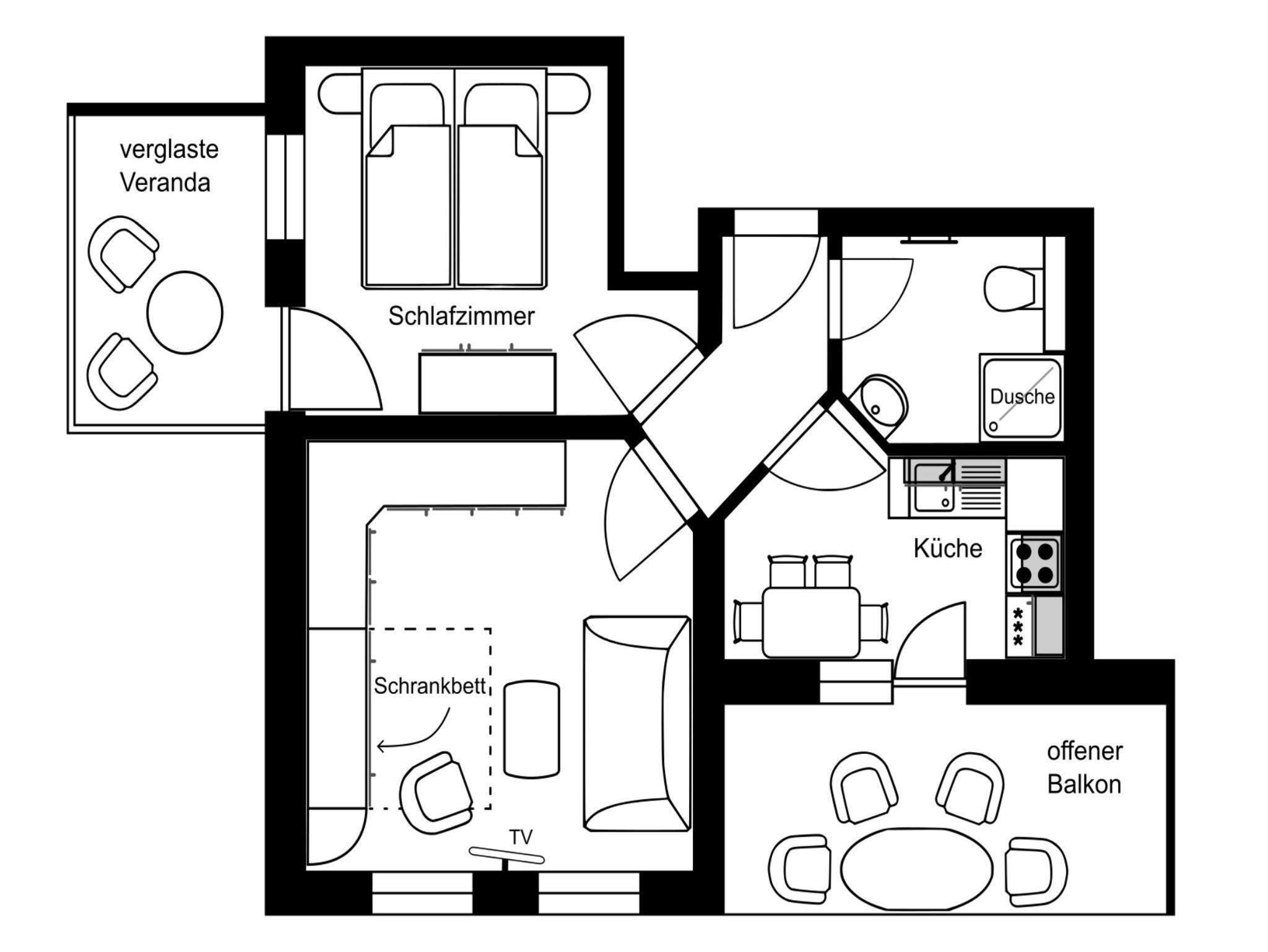 • offener Balkon sowie verglaste Veranda