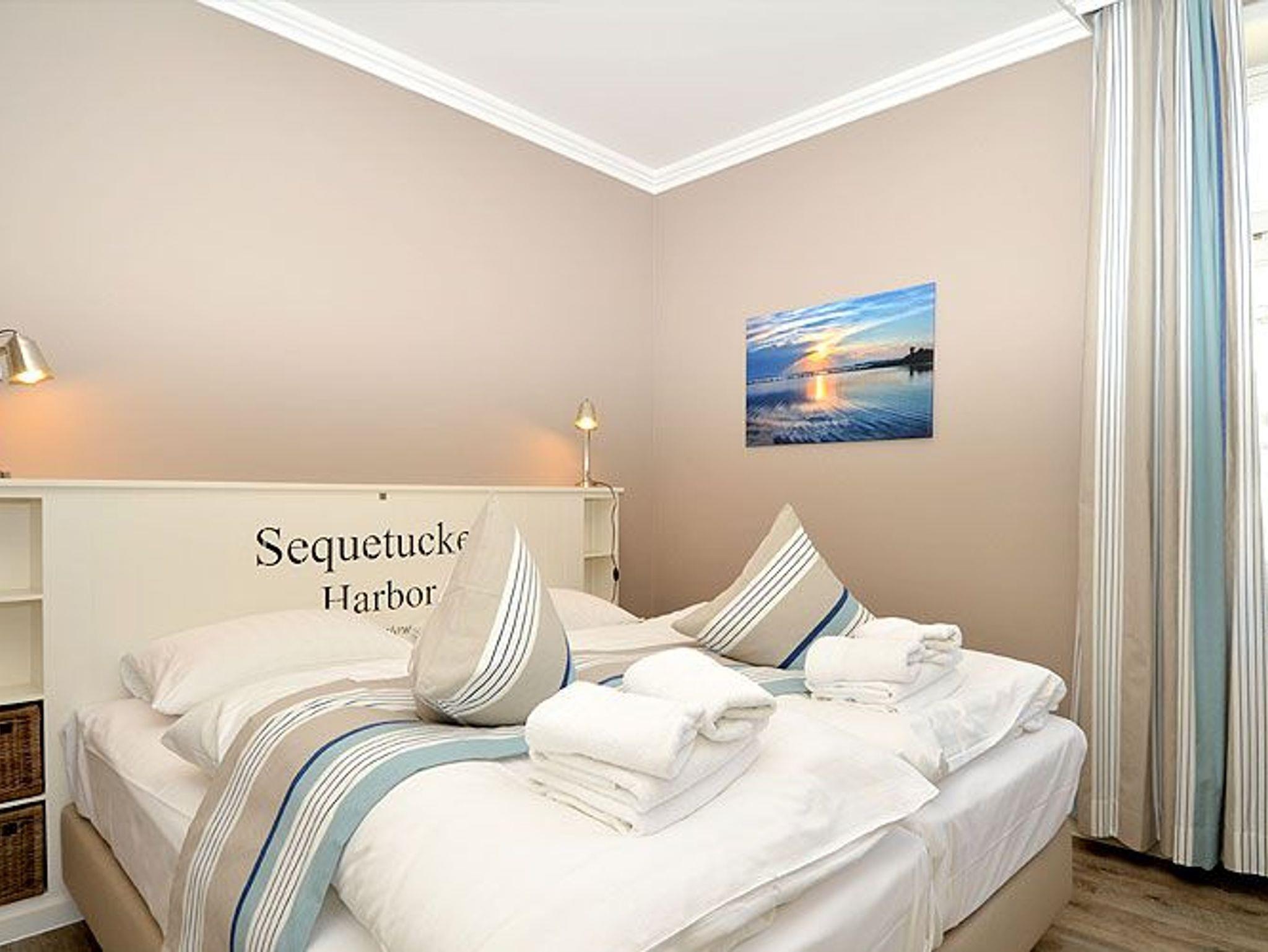 Das gemütliche Schlafzimmer wirkt durch das 5 Star-Deluxe-Boxspring-Doppelbett (1,80 x 2,00 m) mit Komforthöhe und dem ausreichenden Stauraum für Ihre Garderobe ganz besonders einladend. Die Wohnung verfügt ebenfalls über ein modernes Duschbad.