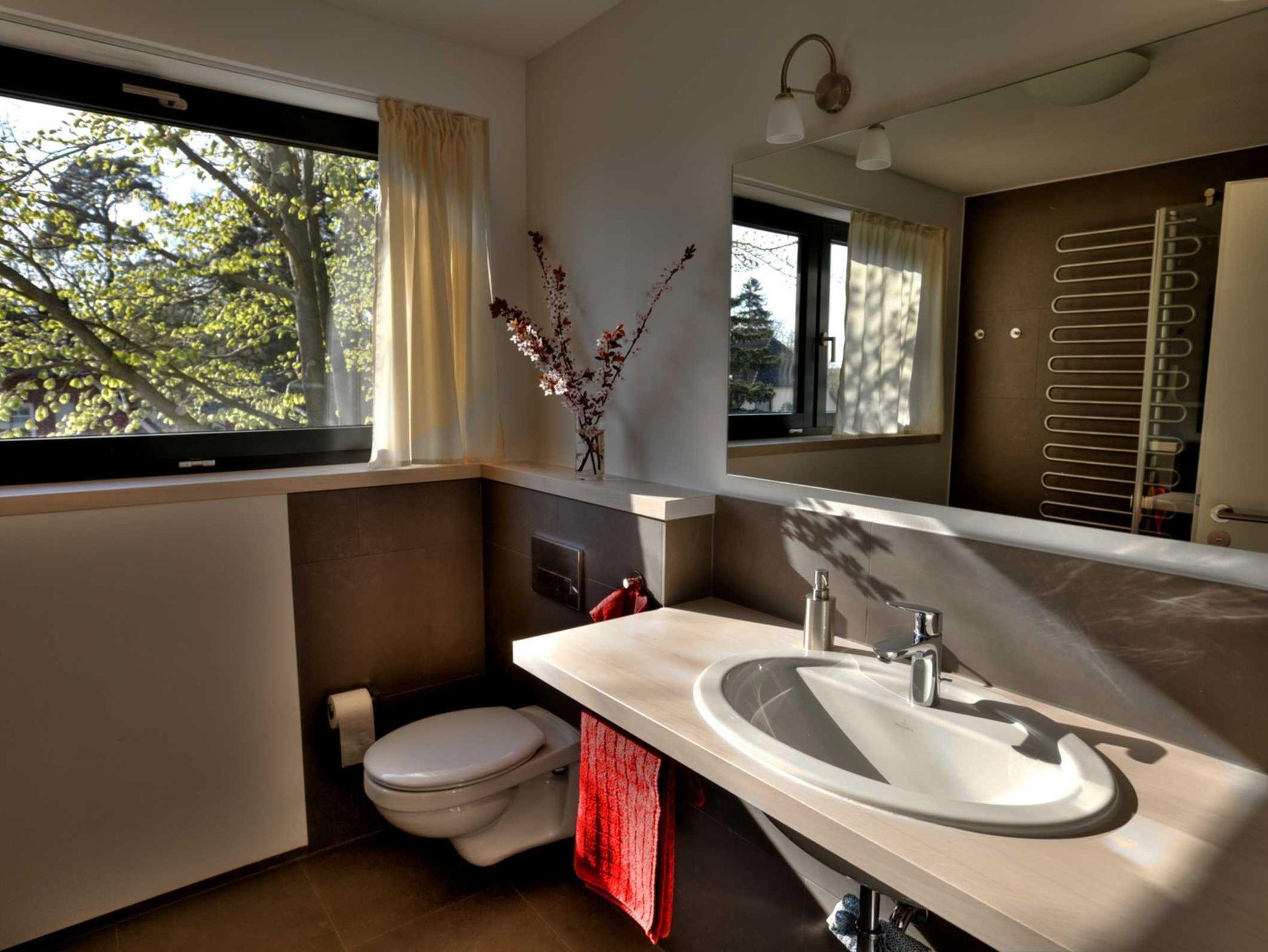 Ein Gäste-WC mit Dusche befindet sich neben dem Wohnbereich. Vom Wohnraum führt eine Treppe in den oberen Bereich, wo sich eine weitere Dusche/WC befindet. Ein Schlafzimmer ist mit einem Doppelbett und einem Schreibtisch mit Internetanschluss ausgestattet. Im zweiten Schlafzimmer befinden sich zwei Einzelbetten - von hier erreicht man über eine weitere bequeme Treppe den galerieartigen Spitzboden mit zwei zusätzlichen Schlafmöglichkeiten. Für kleinere Kinder stellen wir Hochstuhl, Kinderbett und Treppenabsperrgitter bereit. Die Betten sind bei Ihrer Anreise bezogen und die Handtücher liegen für Sie bereit.
