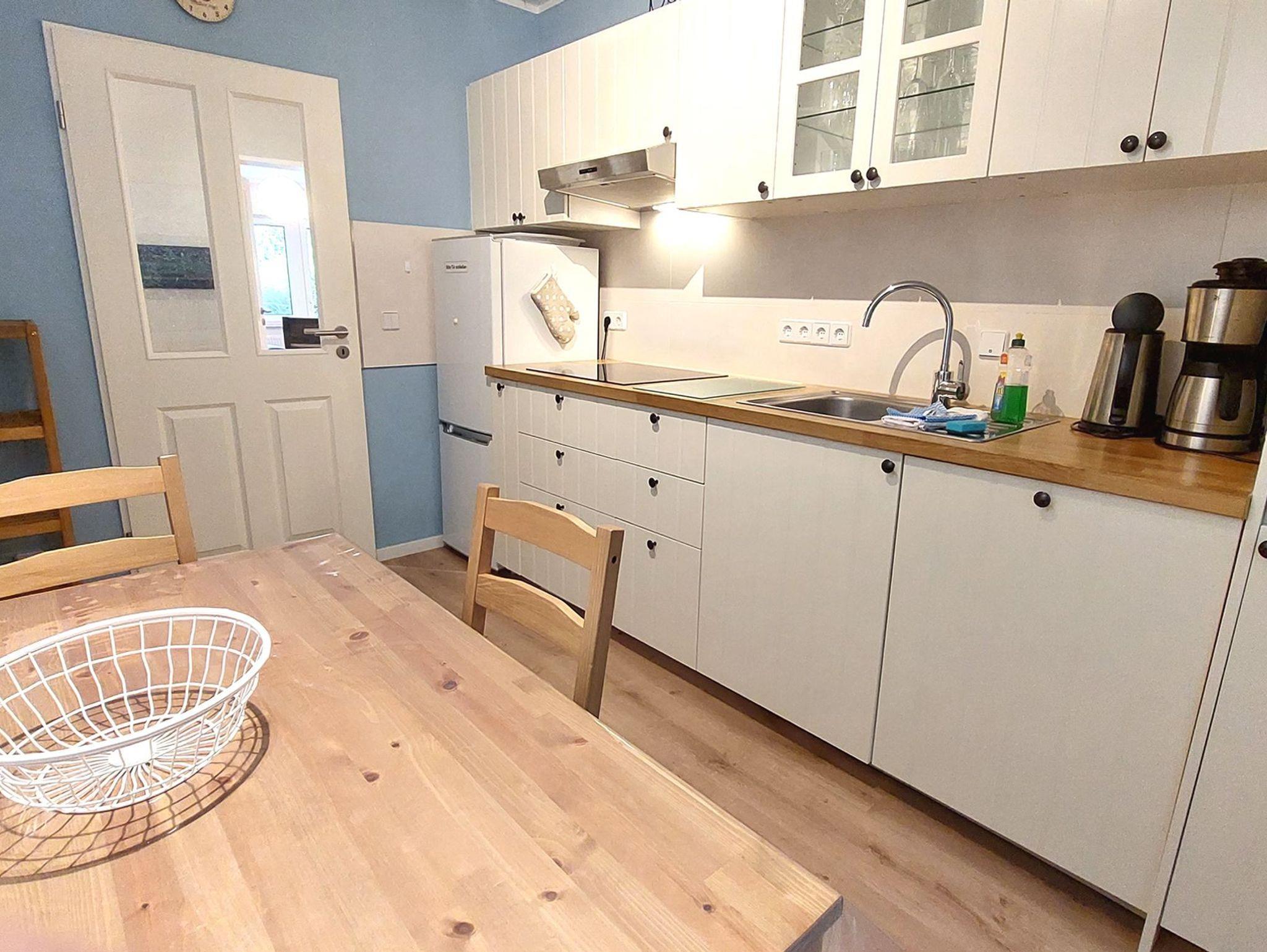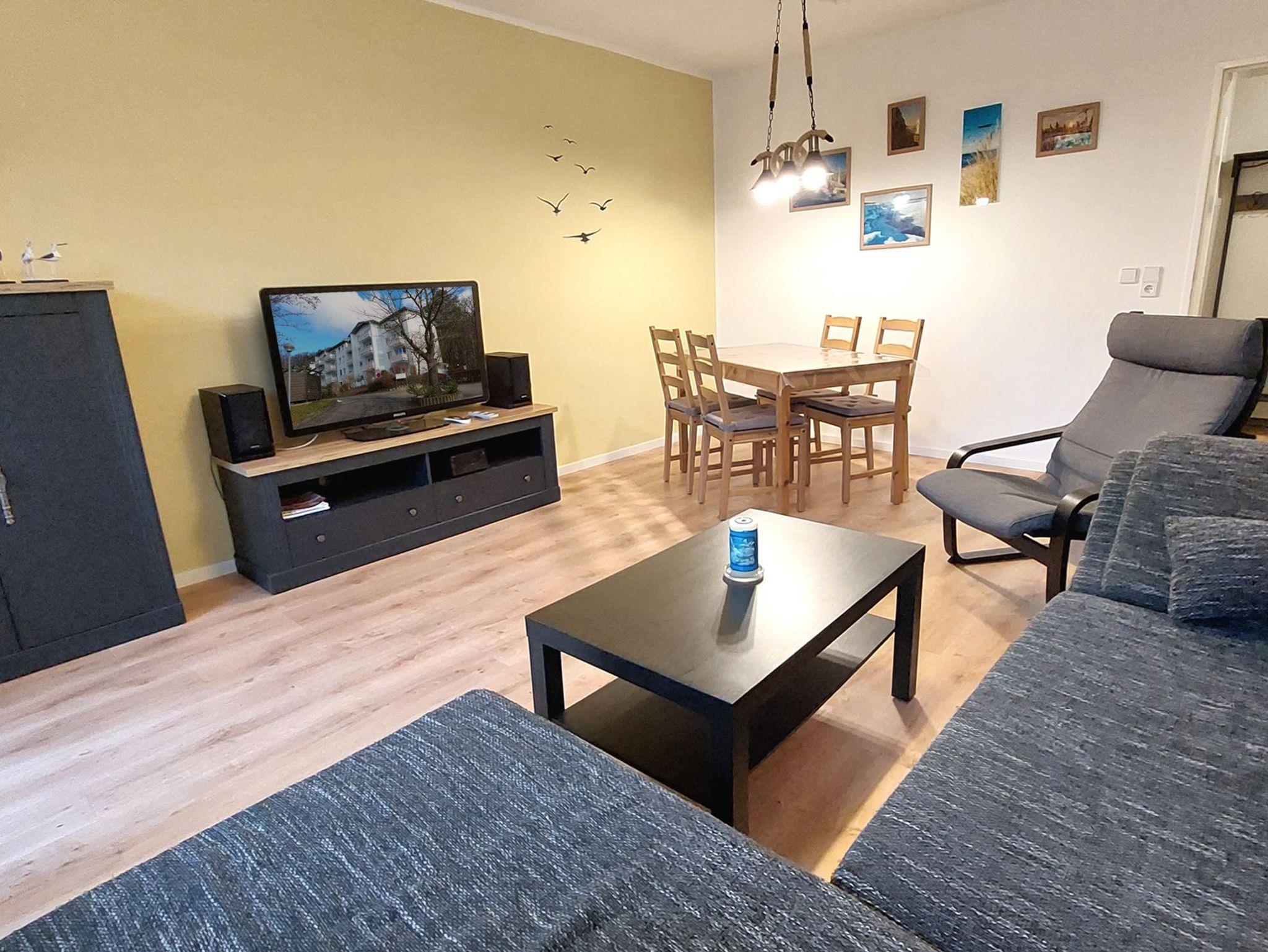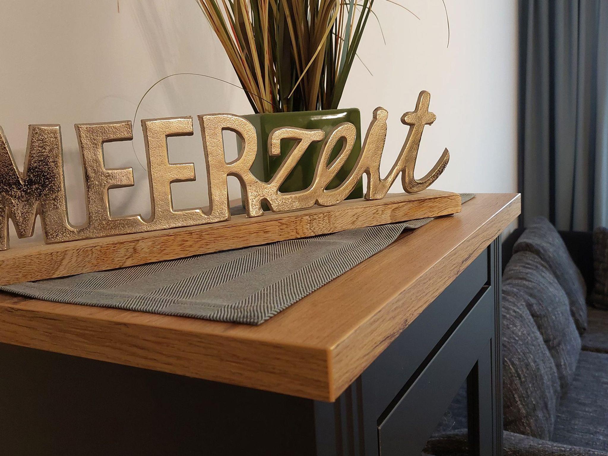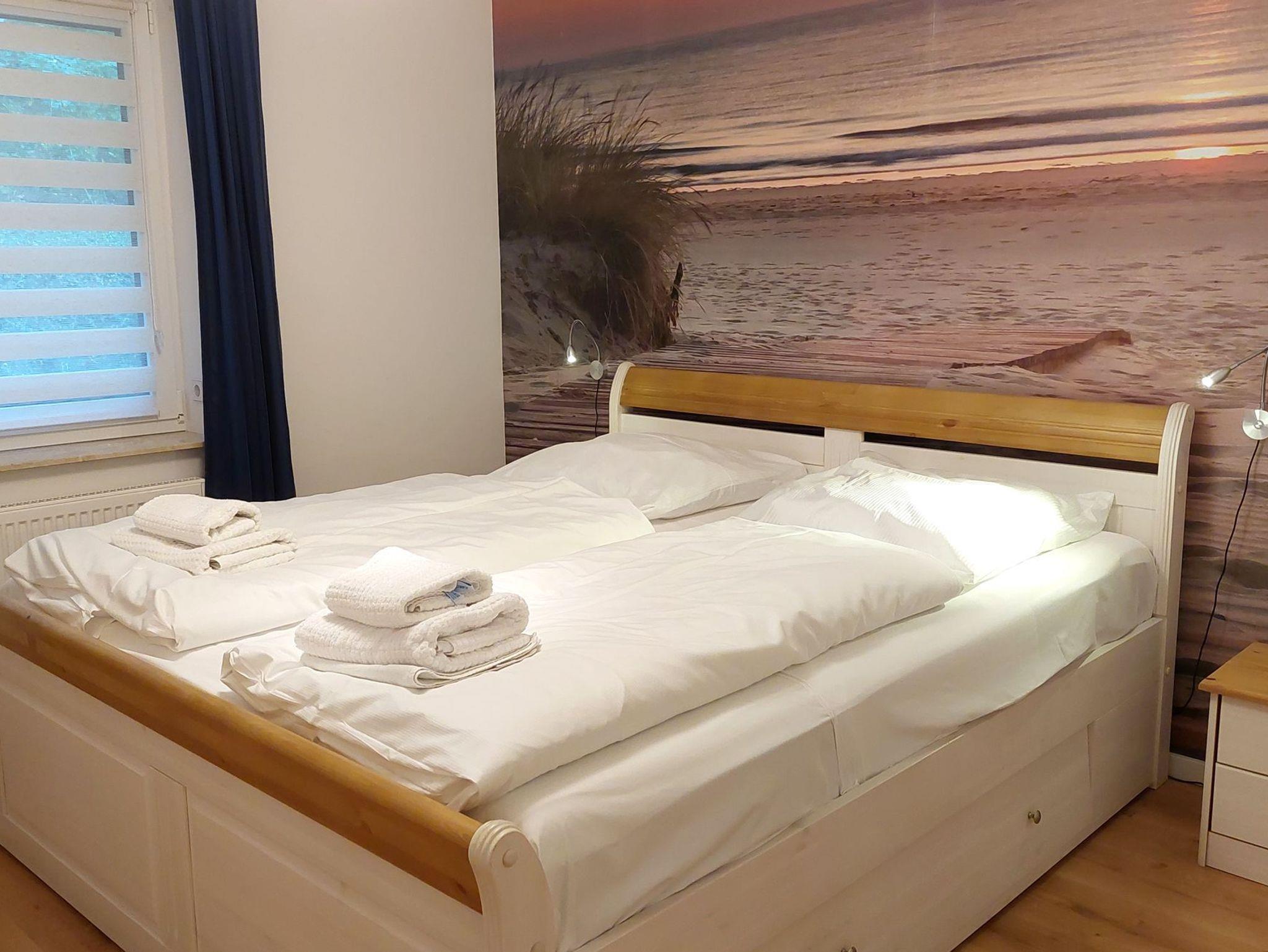 Das 4-Raumapartement MeerZeit ist eine geräumige und familienfreundliche Wohnung mit einer Größe von 78 qm. Sie befindet sich im Erdgeschoss eines Hauses. Die Wohnung verfügt über einen großen Flurbereich mit Garderobe, von dem aus alle Zimmer zugänglich sind. Die separate Küche ist voll ausgestattet und bietet auch einen kleinen Essbereich. Im Badezimmer gibt es eine ebenerdige Dusche, ein WC und eine eigene Waschmaschine. Das Hauptschlafzimmer verfügt über ein Doppelbett. In den beiden Kinderzimmern befindet sich jeweils ein Kojenbett, das je nach Bedarf als Einzel- oder Doppelbett genutzt werden kann. Im Wohnzimmer lädt ein weiterer Essbereich und eine gemütliche Sitzlandschaft zum Verweilen ein. Dort sorgen ein großer Flachbild-TV, kostenfreies WLAN und eine kleine Musikanlage für Unterhaltung bei jeder Wetterlage. Vom Wohnbereich aus gelangt man auf die möblierte Terrasse in südwestlicher Richtung. Von dort aus hat man einen Blick ins Grüne und auch auf den eigenen PKW-Außenstellplatz.