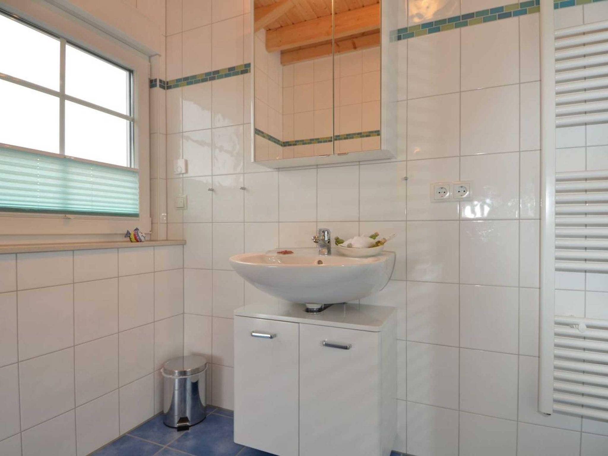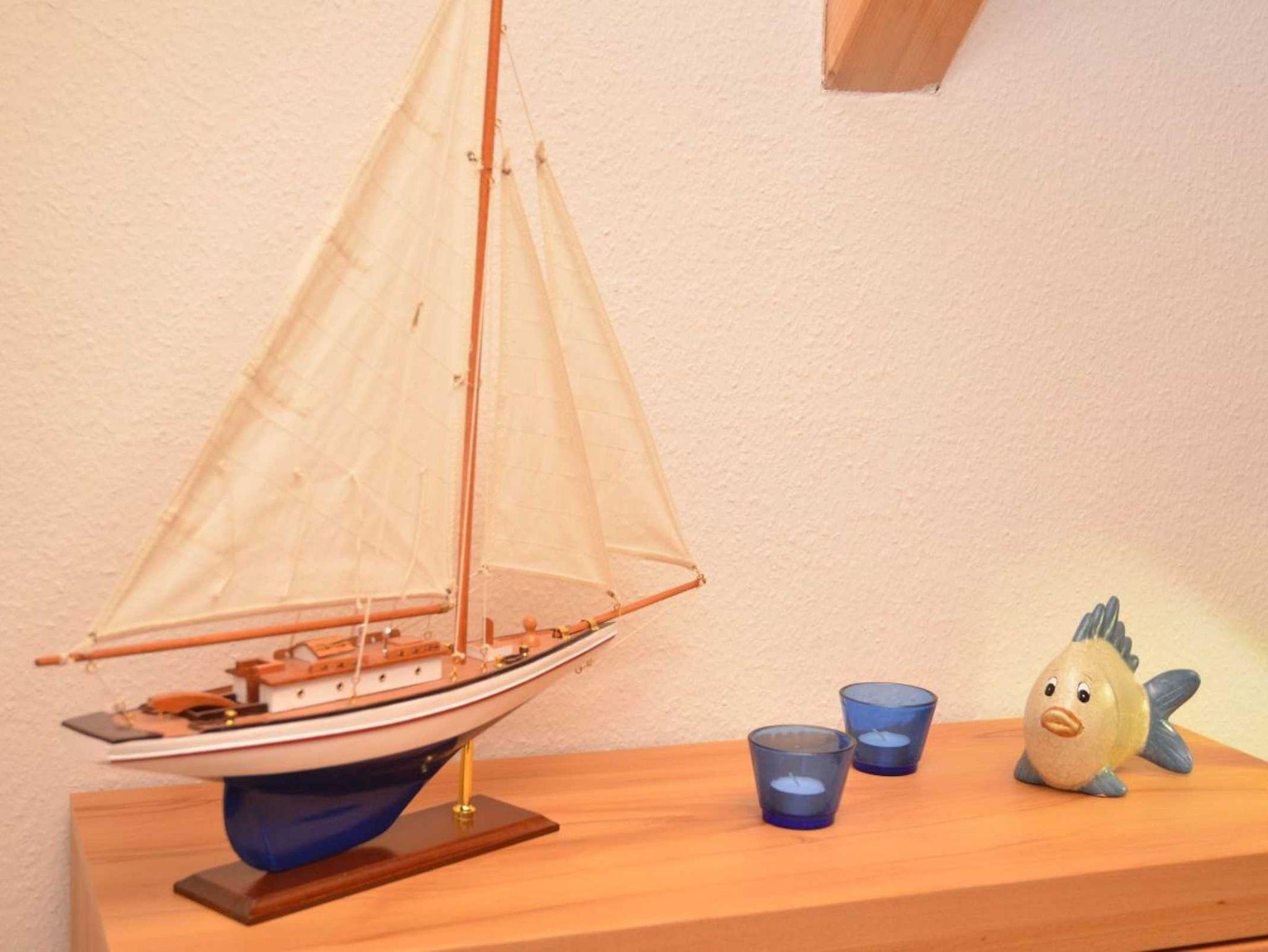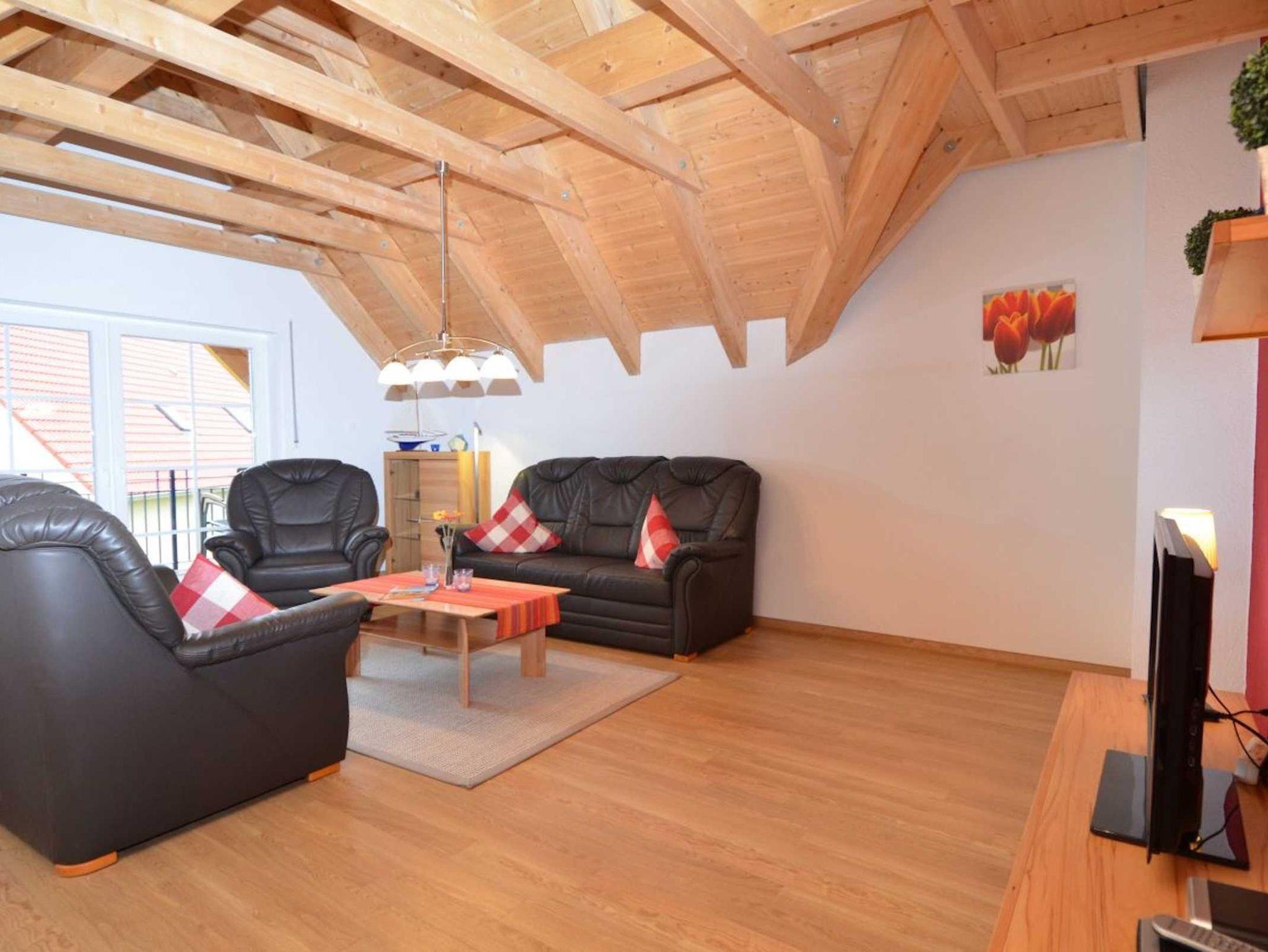 Das 3-Raum-Appartement mit ca. 80 qm Wohnfläche befindet sich im OG des Hauses. Der große, offene Wohn-/Essbereich ist ausgestattet mit einer gemütlichen Couchgarnitur, LCD-TV, Bluray-Player und einer Stereoanlage. Die im Wohnbereich harmonisch integrierte Küchenzeile verfügt über einen Kühl-/Gefrierschrank, Cerankochfeld, Backofen, Spülmaschine, Mikrowelle, Kaffeemaschine, Wasserkocher, Toaster, Handmixer und div. Kleinutensilien. 2 Schlafzimmer mit je 1 Doppelbett bieten ausreichend Stauraum für Ihre Garderobe. Eines der Schlafzimmer verfügt über einen LCD-TV. Alle Räume haben leichte Dachschrägen. Die sichtbaren Holzbalken im Wohn-/Essbereich reichen bis in die Giebelspitze, wo sie für eine besondere, gemütliche Wohnatmosphäre sorgen. Das Bad ist mit einer bodengleichen Dusche ausgestattet. Der bestuhlte, überdachte Balkon ist zur Südseite ausgerichtet. Eine eigene bestuhlte Grillterrasse befindet sich im Garten. Das Nichtraucherappartement ist für 1-4 Personen geeignet.