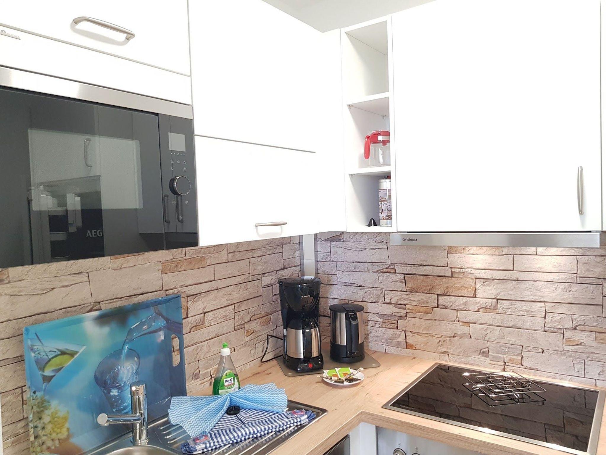 • Küche mit 4 Platten Cerankochfeld, Backofen und Geschirrspüler ,Kaffemaschine, Wasserkocher, Toaster. Dusche ,WC.