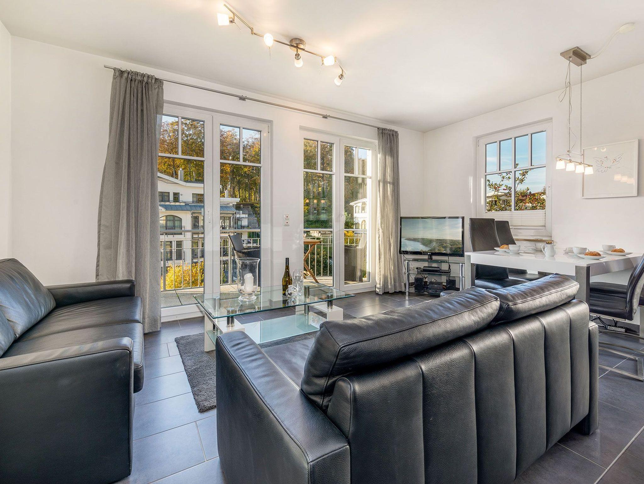 In der Villa Rosa begrüßt Sie die Ferienwohnung Nr. 11 Bellevue mit drei sehr geschmackvoll und hochwertig eingerichteten Zimmern und zwei Balkonen zu einem wahren Traumurlaub auf der Insel Rügen. Die Räumlichkeiten sind angenehm lichtdurchflutet und bieten allen Komfort, den man sich in seinem Urlaub wünschen kann. Und die kleinen Gäste wird es ganz besonders freuen, dass es im Garten hinter dem Haus sogar einen extra Spielbereich gibt.