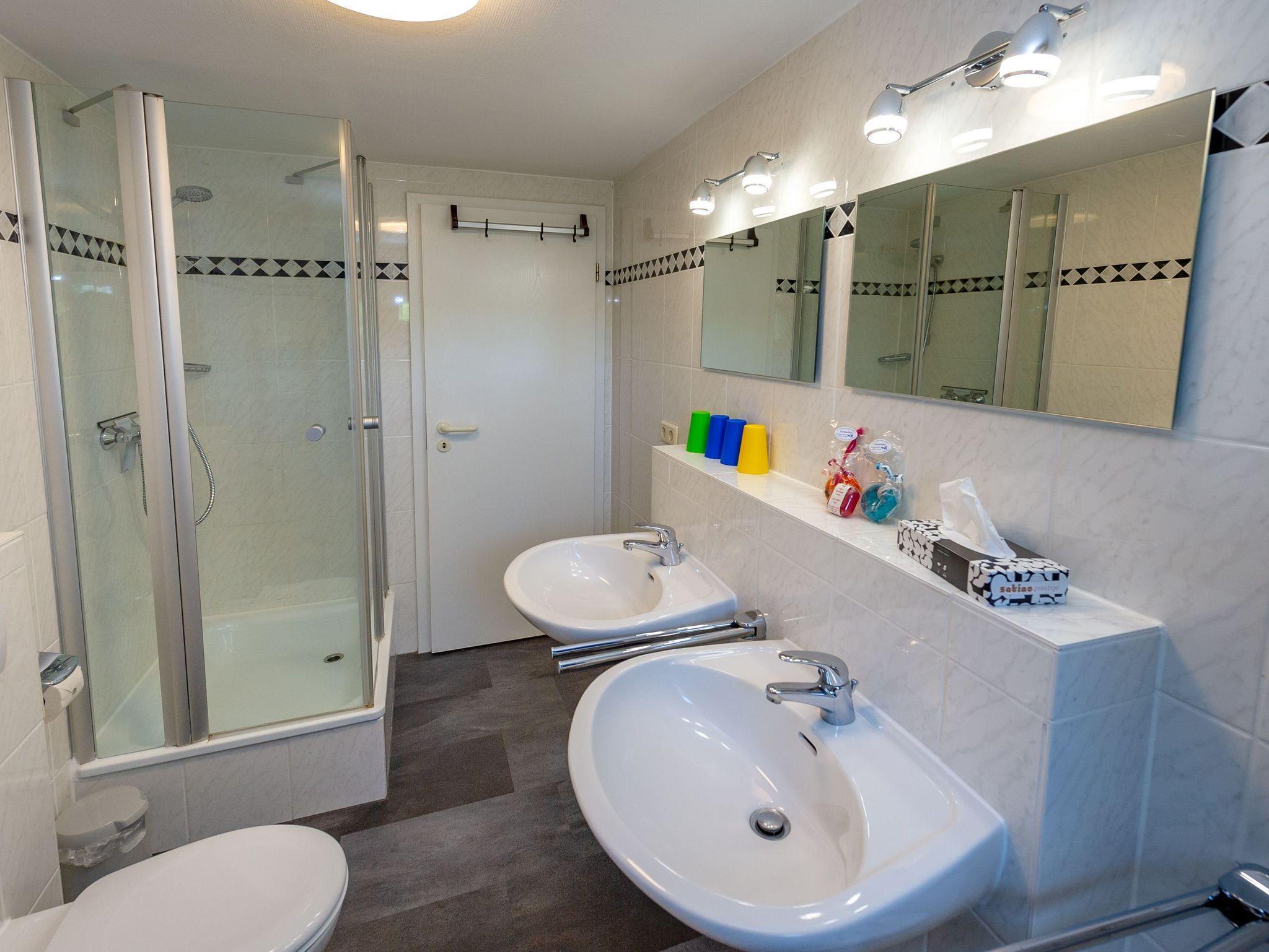 Auch das Tageslichtbad Ihrer Wohnung, ausgestattet mit Dusche/WC, zwei Waschbecken und Haartrockner, weiß zu überzeugen.