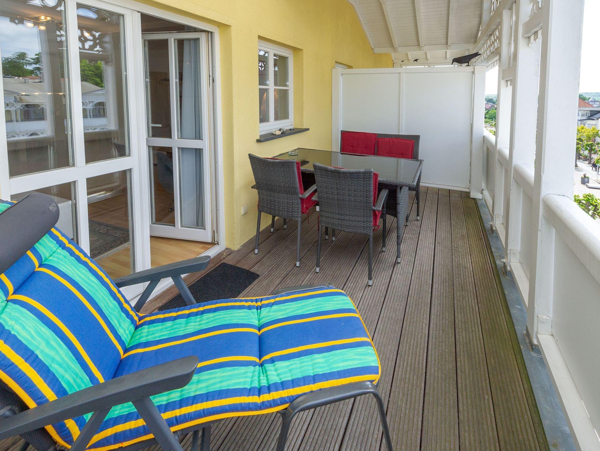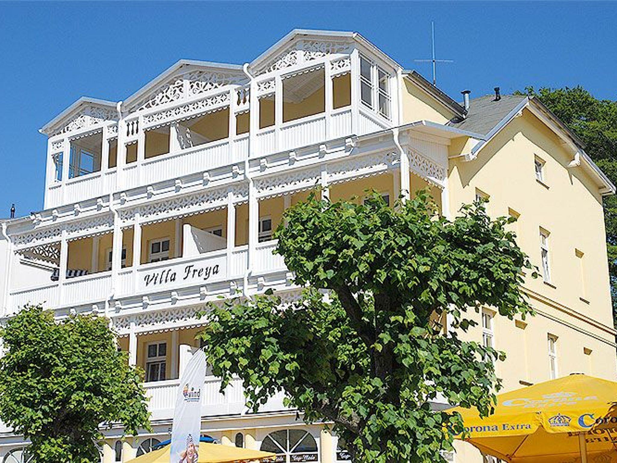 Die wunderschön restaurierte Villa Freya im Stil der Bäderarchitektur ist in der Wilhelmstrasse des Ostseebades Sellin gelegen - ca. 350 m vom Strand und der Seebrücke entfernt. Ihr rund 81 m² großes 3-Raum-Appartement erwartet Sie im dritten Obergeschoss des Hauses und hat gleich zwei möblierte Balkone, einen zur Morgen- und einen zur Abendsonne.
