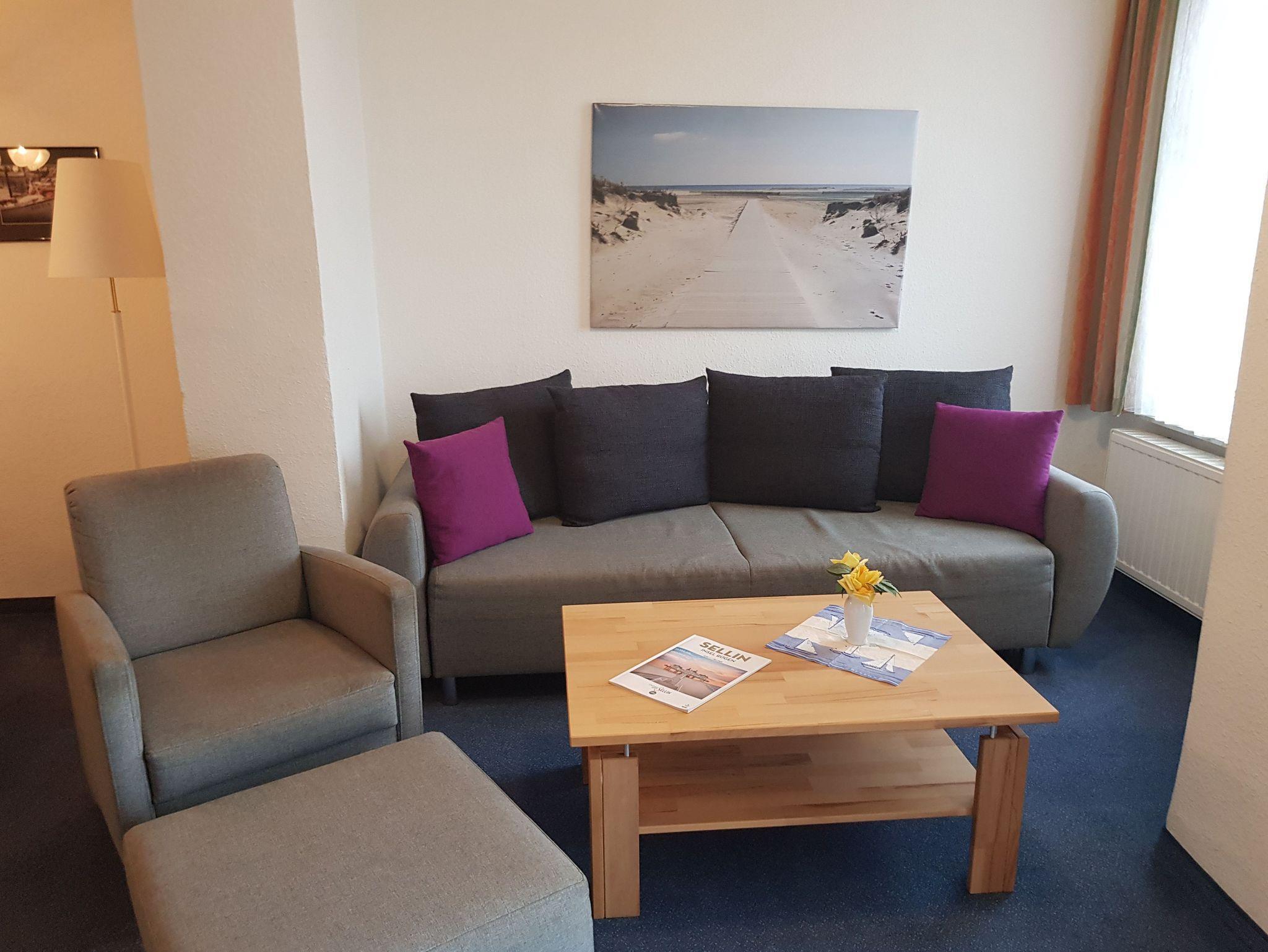 Sie haben eine gute Wahl getroffen. Die Residenz Seeblick ist ein modernes, im Bäderstil saniertes Appartementhaus direkt an der Ostsee. Es steht Ihnen ein 3 Zimmer Apartment mit Balkon in bevorzugter Lage zur Verfügung. Nur wenige Meter zum Strand von Sellin und zur Seebrücke, dem Wahrzeichen von Sellin sprechen für sich. Ihre Wohnung errreichen Sie barrierefrei mit einen Glasaufzug . Ein freier Wireless Lan Internetzugang steht zur Verfügung . Die Appartements sind modern ausgestattet und verfügen über eine gut bestückte Küchenzeile mit Geschirrspüler. Die Zimmer verfügen über Kabel-TV mit DVD Player und Stereoanlage mit CD Spieler. Unterstellmöglichkeiten für Ihre Fahrräder befinden sich im und am Haus . Für jede Wohnung steht ein Parkplatz zur verfügung. Alle Wohnungen haben einen möbilierten Balkon. Eine Sauna mit Ruheliegen und Whirlpool sowie Waschmaschine und Trockner stehen Ihnen in den Gemeinschaftsräumen gegen Gebühr zur Verfügung.
