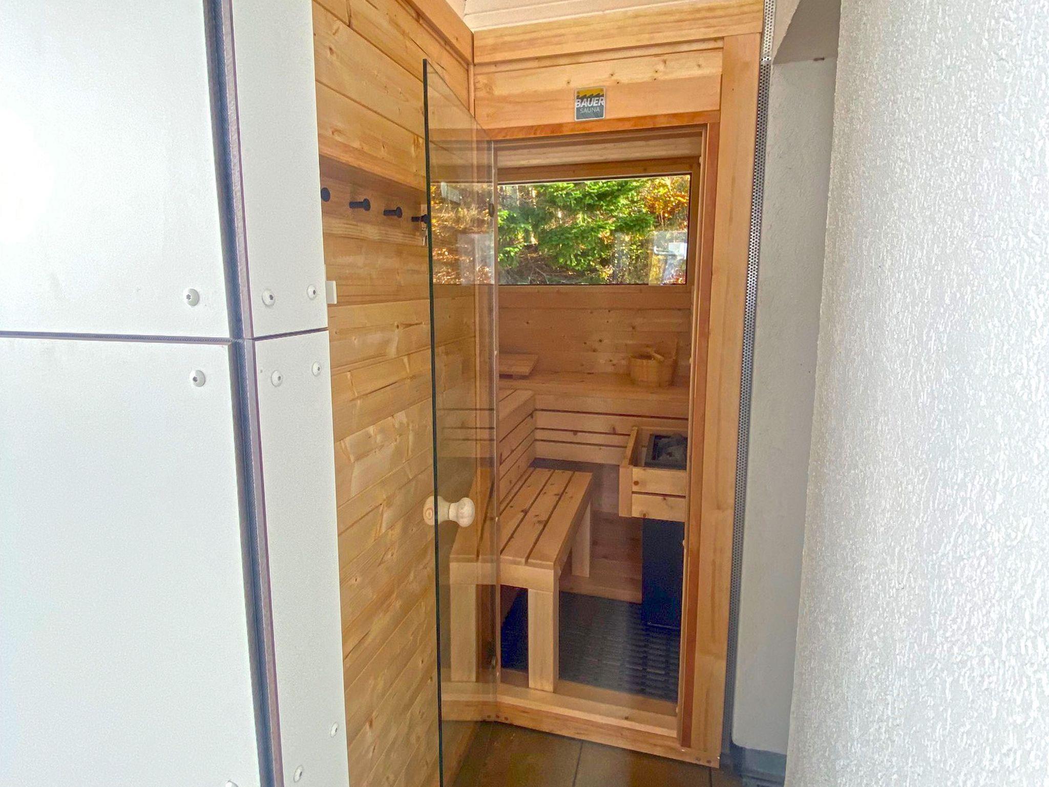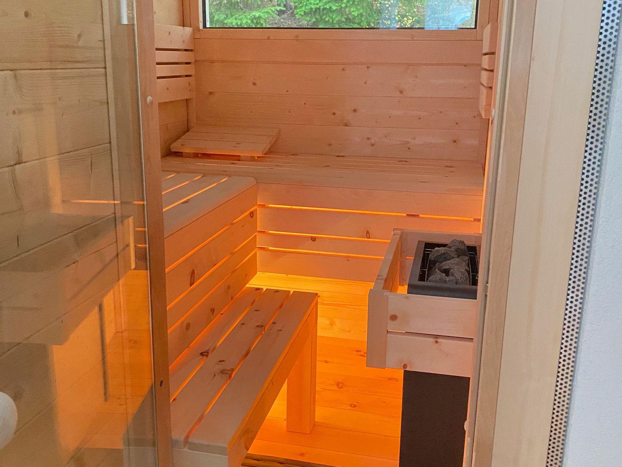 Das elegant geflieste Tageslichtbad überzeugt mit einer großen Dusche, WC, beleuchtetem Waschtisch und beheizbarem Handtuchwärmer. Seit Neuestem komplettiert darüber hinaus eine private Sauna (Münzautomat) den hervorragenden Gesamteindruck der Ausstattung.
