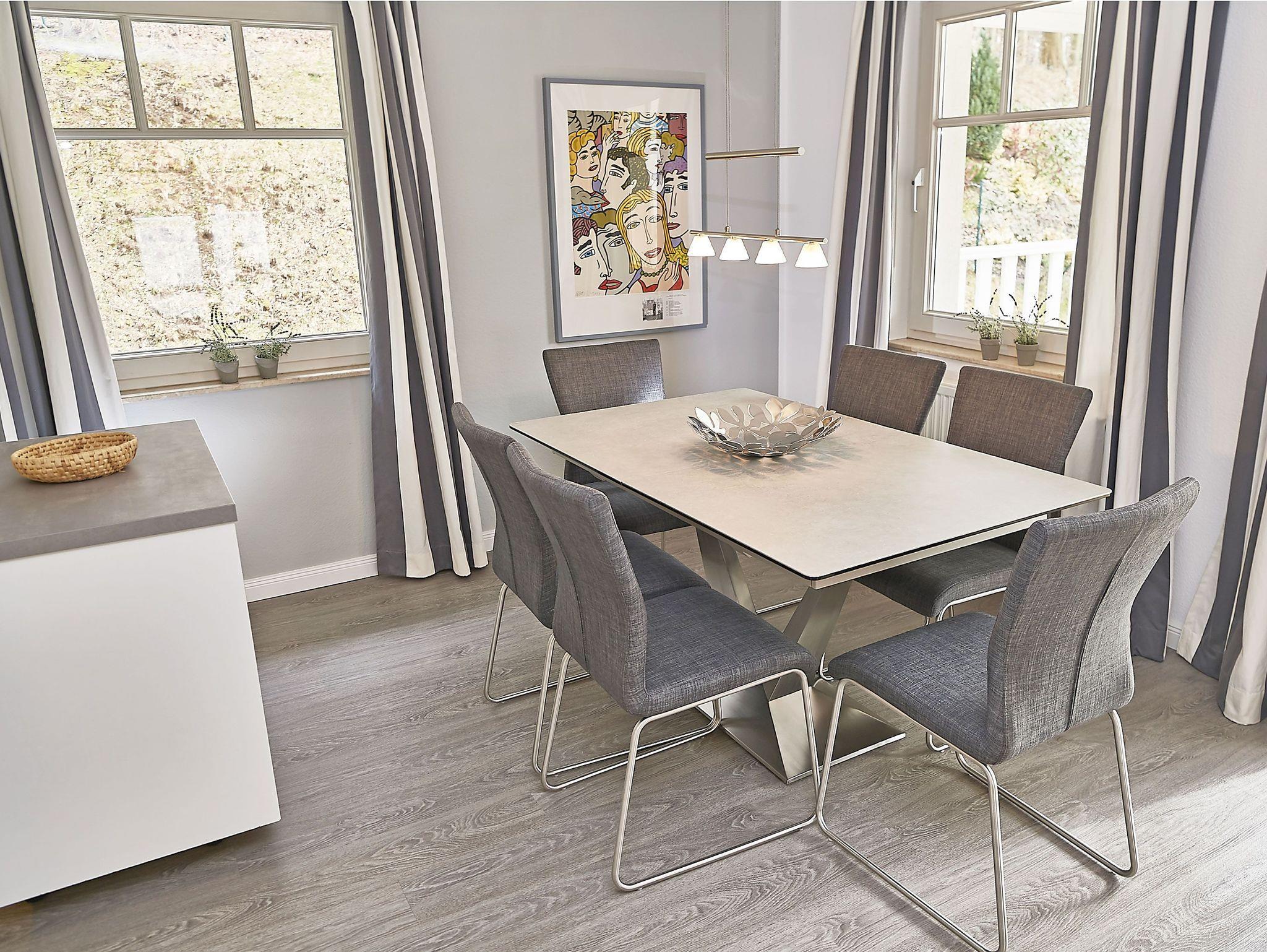 Im Essbereich gibt es einen großen Esstisch für 4-6 Personen und die harmonisch im Wohnbereich integrierte Küchenzeile, die mit einem Kühlschrank mit Gefrierfach, 4-Zonen-Cerankochfeld, Backofen, Geschirrspüler, Mikrowelle, Wasserkocher, Kaffeemaschine, Espressomaschine, Toaster und diversem Kleininventar aller bestens ausgestattet ist.