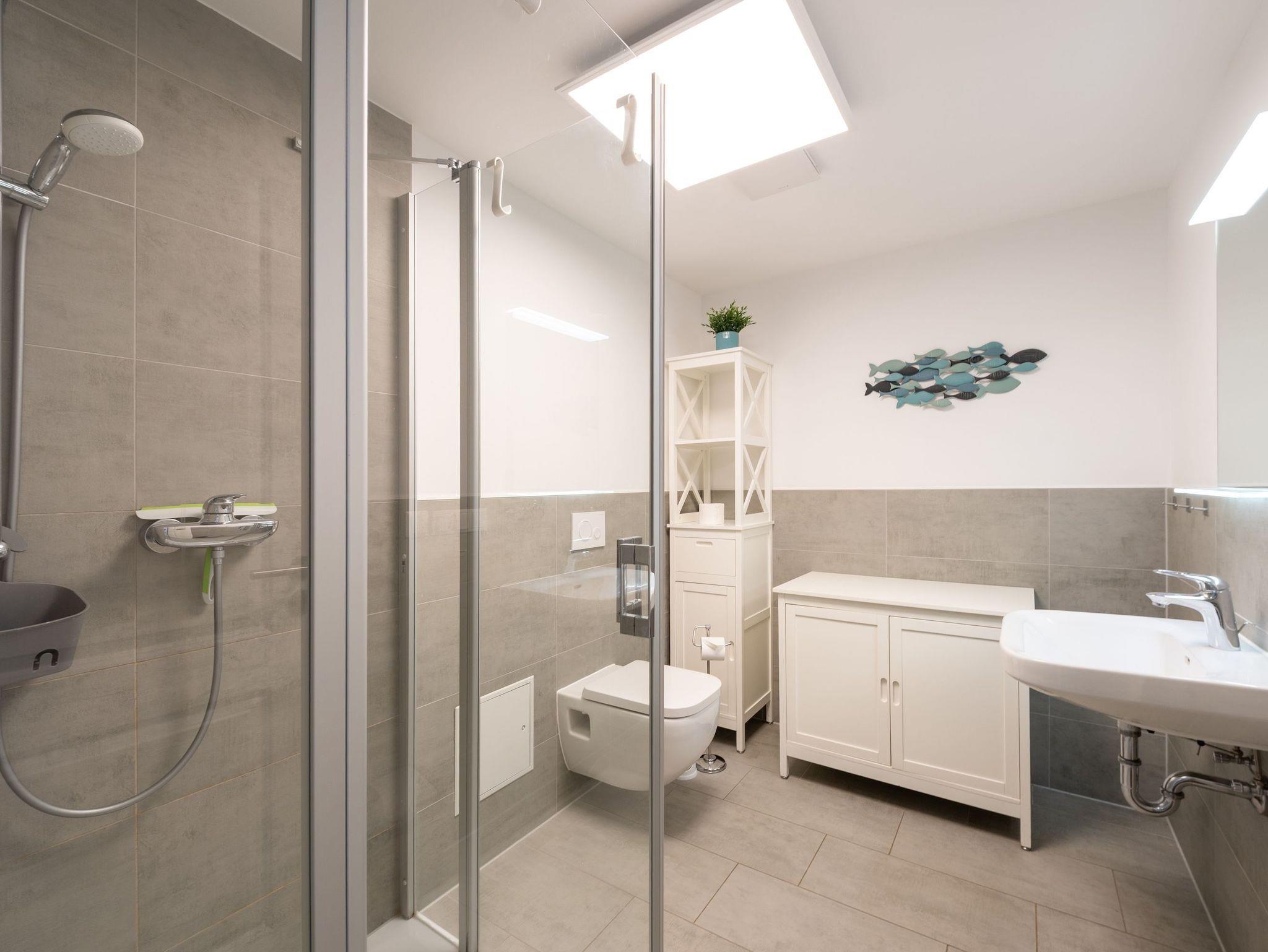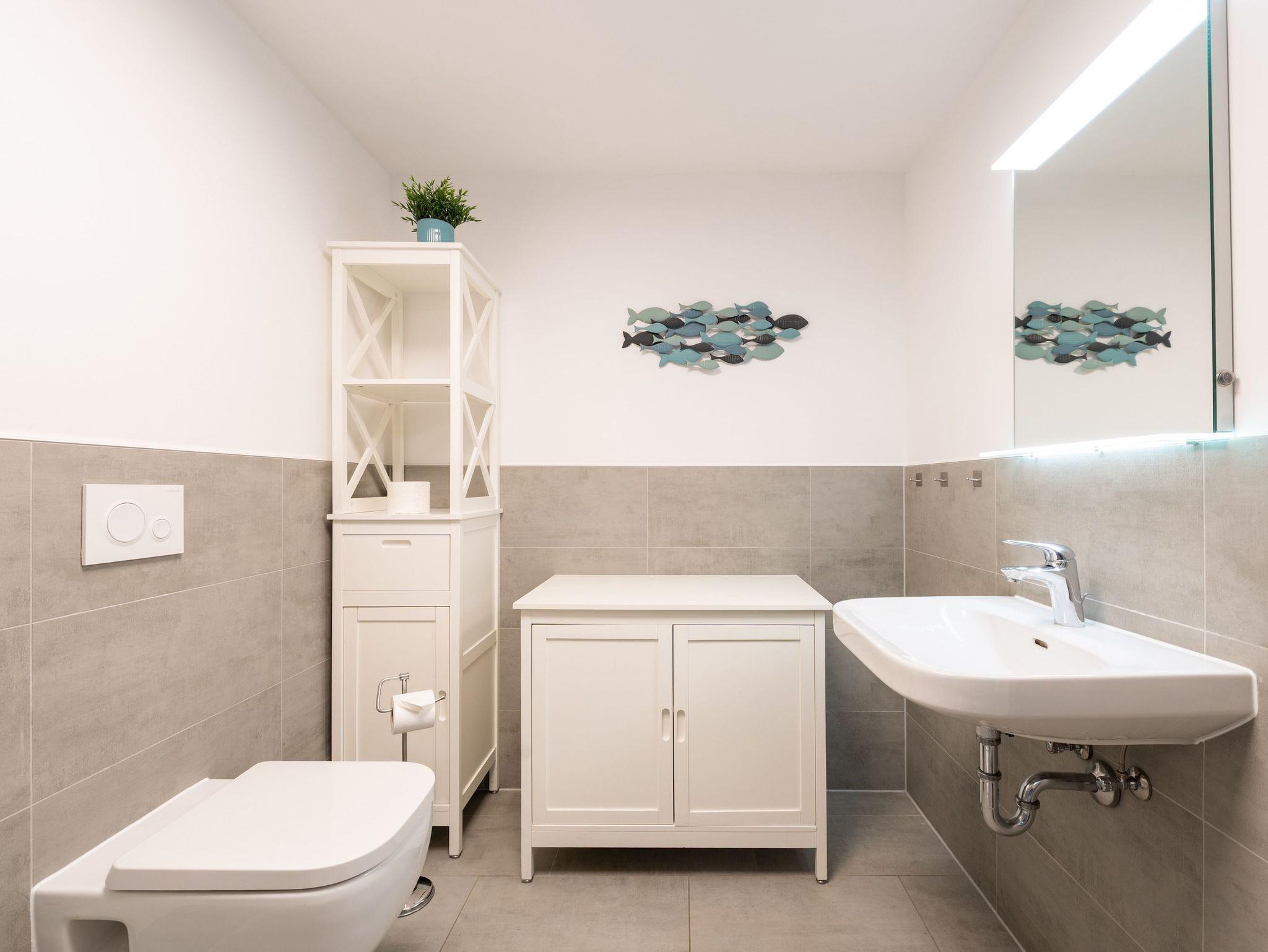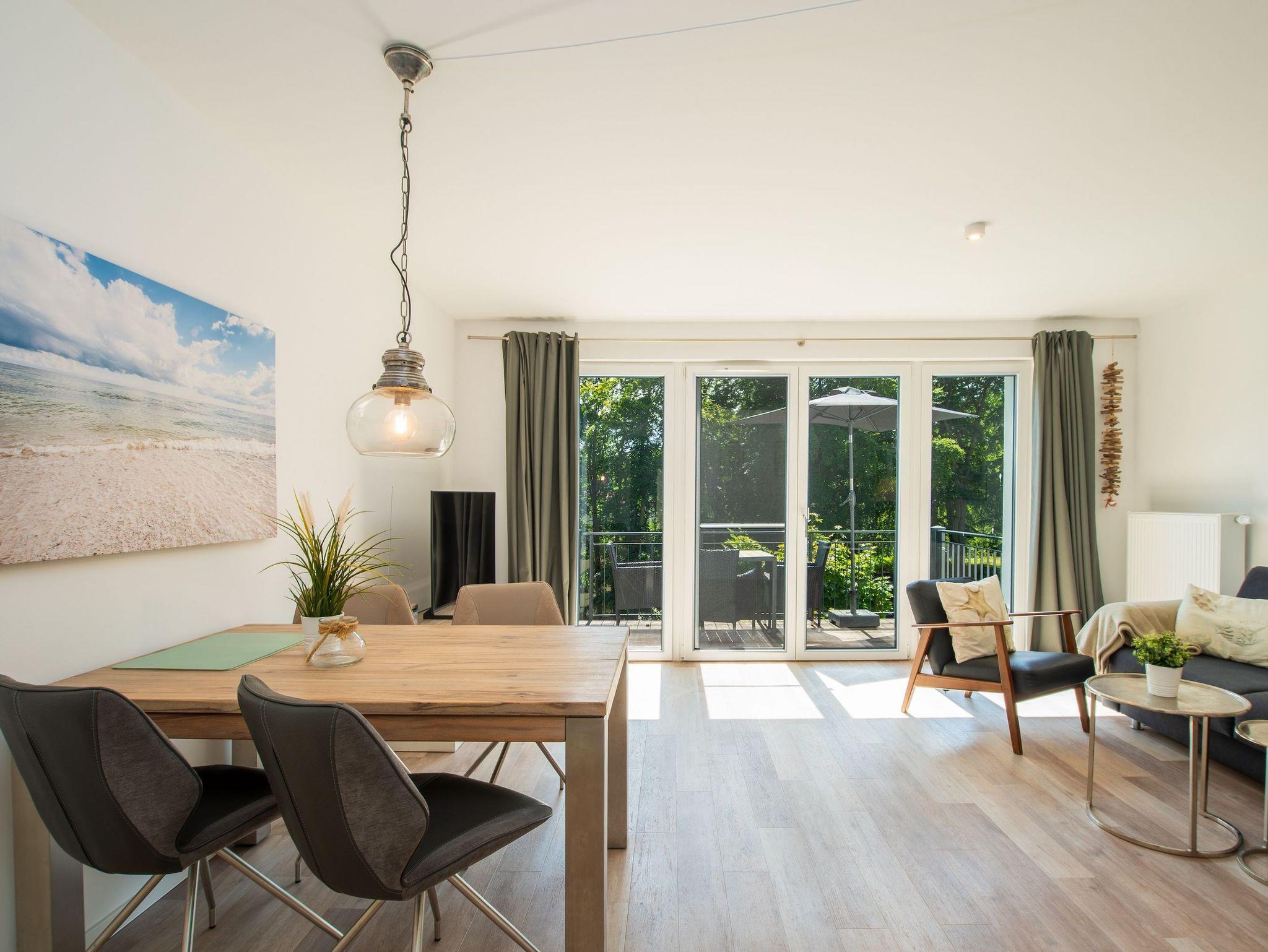 Treten Sie ein und lassen Sie sich vom offenen, lichtdurchfluteten Flur empfangen, der mit einer charmanten maritimen Atmosphäre sofort Urlaubsstimmung entfacht. Der Wohnbereich besticht durch eine moderne, zugleich behagliche Couchgarnitur, die auch Platz für eine zusätzliche Person bietet. Der angrenzende Essbereich lädt zu genussvollen Stunden ein, während der großzügige Flachbild-TV für entspannte Unterhaltung sorgt.