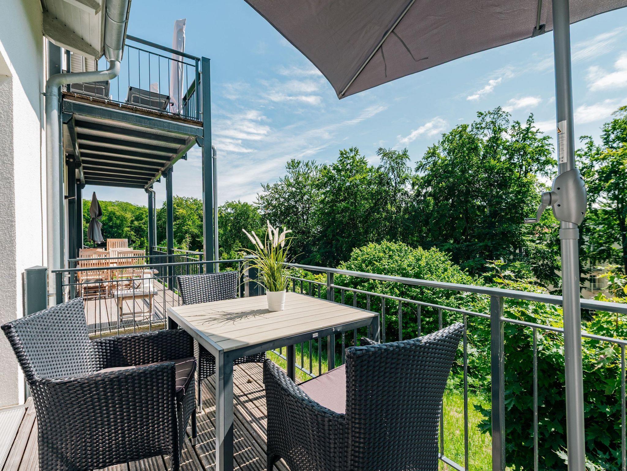 Von hier aus führt der Weg auf den sonnigen Balkon ? Ihr persönlicher Rückzugsort, umgeben von der unvergleichlichen Rügener Natur. Auf hochwertigen Gartenmöbeln können Sie den Blick schweifen lassen, tief durchatmen und einfach nur genießen. Die liebevoll gepflegte Gartenanlage mit ihren einladenden Strandkörben steht Ihnen selbstverständlich ebenfalls zur Verfügung und verspricht entspannte Stunden im Freien.
