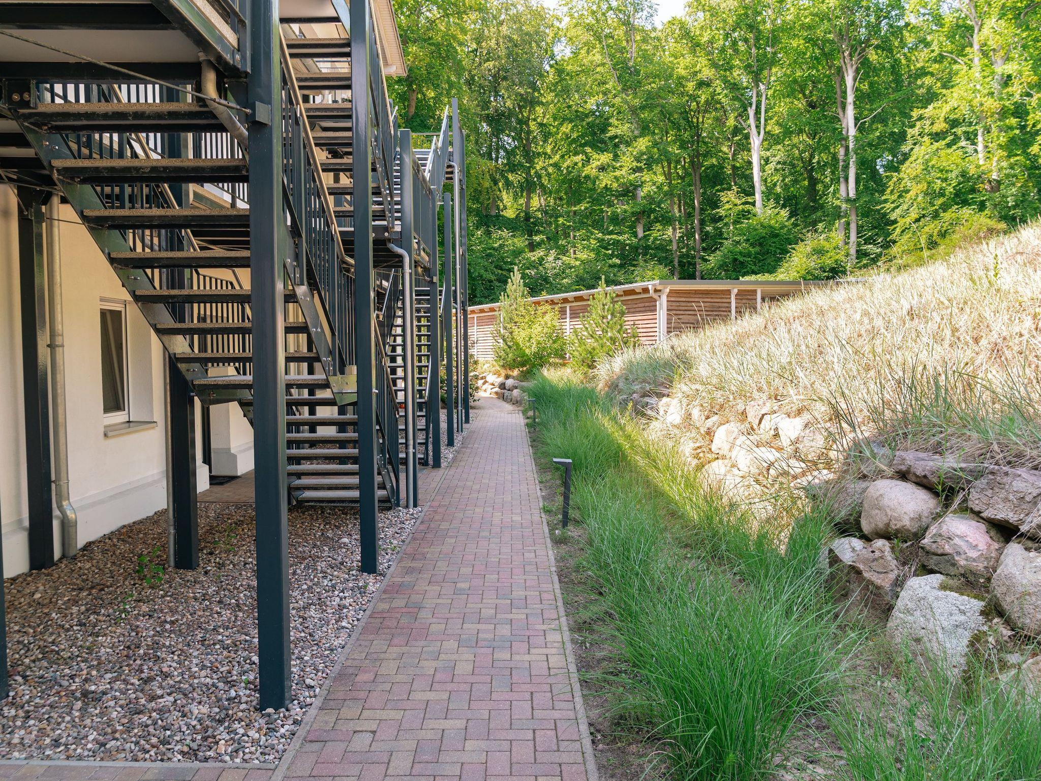 Von hier aus führt der Weg auf den sonnigen Balkon Ihr persönlicher Rückzugsort, umgeben von der unvergleichlichen Rügener Natur. Auf hochwertigen Gartenmöbeln können Sie den Blick schweifen lassen, tief durchatmen und einfach nur genießen. Die liebevoll gepflegte Gartenanlage mit ihren einladenden Strandkörben steht Ihnen selbstverständlich ebenfalls zur Verfügung und verspricht entspannte Stunden im Freien.