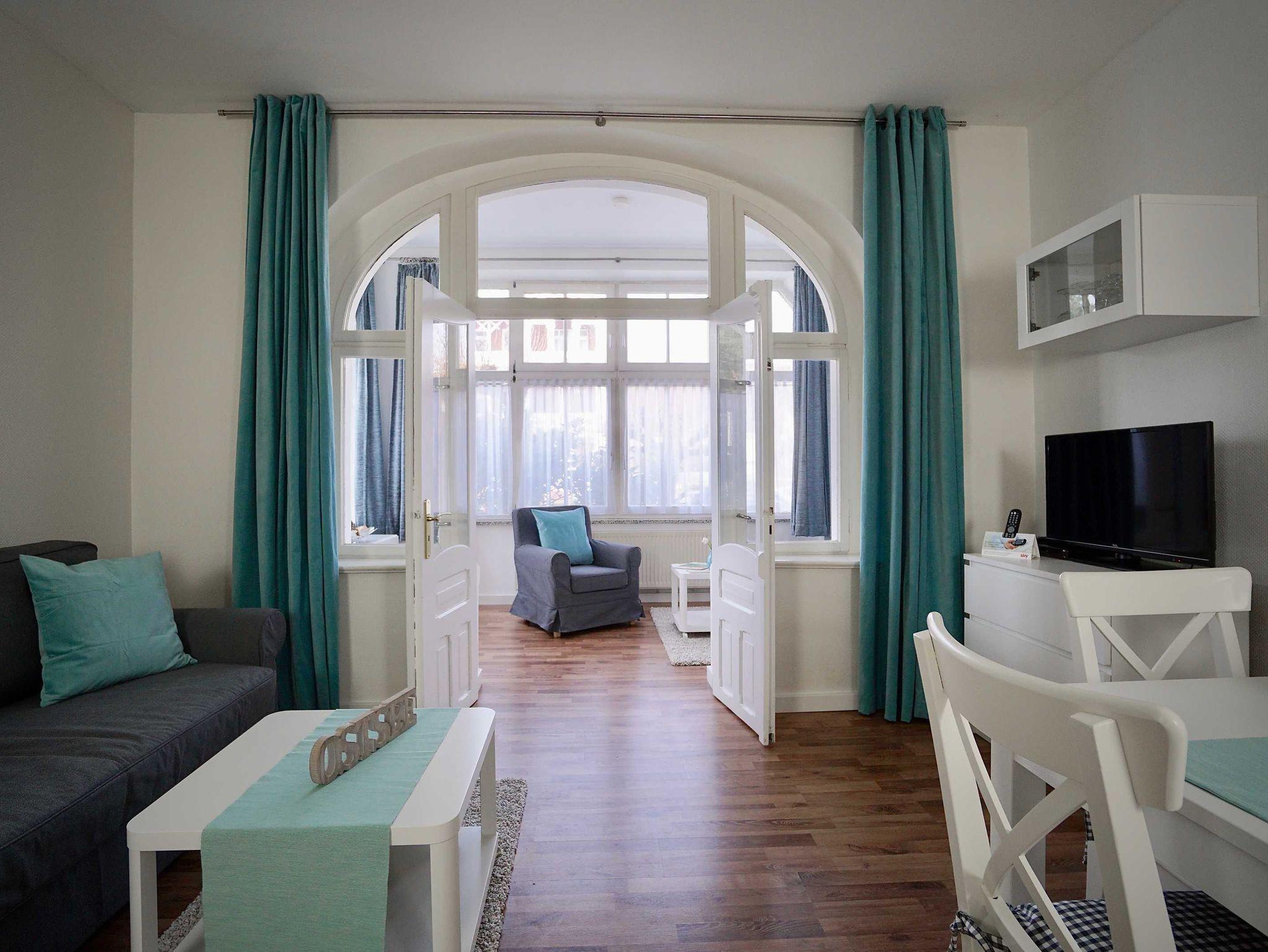 Unser Appartementhaus ist eine im Stil der Bäderarchitektur sanierte, wunderschöne alte Villa. Sie befindet sich ruhig gelegen an der Hauptpromenade des Ostseebads Sellin, der historischen, zur Seebrücke und zum feinsandigen Badestrand führenden Wilhelmstraße. Wir bieten mit vier verschiedenen Appartementgrößen gemütliche Ferienunterkünfte. Unsere Gäste können einen WLAN-Internetanschluss im ganzen Haus kostenlos nutzen. Pkw-Stellplätze befinden sich direkt am Haus.