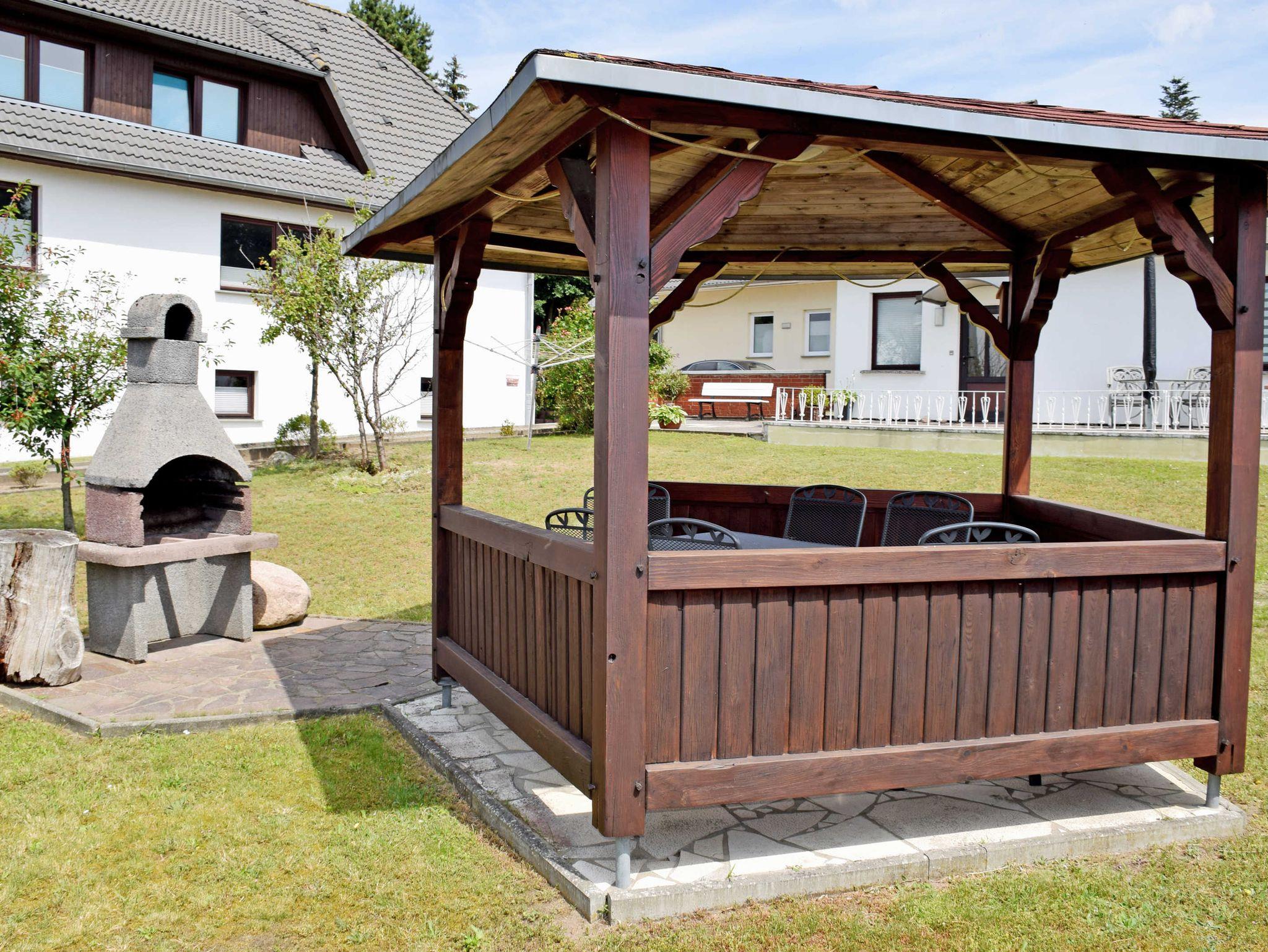 Neben dem Haus können in einem großen Garten ein Pavillon mit Gartenmöbeln und ein Grill mitgenutzt werden. Weitere Angaben finden Sie bei der Beschreibung der Ferienwohnungen.