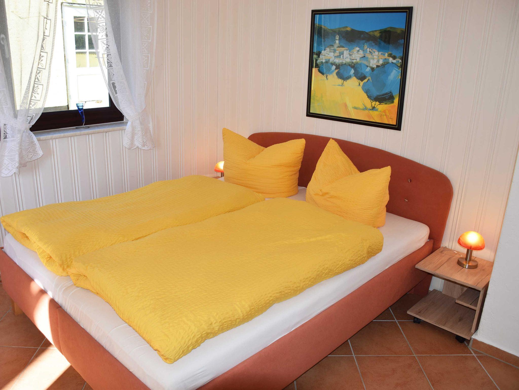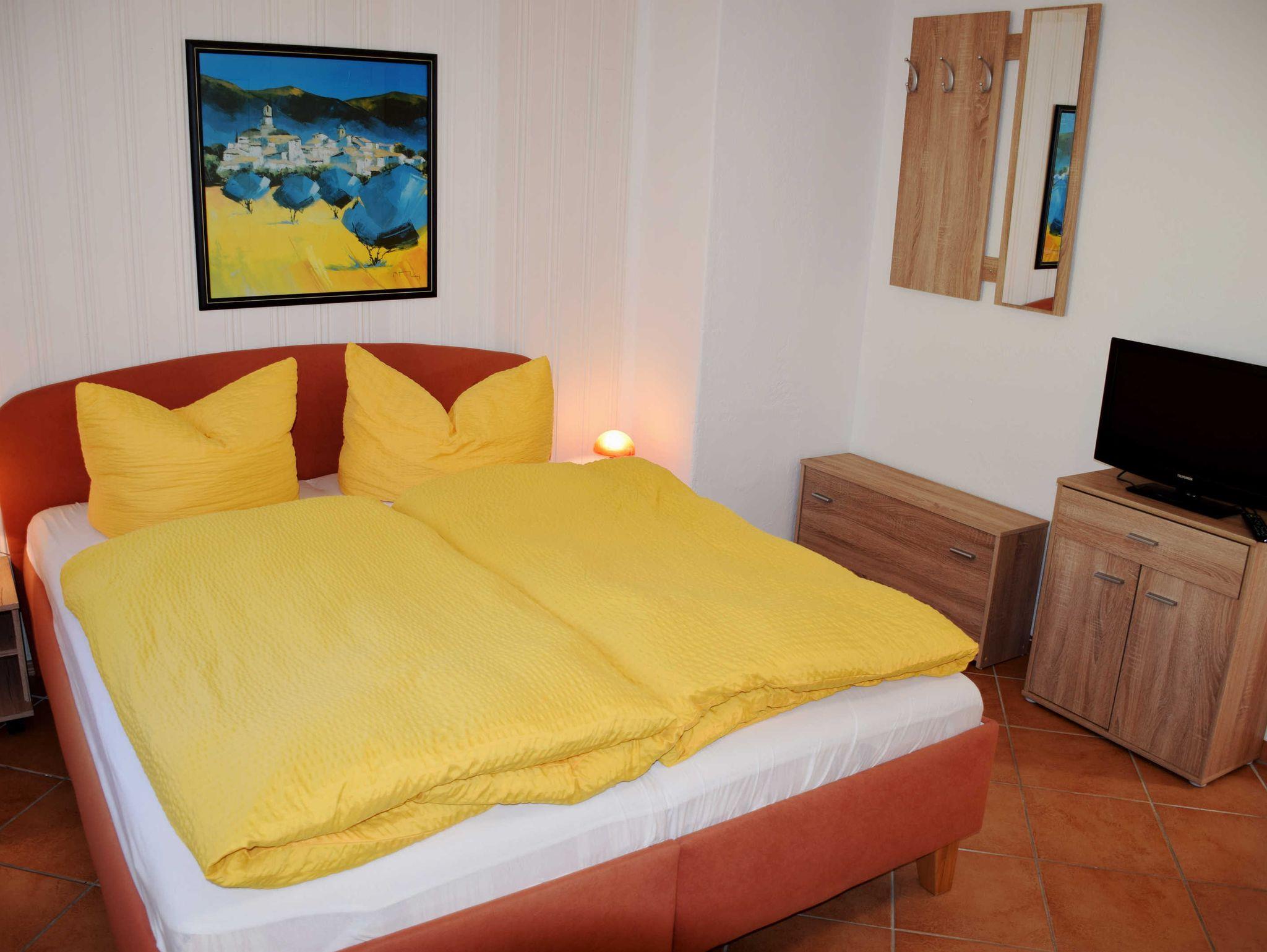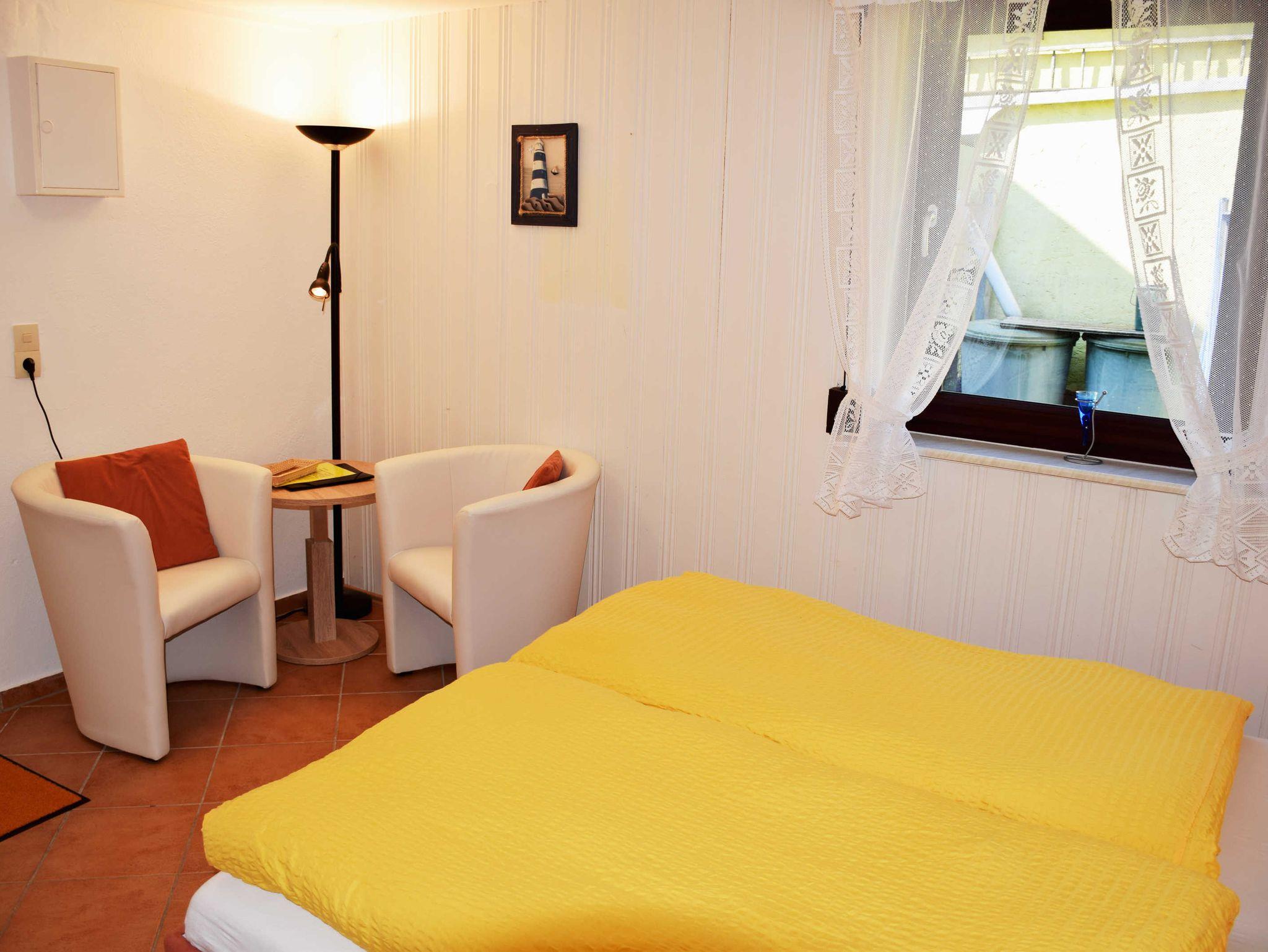 Diese kleine Ferienwohnung (23 qm) ist modern und freundlich eingerichtet und verfügt über einen separaten Wohnungseingang. Der kombinierte Wohn- und Schlafraum bietet Platz für zwei Gäste. Hier stehen ein bequemes Doppelbett mit Nachttischen und Leselampen, eine Sitzecke mit Tisch und Stühlen sowie TV und Radio. Durch die Verwendung von Holz und warmen Farben ist es uns gelungen, hier ein angenehmes Ambiente zu schaffen in dem auch Sie sich wohlfühlen werden. Selbstverständlich hat diese Ferienwohnung ein Bad mit Dusche und WC und eine kleine neu eingerichtete Küche mit Sitzecke. Zur Küchenausstattung gehören Herd, Spüle, Kühlschrank, Kaffeemaschine, Wasserkocher und Toaster.