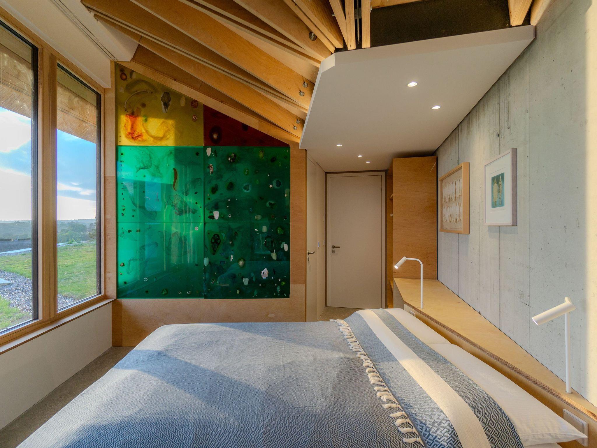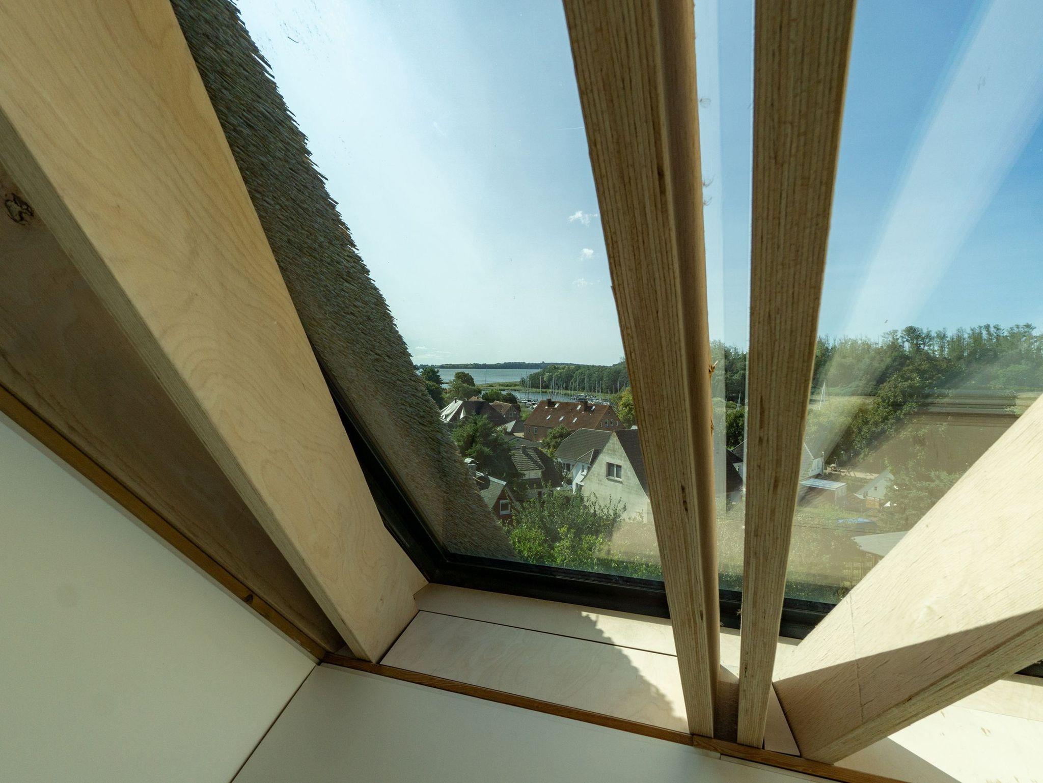 Die hochwertige Architektur des Hauses, inspiriert von den historischen Bootslagern der Fischer, verbindet modernes Design mit traditioneller Handwerkskunst. Im Inneren bleibt die tragende Struktur, die an die Spanten und Beplankung von Booten erinnert, sichtbar und schafft eine einzigartige Atmosphäre. Das Haus ruht wie auf einem Podest, sodass Sie von jeder Seite aus die atemberaubende Weite und Schönheit der Insel Rügen genießen können.