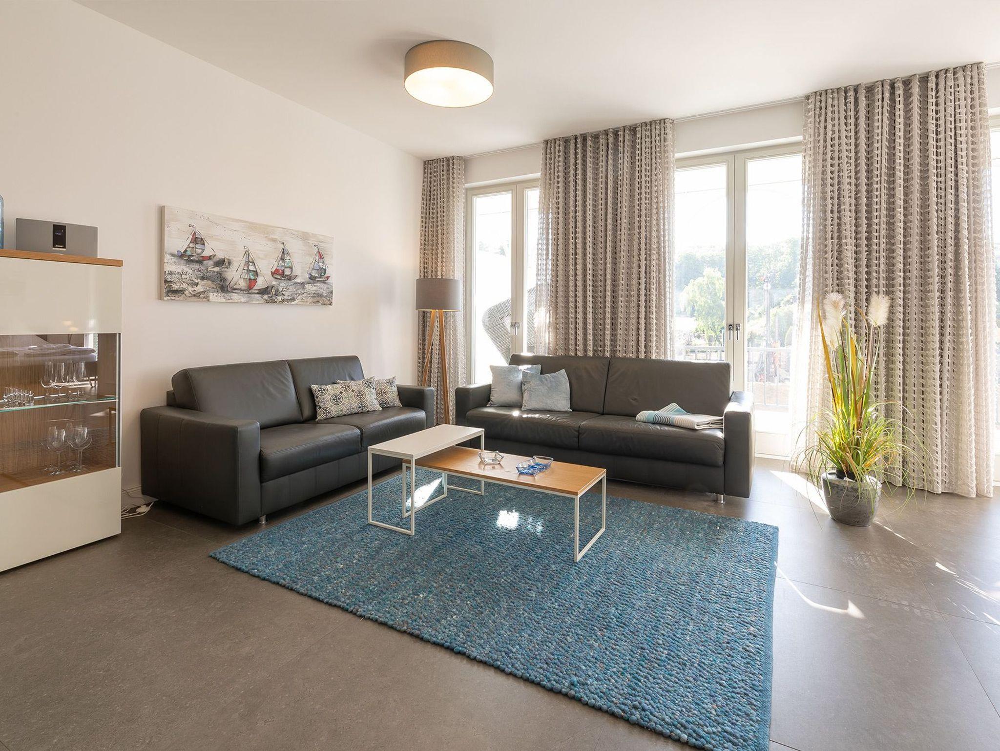 Die Ferienwohnung „Meereskristall“ befindet sich in der dritten Etage und wird bequem über den Lift aus der Tiefgarage erreicht. Auf 74m2 Wohnfläche bietet sie ausreichend Platz für 4 Personen. Die hochwertige Ausstattung lässt keine Wünsche offen. So finden Sie, unter anderem, eine hochwertige Einbauküche mit angrenzendem Wohnbereich vor, welcher durch die großen Fensterfronten mit Licht nahezu durchflutet wird. Hochwertige und ausgesuchte Materialien unterstützen den hochwertigen Wohneindruck zusätzlich. Auf dem Dach des „FIRST SELLIN“ stehen Ihnen sowohl ein großzügiger Sky-Pool, als auch eine Saunalandschaft zur Verfügung. Der Blick von dort auf die Ostsee lässt Ihren Urlaub zu einem wahrlichen Traumurlaub werden.In der Sommersaison können Sie darüber hinaus im hauseigenen Außenpool (solar beheizt) relaxen oder sich natürlich in die Fluten der Ostsee am Strand stürzen.