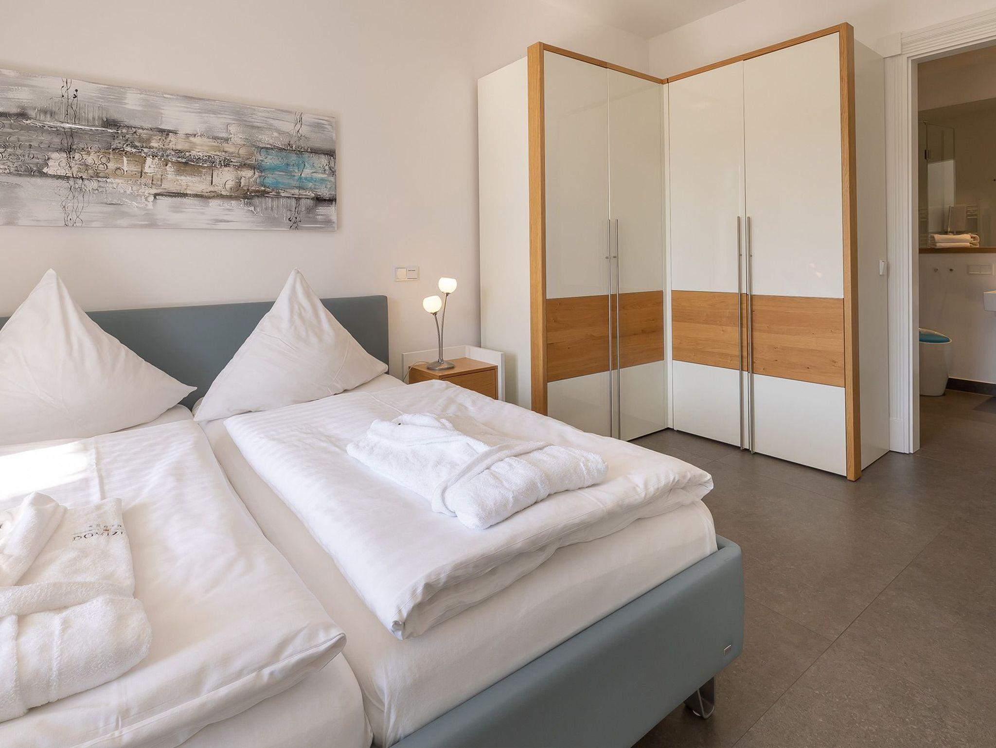 Die Ferienwohnung Meereskristall befindet sich in der dritten Etage und wird bequem über den Lift aus der Tiefgarage erreicht. Auf 74m2 Wohnfläche bietet sie ausreichend Platz für 4 Personen. Die hochwertige Ausstattung lässt keine Wünsche offen. So finden Sie, unter anderem, eine hochwertige Einbauküche mit angrenzendem Wohnbereich vor, welcher durch die großen Fensterfronten mit Licht nahezu durchflutet wird. Hochwertige und ausgesuchte Materialien unterstützen den hochwertigen Wohneindruck zusätzlich. Auf dem Dach des FIRST SELLIN stehen Ihnen sowohl ein großzügiger Sky-Pool, als auch eine Saunalandschaft zur Verfügung. Der Blick von dort auf die Ostsee lässt Ihren Urlaub zu einem wahrlichen Traumurlaub werden.In der Sommersaison können Sie darüber hinaus im hauseigenen Außenpool (solar beheizt) relaxen oder sich natürlich in die Fluten der Ostsee am Strand stürzen.