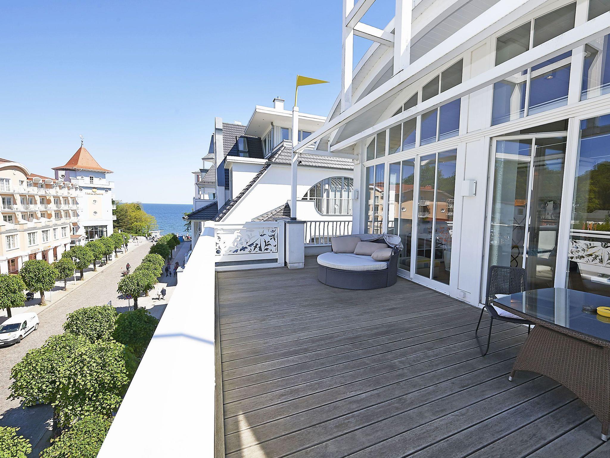 Die Villa Johanna entstand 2011 im Bädervillenbaustil. Die Balkone sind mit aufwändigen Ornamenten verziert und schmücken diesen einzigartigen Bau, sowie auch die riesigen konischen Säulen. Die Raumhöhe in diesem Penthouse reicht weit über 3 Meter hinaus. Das Lichtspiel in diesem Penthouse ist durch seine exponierte Ausrichtung und die vielen Glaselemente unvergleichlich. Der hauseigene solarbeheizbare Außenpool (5 x 15 Meter) befindet sich am Hang hinter der Villa und steht Ihnen saisonal zur Verfügung. Das Wasser wird chlorfrei saubergehalten, so dass Sie die frische Ostseeluft ungehindert geniessen können.