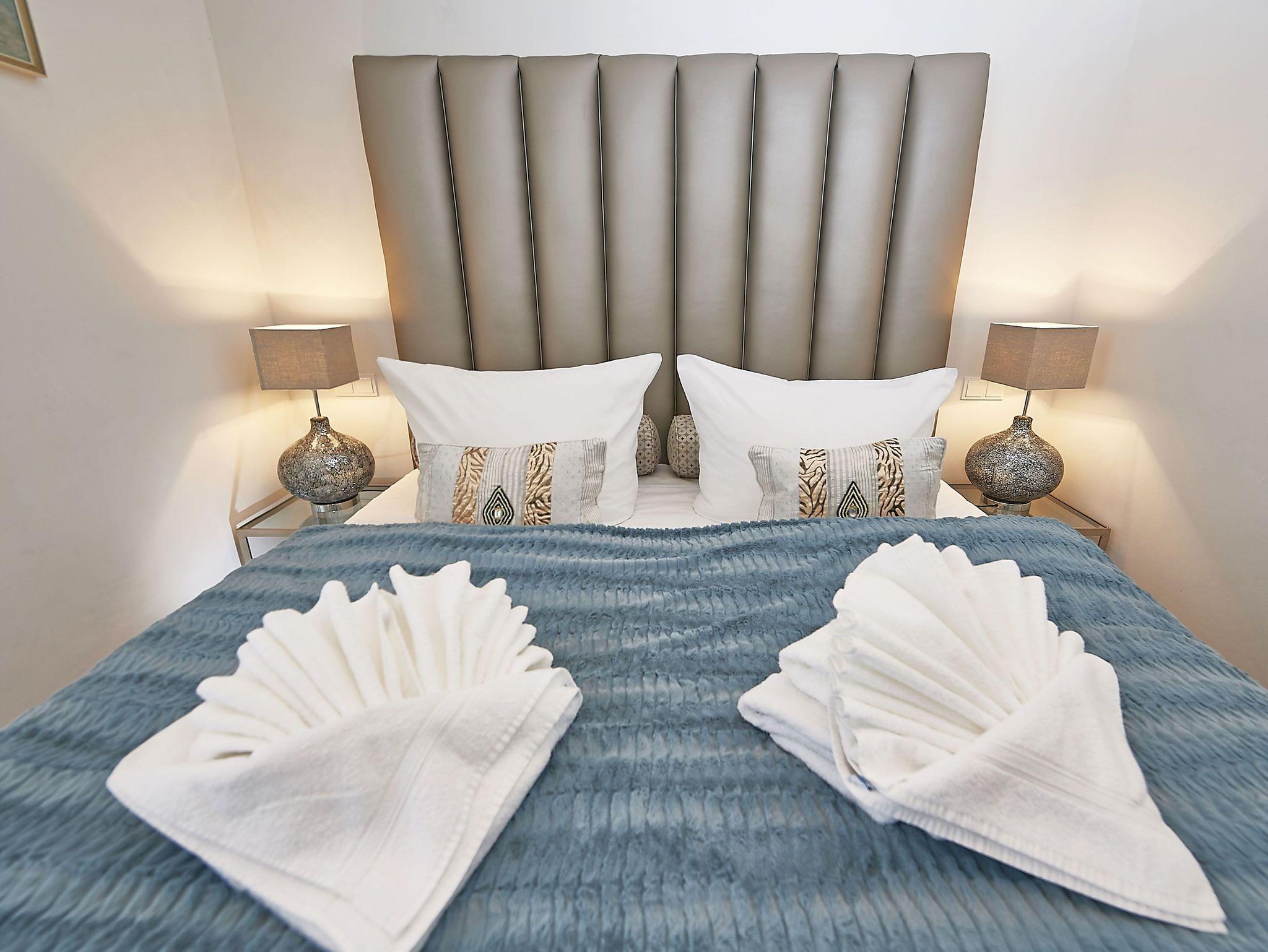 Das Penthouse Nautilus ist mit einem Wellness-Schlafzimmer mit einem Boxspringbett (180 x 200 cm) und Luxusschaummatratzen in Härtegrad mittel sowie einem Flachbild-TV ausgestattet.