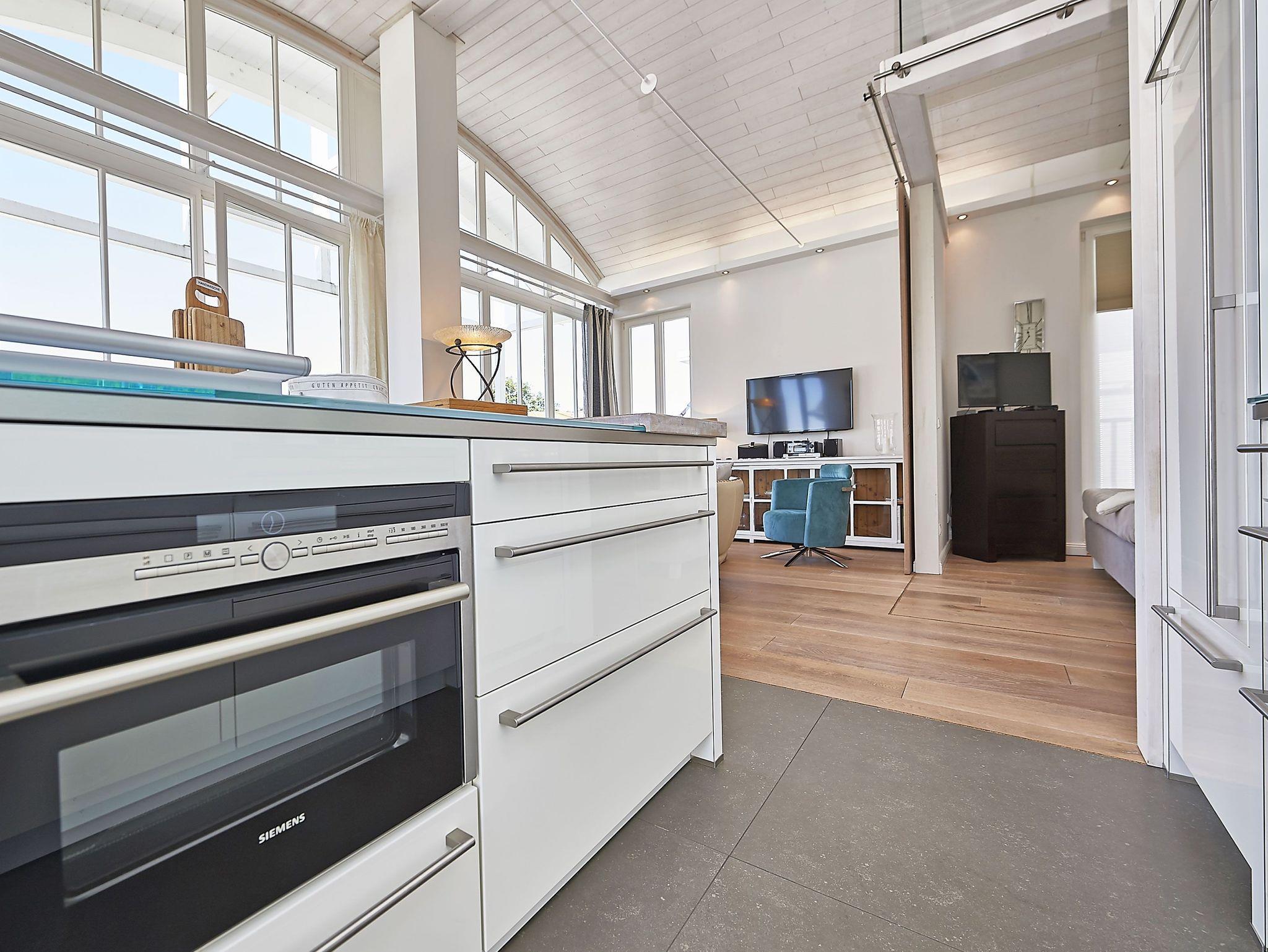 Die mit hochwertigen AEG- und Siemensgeräten ausgestattete Einbauküche mit hochwertigem Geschirr und Lambertbesteck sind nur ein Exempel Ihrer Möglichkeiten, sich hier bedingungslos wohlzufühlen.
