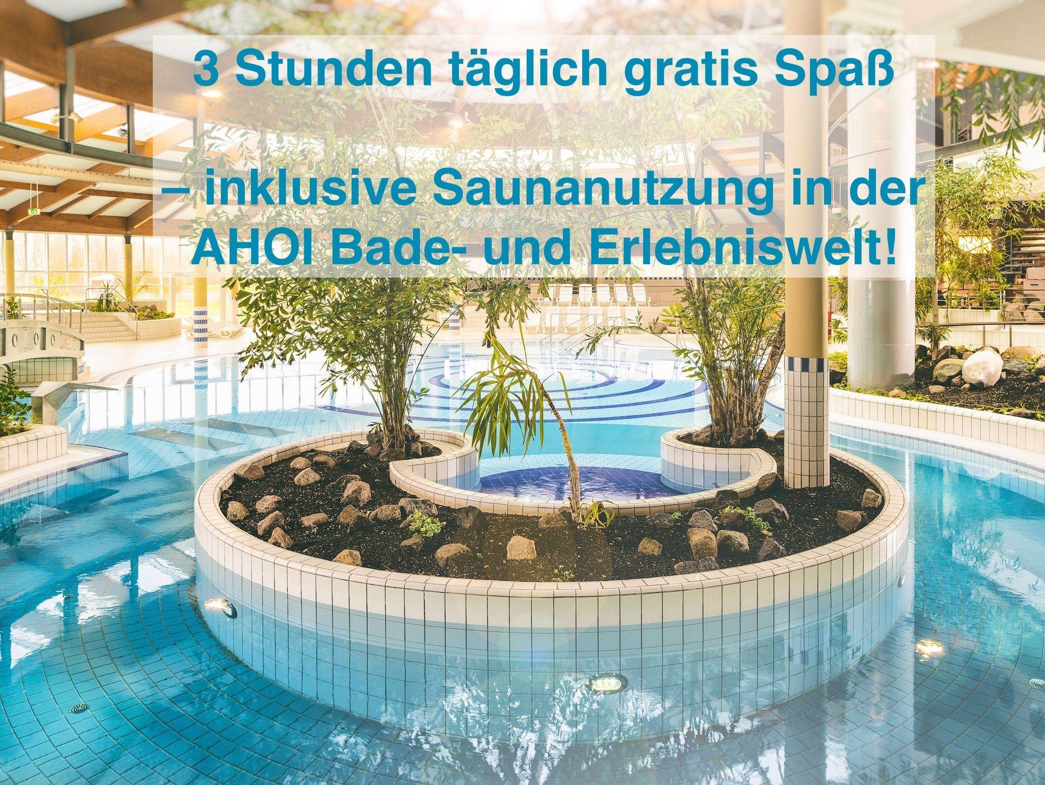 Wir bieten Ihnen exklusiv täglich 3h kostenfreien Zugang zur AHOI! Bade- und Erlebniswelt mit Sauna in Sellin auf Rügen. So können Sie neben dem Selliner Strand auch im Erlebnisschwimmbad Spaß und pure Entspannung in der Saunalandschaft mit 7 verschiedenen Saunen und Dampfbädern genießen. Der Eintritt ist für Sie als Gäste der Ferienwohnung Cor kostenfrei.