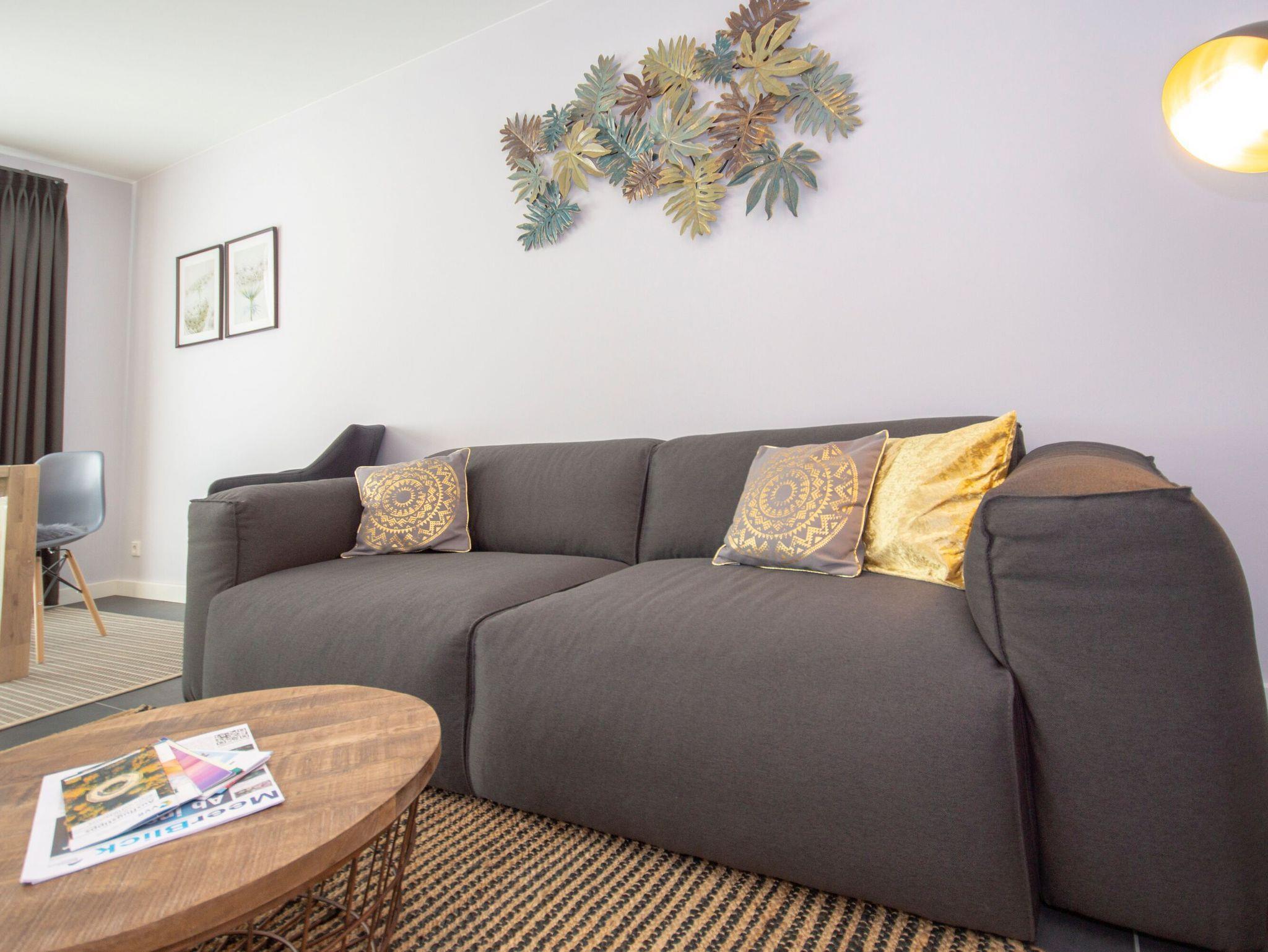 Die Ferienwohnung Cor verfügt über einen gemütlichen Wohnbereich mit einer offenen Küchennische. Der freundliche Wohnbereich ist mit ausgewählten Designermöbelstücken ausgestattet und lädt zum Verweilen ein.