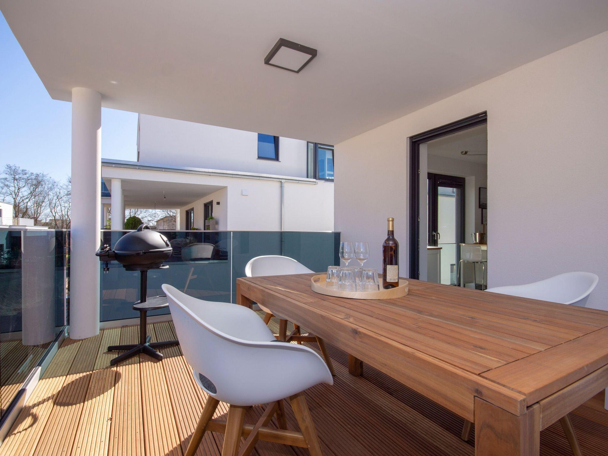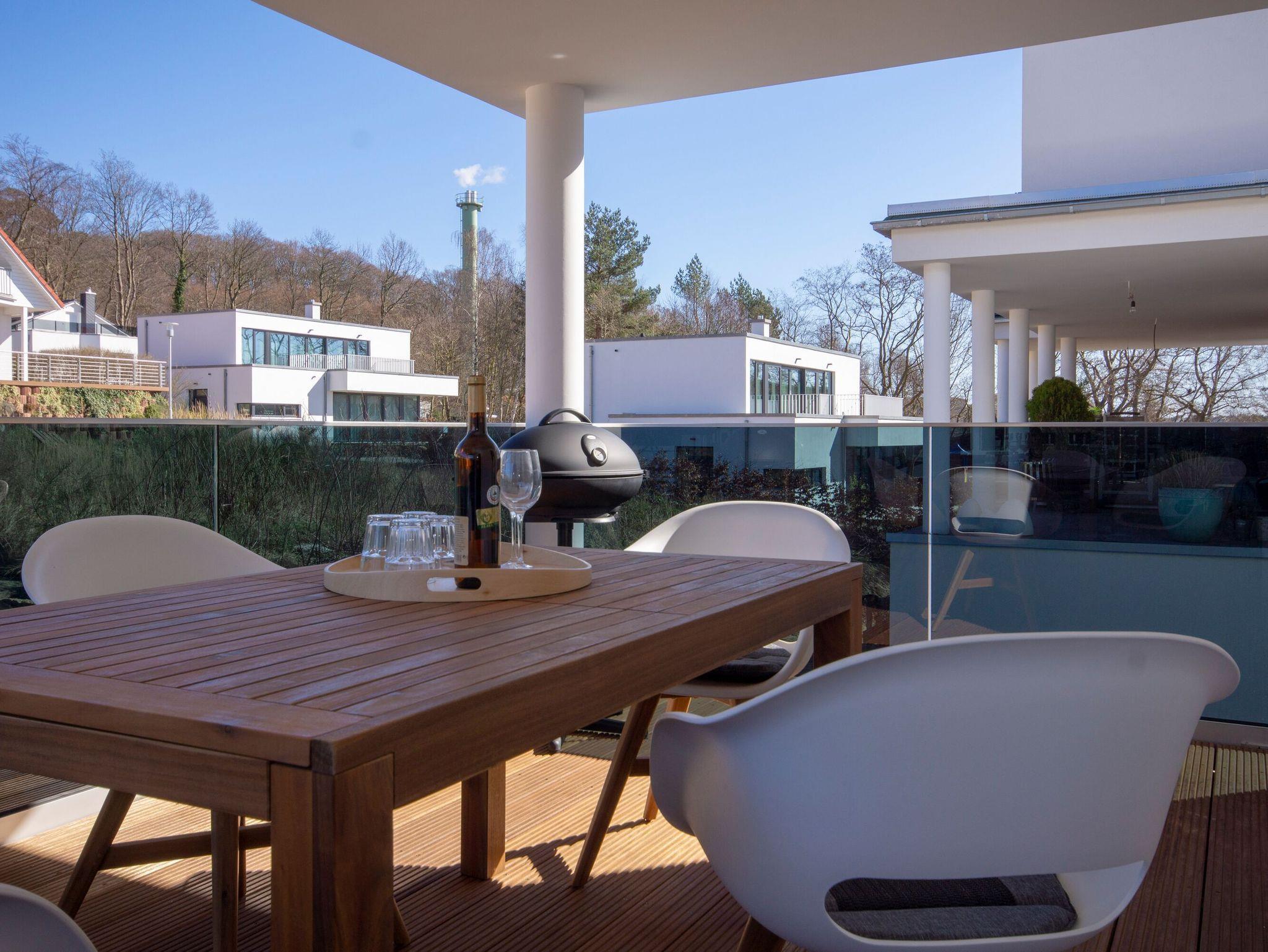 Der ca. 20 qm große Balkon mit komfortablen Gartenmöbeln ist überdacht und rundet das Gesamtangebot für die Ferienwohnung auf Rügen gekonnt ab. Der Tiefgaragenstellplatz zu dieser Unterkunft befindet sich direkt am Haus und wird Ihnen kostenfrei zur Verfügung gestellt.