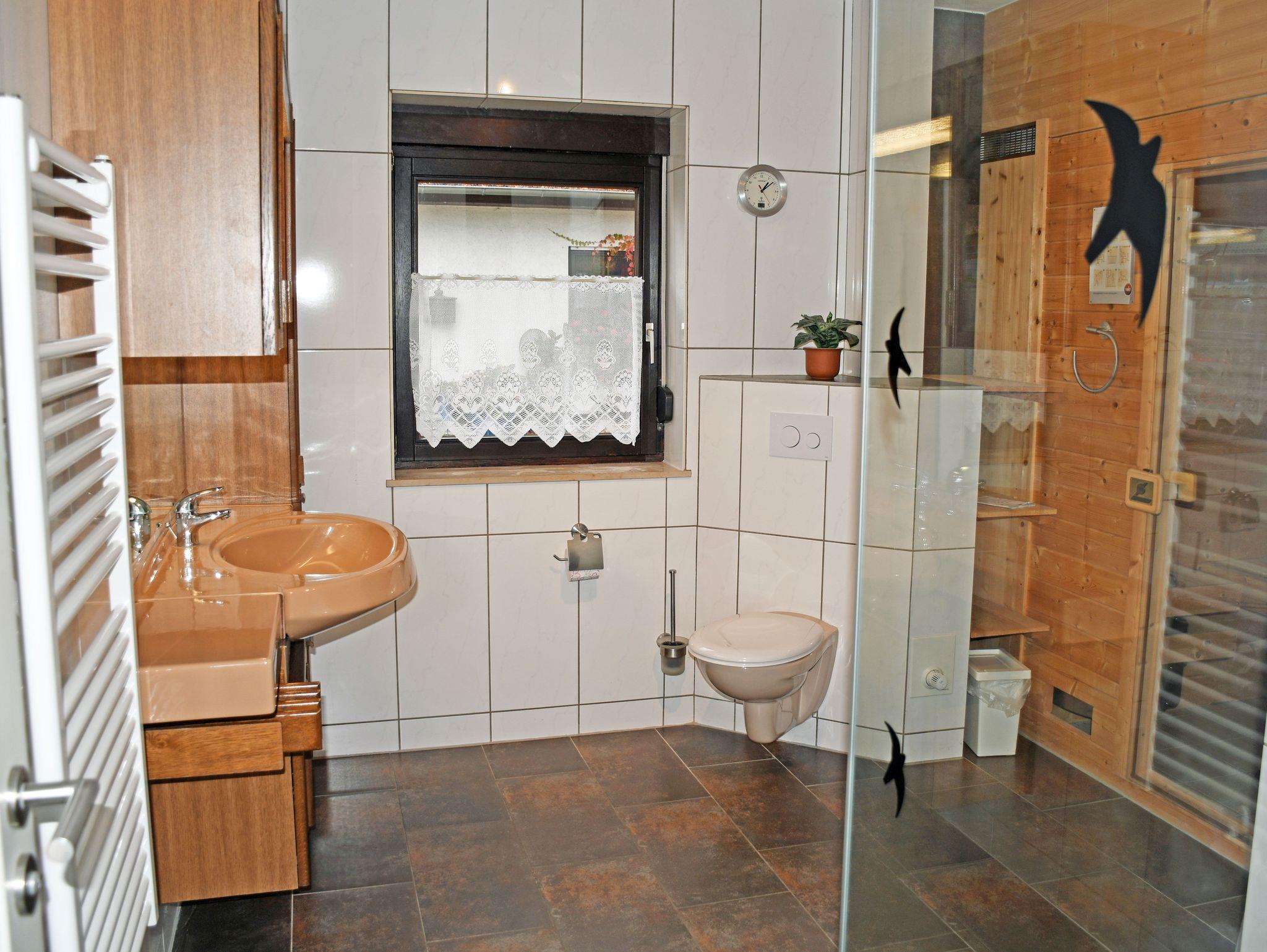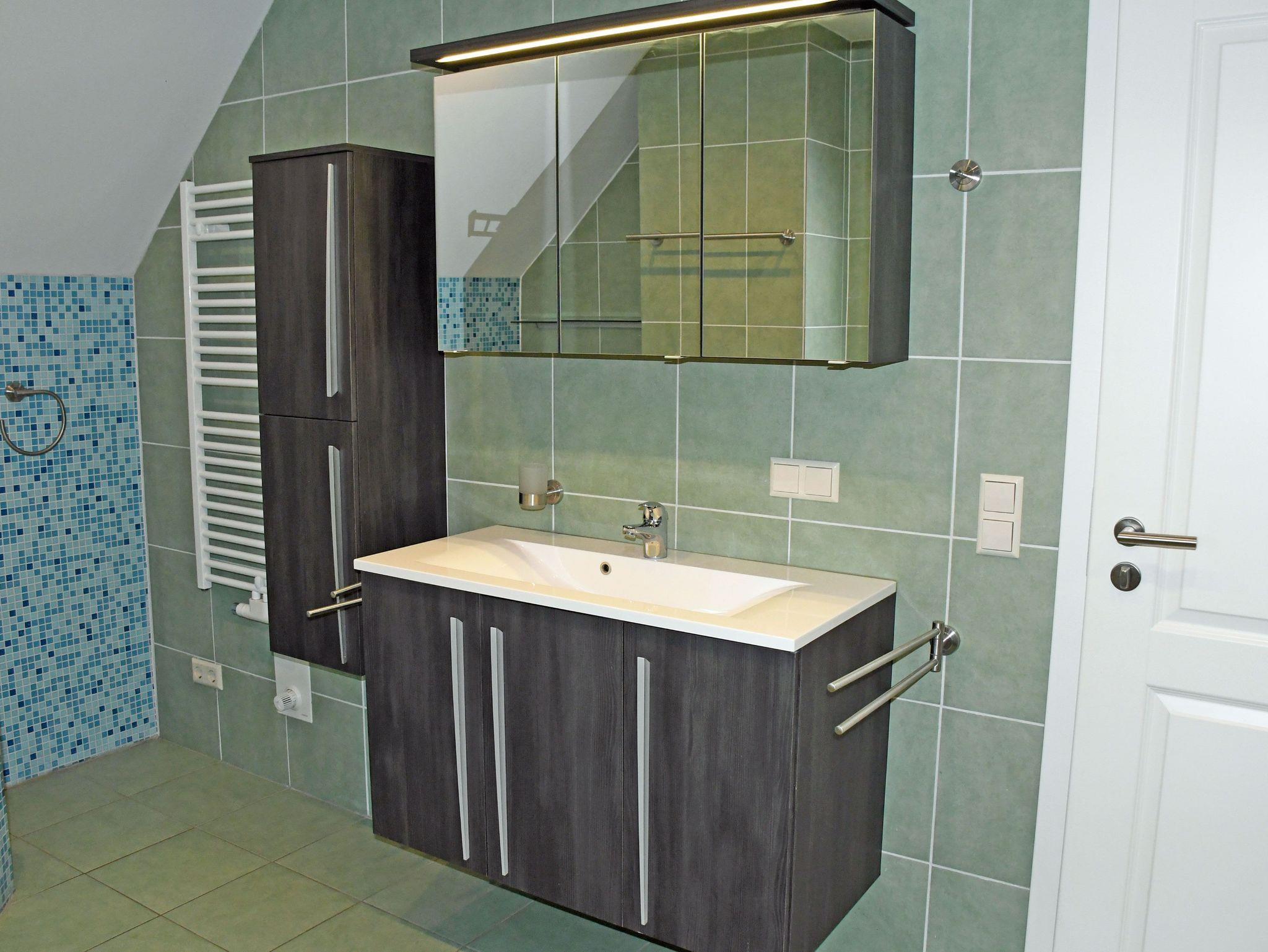 Ebenfalls im Erdgeschoss befindet sich ein modernes Badezimmer mit WC und ebenerdiger Dusche sowie Tageslicht. Die finnische Sauna lädt nach einem Strandspaziergang ebenfalls zur Entspannung ein.