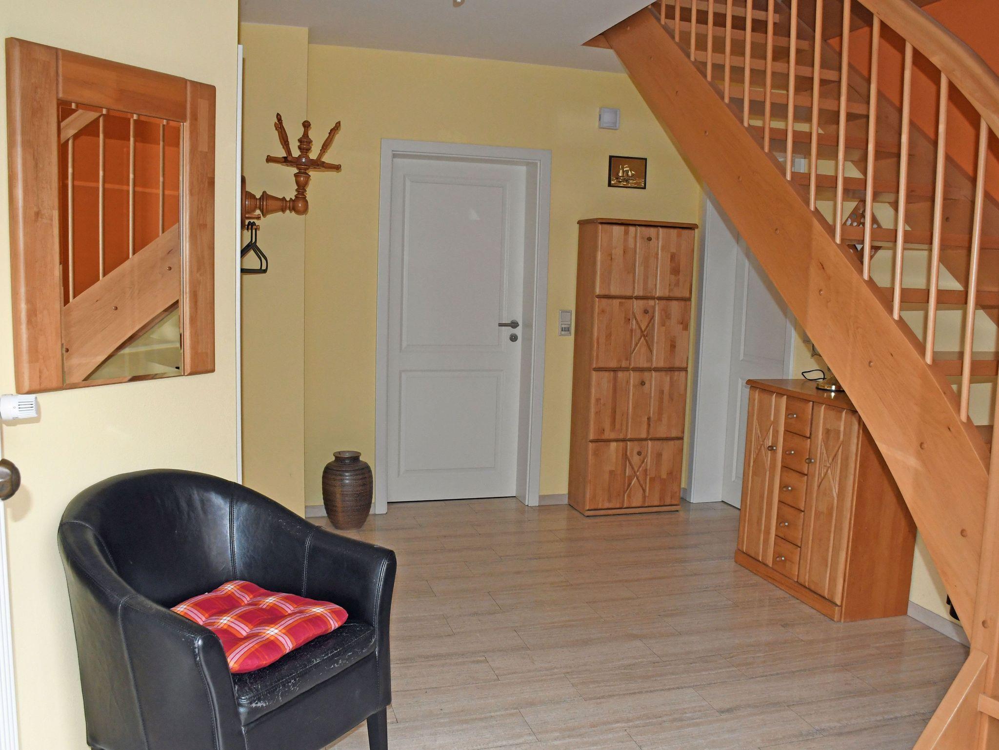 Das freistehende Ferienhaus erstreckt sich mit ca. 130 qm Wohnfläche über 2 Etagen. Im Erdgeschoss gelangen Sie zunächst in den hellen Flurbereich. Im großen Wohnzimmer befinden sich eine Couchgarnitur die auch für eine Gästeaufbettung genutzt werden kann, ein 49 Zoll Flachbild-TV, die Küchenzeile und der Essbereich. Im Wohnzimmer sorgt gerade in der kühleren Jahreszeit ein Kamin für eine behagliche Atmosphäre.