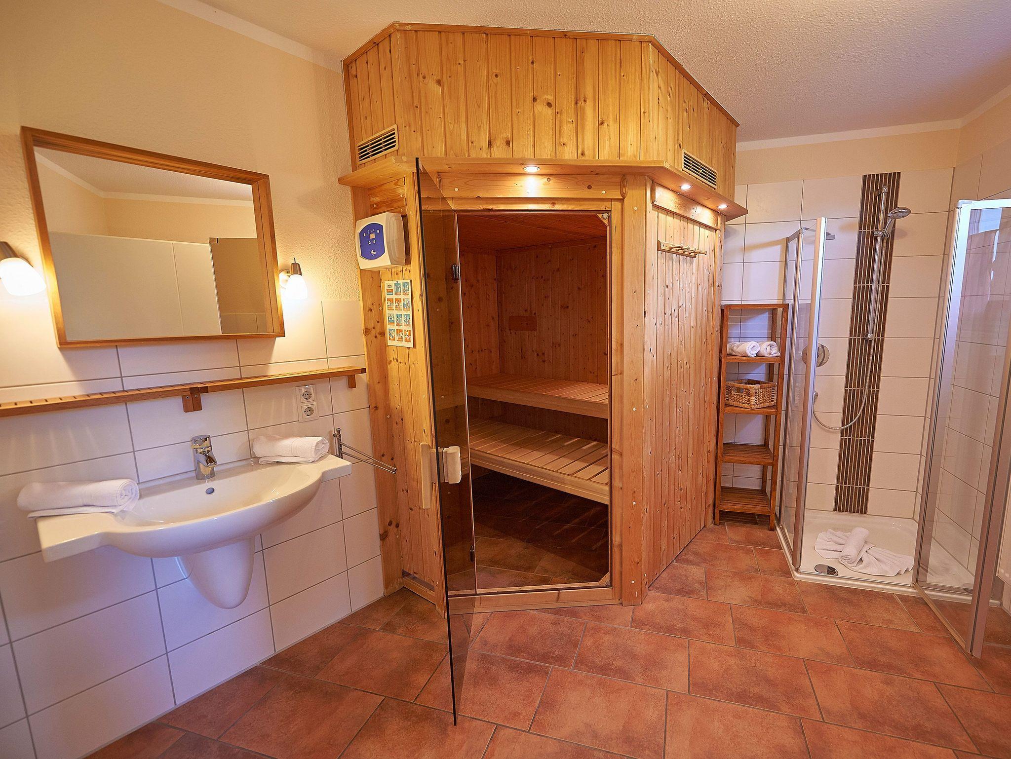 Das Schlafzimmer mit einem Doppelbett und die allergikerfreundlichen Betten ohne Daunen sowie das komfortable Duschbad mit eigener Sauna runden die exklusive Ausstattung ab. Im Schlafzimmer gibt es auch Insektenschutzgitter!