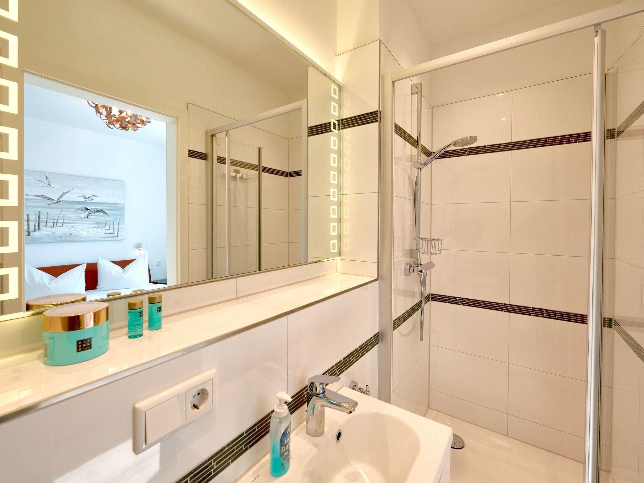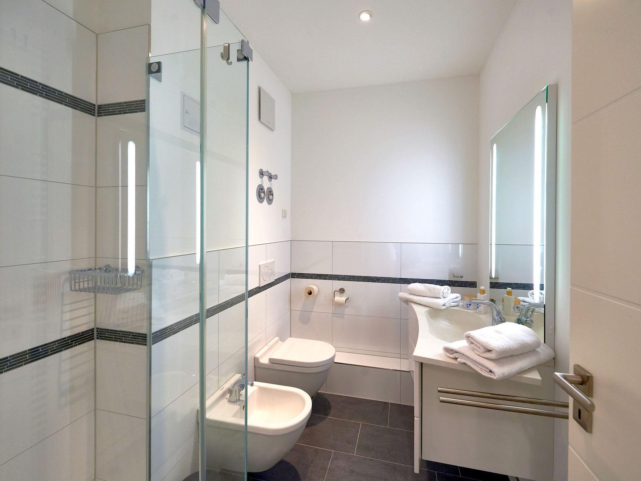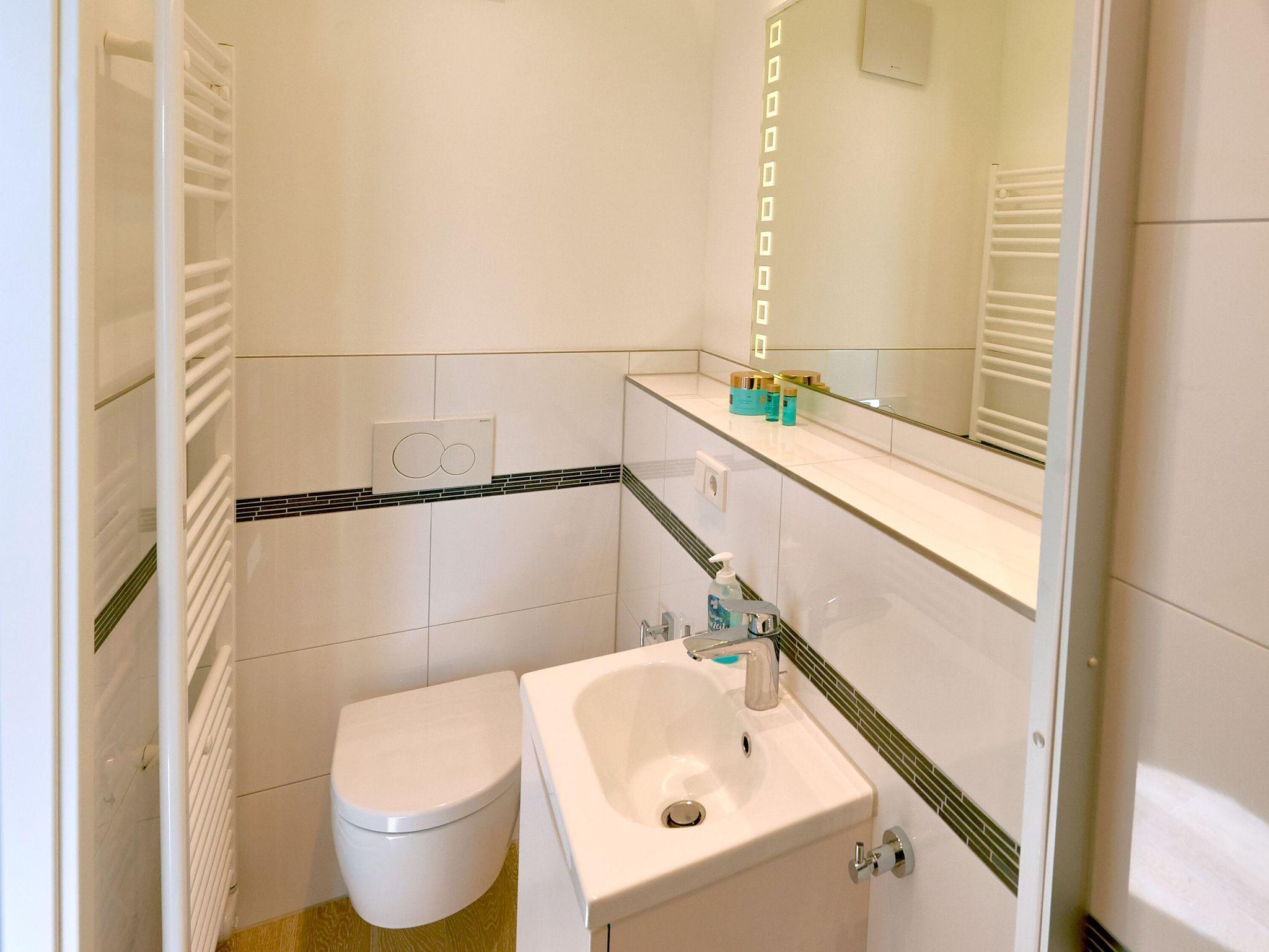 Für den besonderen Luxus verfügt das Appartement über gleich zwei Badezimmer, jeweils ausgestattet mit Dusche/WC, beleuchtetem Waschtisch und Handtuchwärmer. Ein Fön ist auch vorhanden.