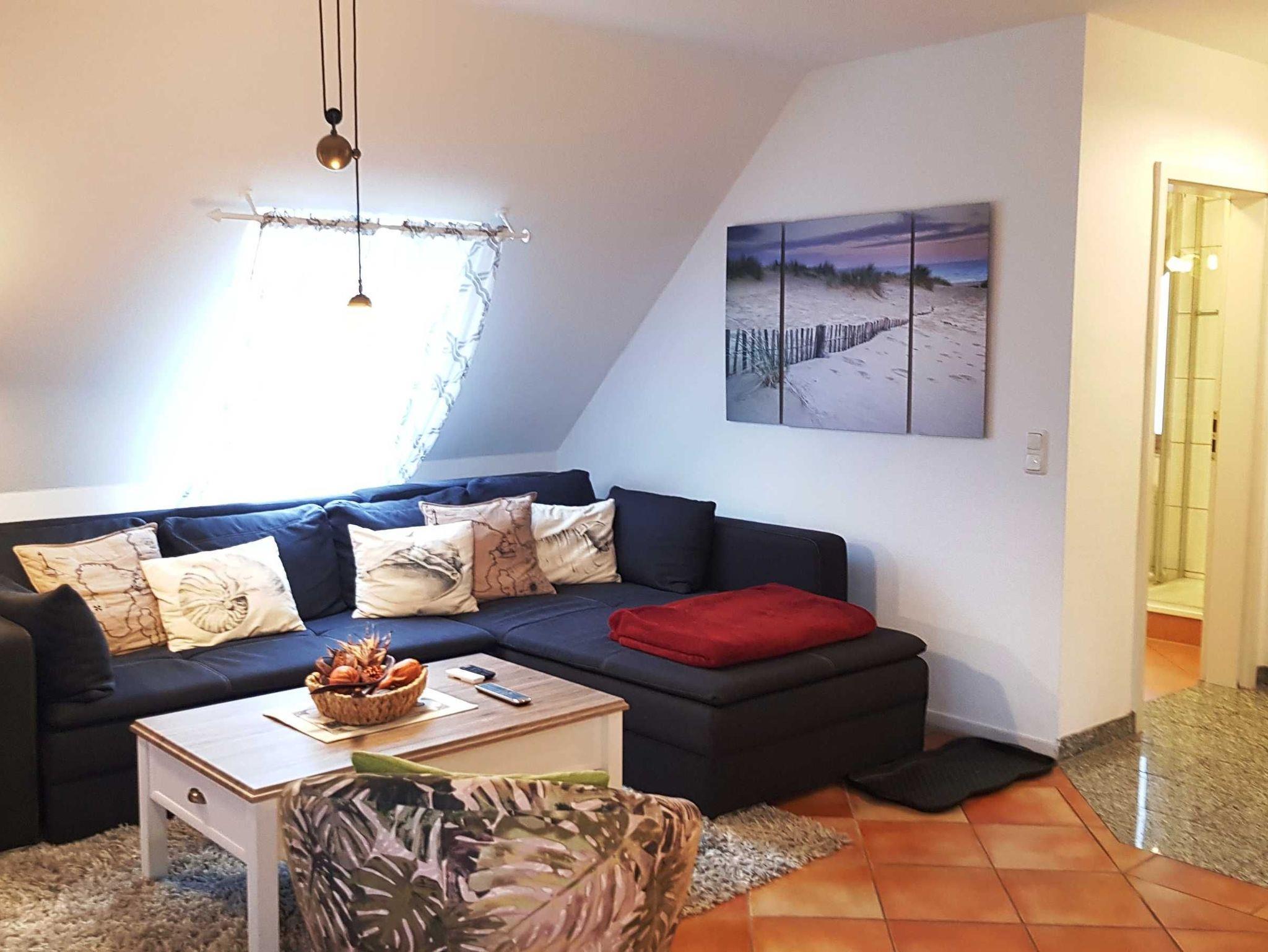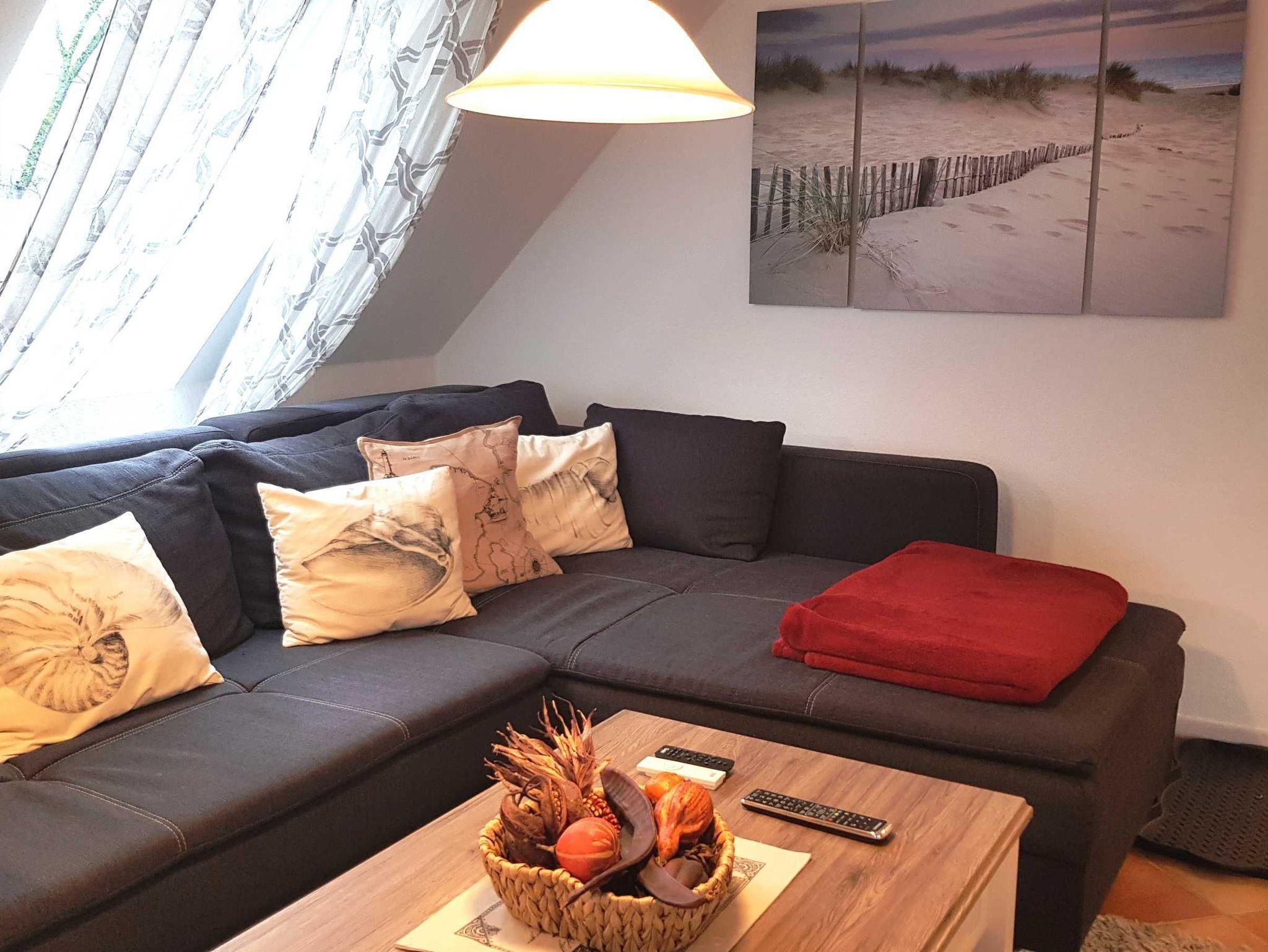 Das helle und modern eingerichtete Wohnzimmer ist mit einem TV und einer Schlafcouch ausgestattet. Hier bietet sich eine optimale zusätzliche Aufbettung für bis zu 2 Personen.