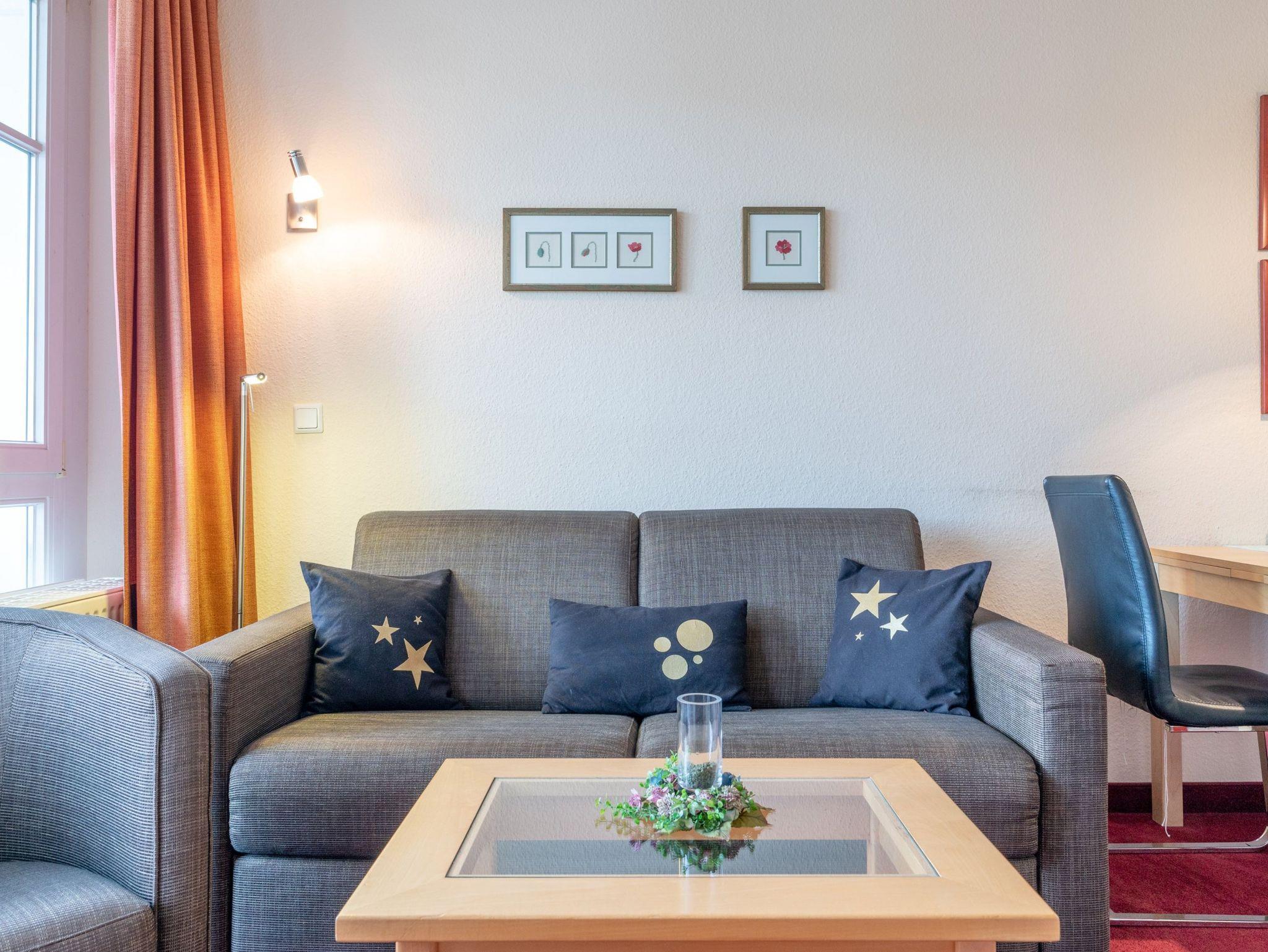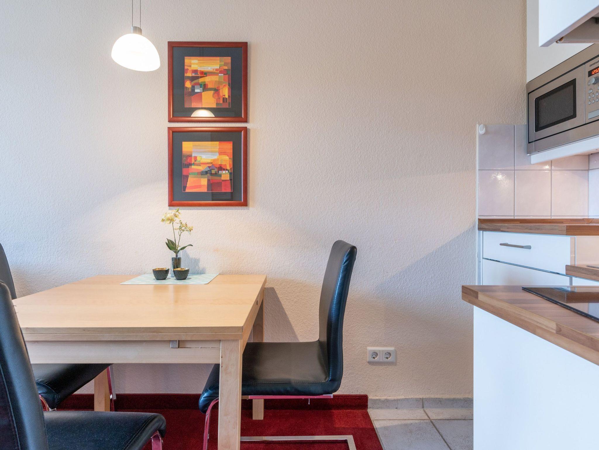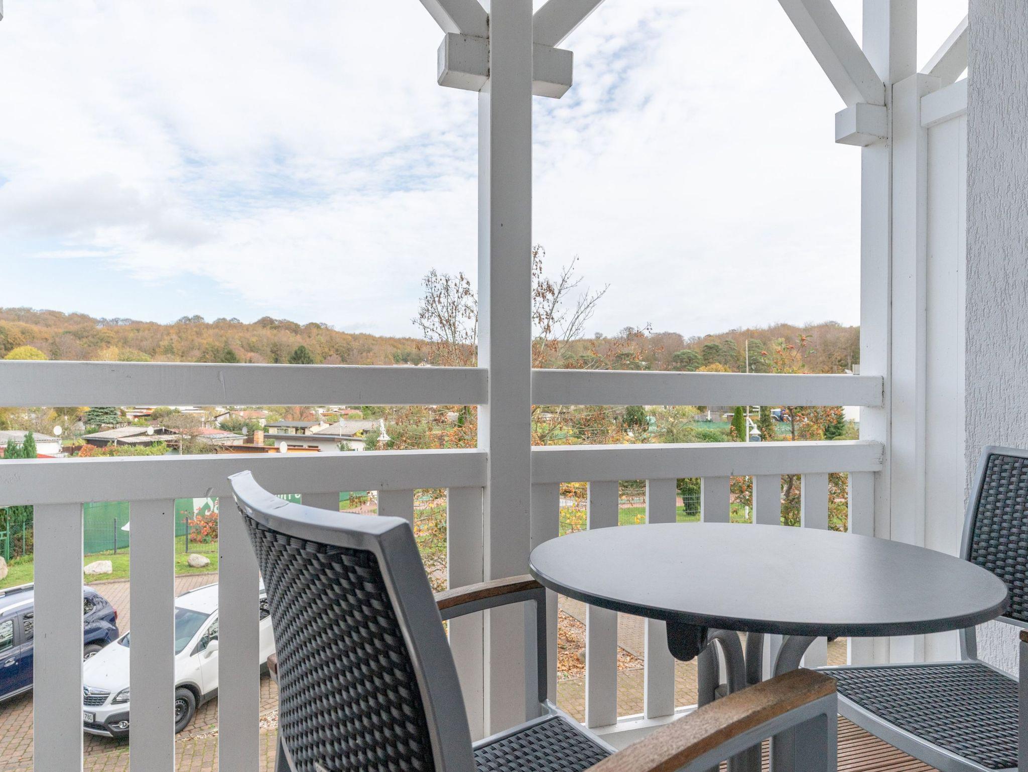 Nach einem erlebnisreichen Urlaubstag können Sie auf dem Balkon in Nordostlage Platz nehmen. Der Ausblick und die Sitzgruppe sorgen hier für ein wunderbares Urlaubsgefühl. Im Nichtraucher-Apartment sind Haustiere nicht gestattet.