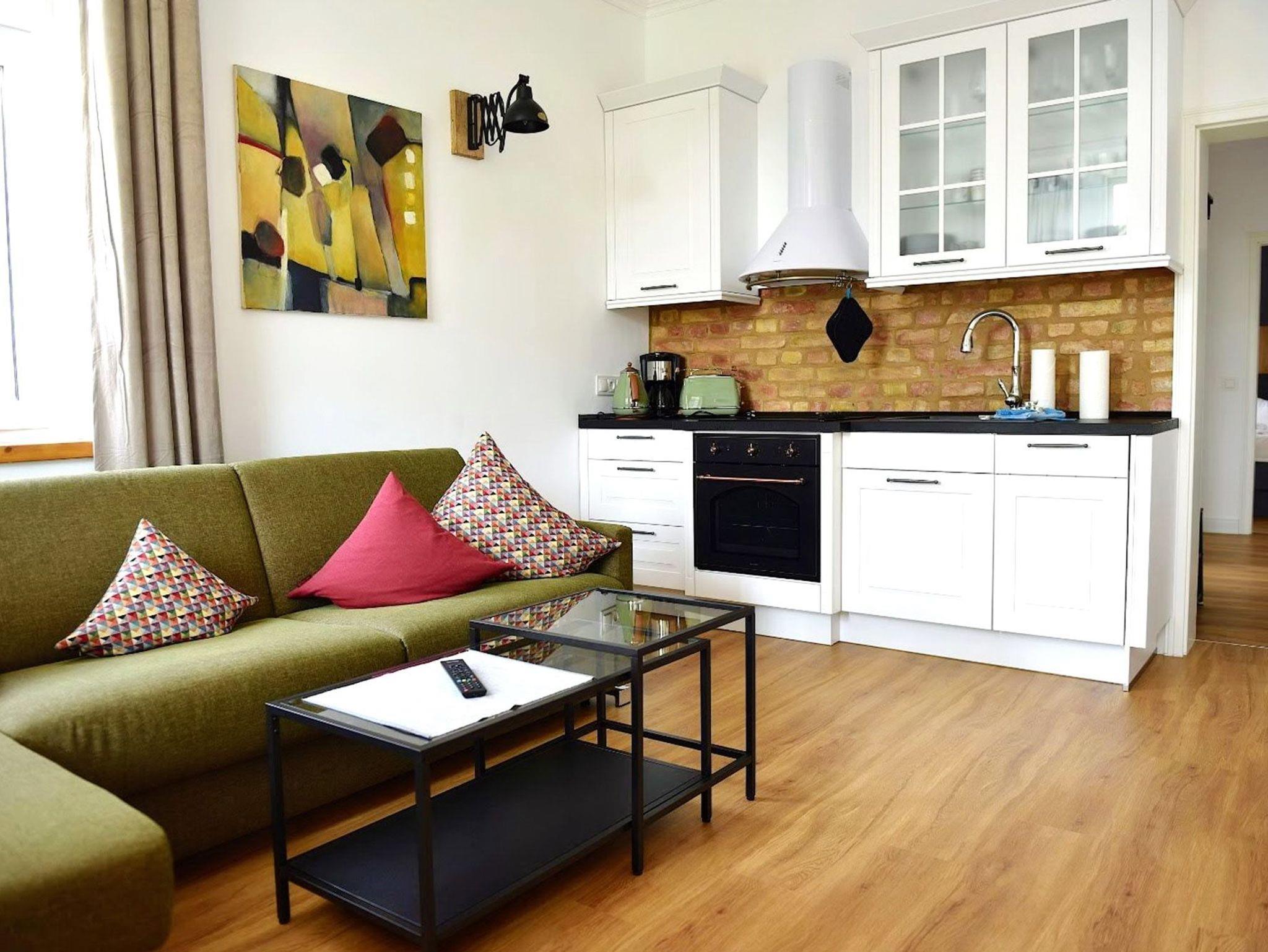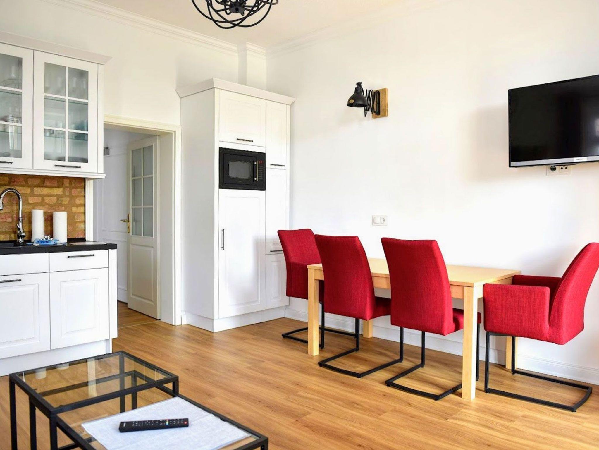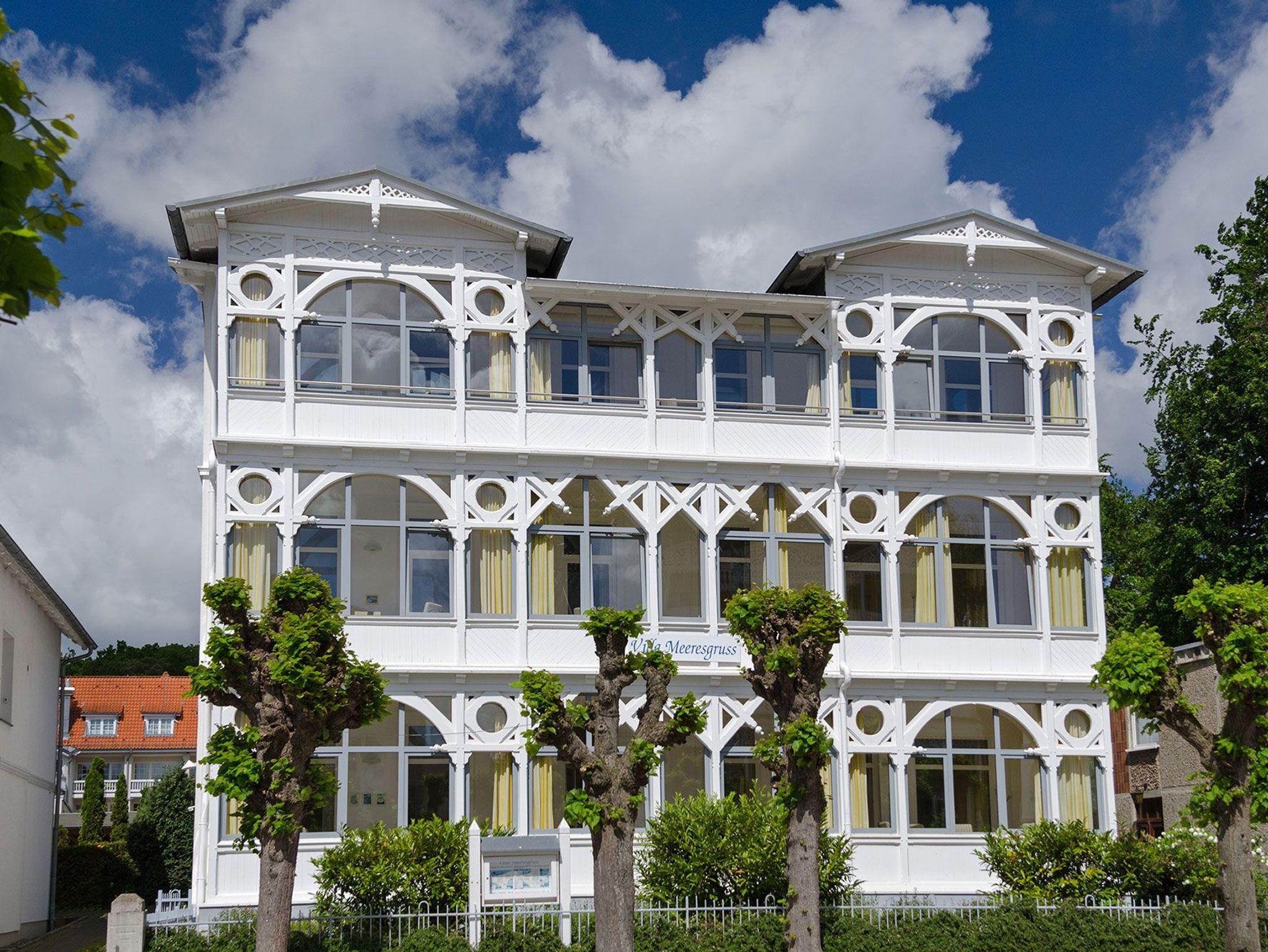 Die 50 qm große Ferienwohnung liegt im ersten Obergeschoss der Villa Meeresgruss und ist für bis zu 4 Personen geeignet. Sie hat einen traumhaft schönen Wintergarten zur Promenade mit Tagessonne. Ausgestattet mit Einbauküche (inkl. Geschirrspüler), kostenlosem WLAN und SAT-TV, bietet sie ein geräumiges Duschbad sowie ein separates WC mit Handwaschbecken.