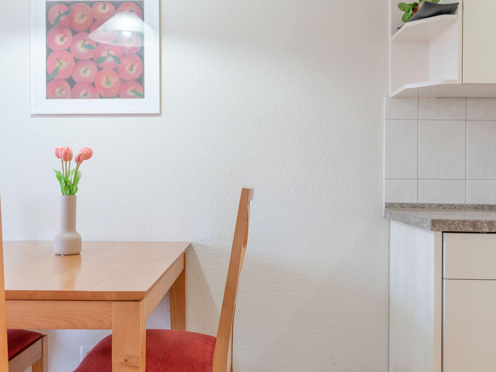 Nach einem erlebnisreichen Urlaubstag können Sie auf dem Balkon in Nordostlage Platz nehmen. Der Ausblick und die Sitzgruppe sorgen hier für ein wunderbares Urlaubsgefühl. Im Nichtraucher-Apartment sind Haustiere nicht gestattet.