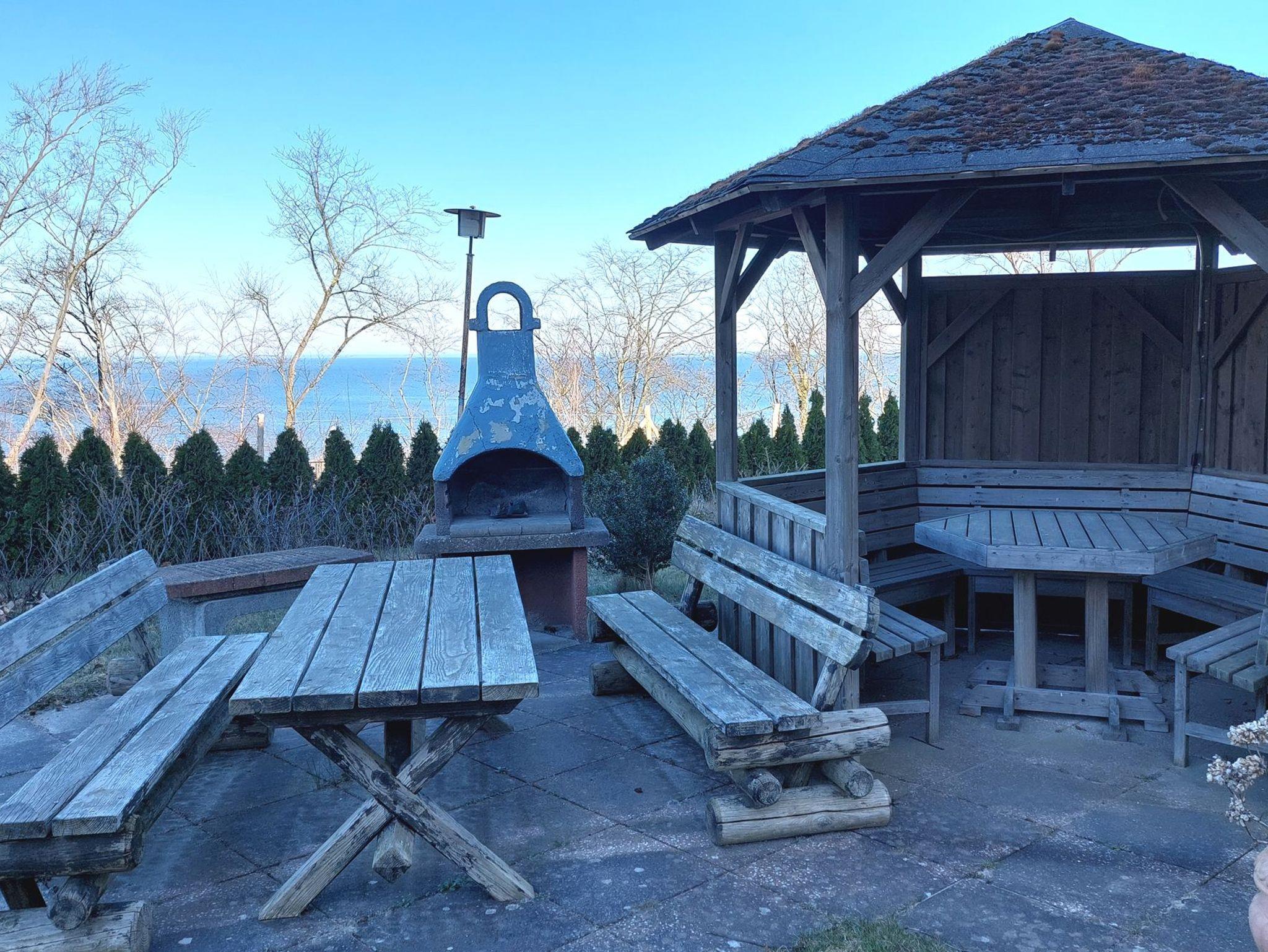 Für gute Unterhaltung bei jeder Wetterlage sorgen ein großer Smart-TV samt stabilem WLAN, eine kleine Musikanlage und ein Elektro-Kamin.