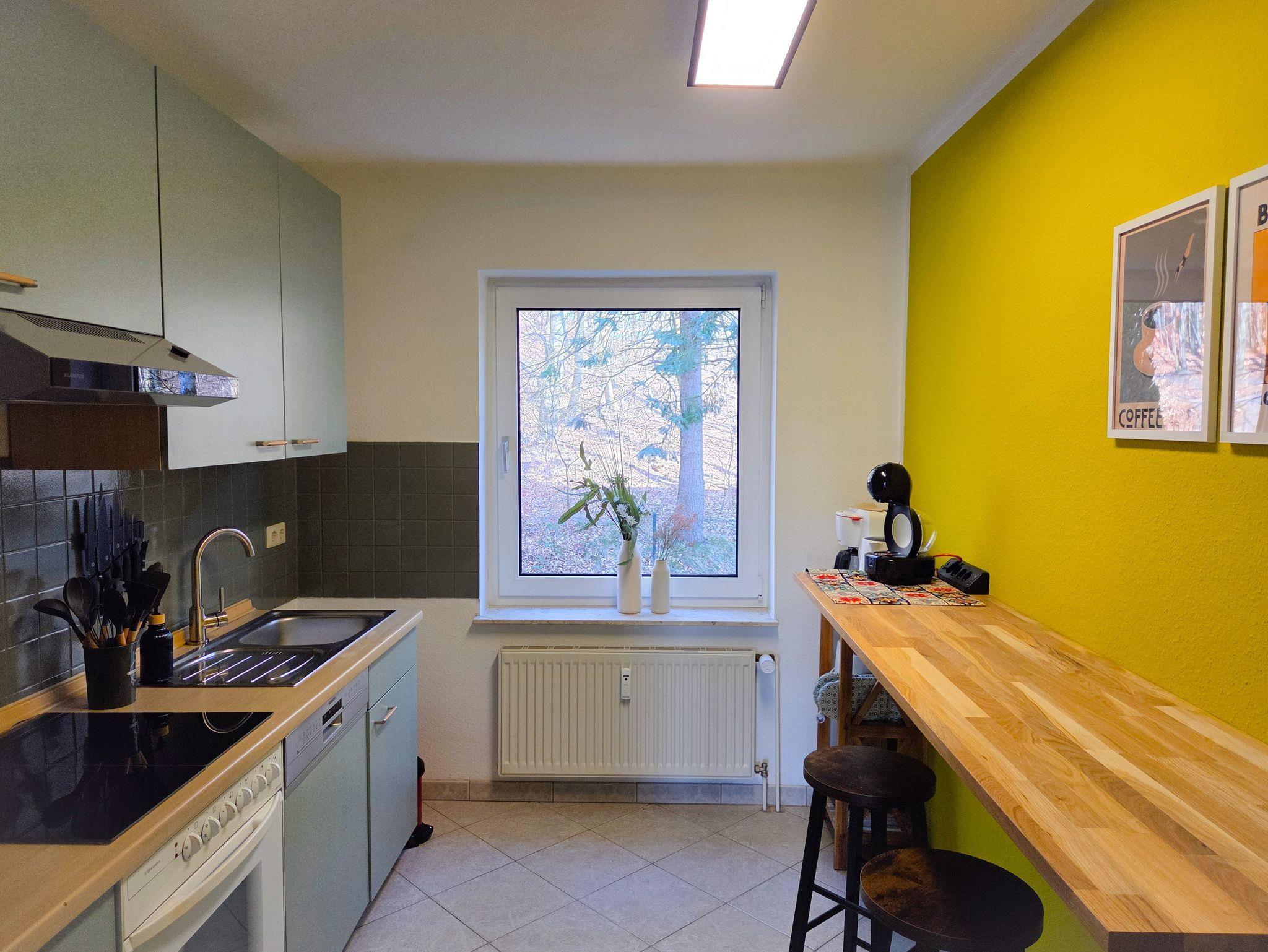 In der Ferienwohnung finden Sie eine Küche mit Essbereich und ein Duschbad mit Waschmaschine.
