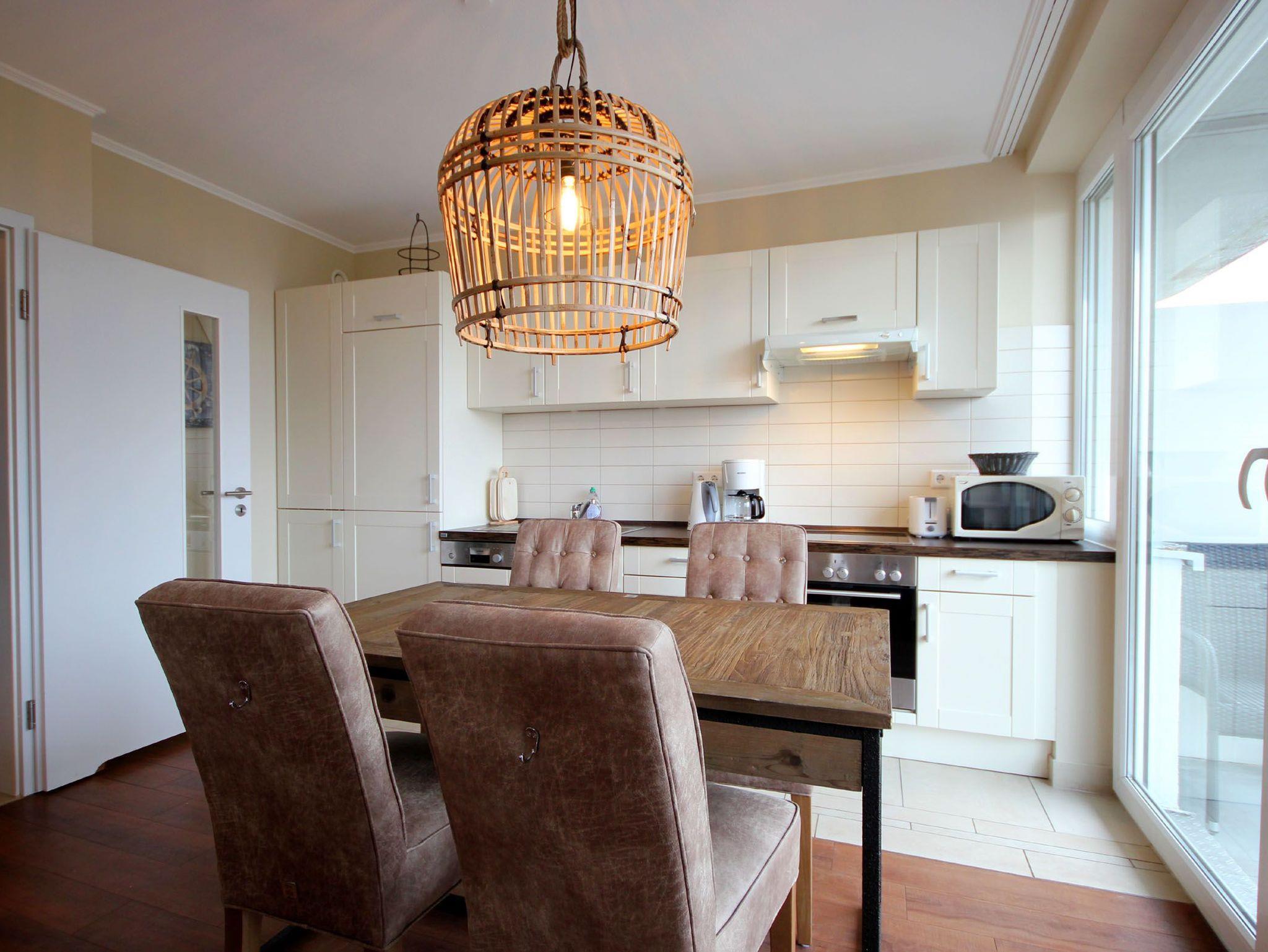 Ihre 3-Zimmer Ferienwohnung 65RB5 Meeresbrise befindet sich im Erdgeschoss, wohnseitig 1. Obergeschoss und ist ca. 51 qm groß sowie für bis zu 4 Personen gut geeignet. Neben dem gemütlichen Wohnbereich mit Zugang zum Balkon mit Blick auf den Selliner See, gehört eine Sitzecke mit Schlaffunktion, ein Essbereich, Flachbild TV sowie WLAN zur Nichtraucherwohnung. Im Schlafzimmer erwartet Sie ein Doppelbett, ein zusätzlicher TV sowie ein Kleiderschrank. Per offenem Durchgang erreichen Sie von dort auch das zweite Schlafzimmer, welches über ein Etagenbett verfügt. Zudem können Sie eine voll ausgestattete und im Wohnbereich integrierte Küchenzeile mit Geschirrspüler, Backofen, Wasserkocher, Toaster, Kaffeemaschine sowie umfangreiches Küchengeschirr nutzen. Das moderne Badezimmer erwartet Sie mit Waschtisch, WC und Dusche. Einen Parkplatz sowie eine Fahrradunterstellmöglichkeit befinden sich direkt am Objekt.