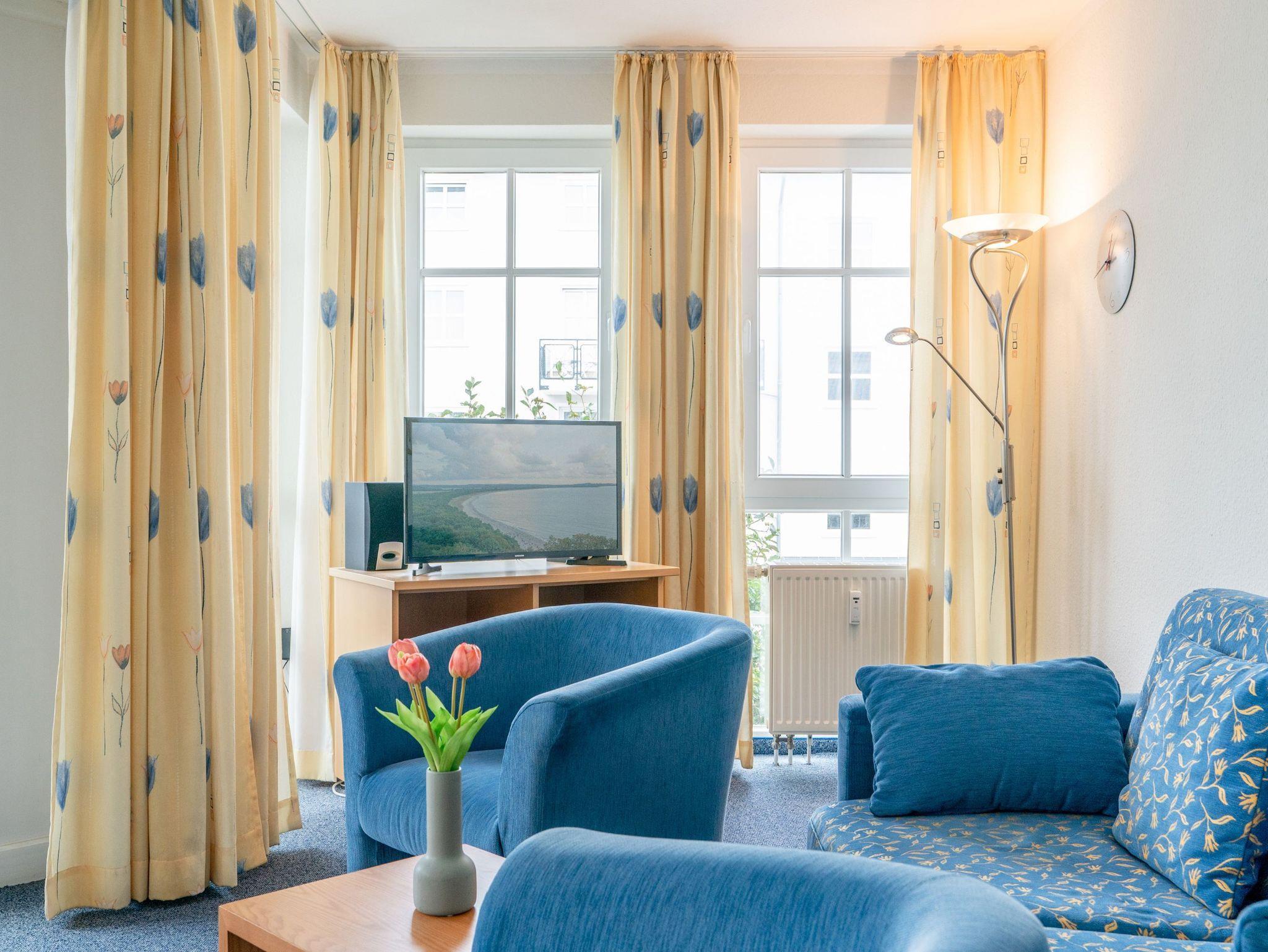Die 50 m² große und freundliche Ferienwohnung 500 im Seepark Sellin bietet Platz für maximal 4 Personen und befindet sich im Haus Göhren in der 1. Etage. Die Wohnung ist mit einem Schlafzimmer und einem Badezimmer ausgestattet.