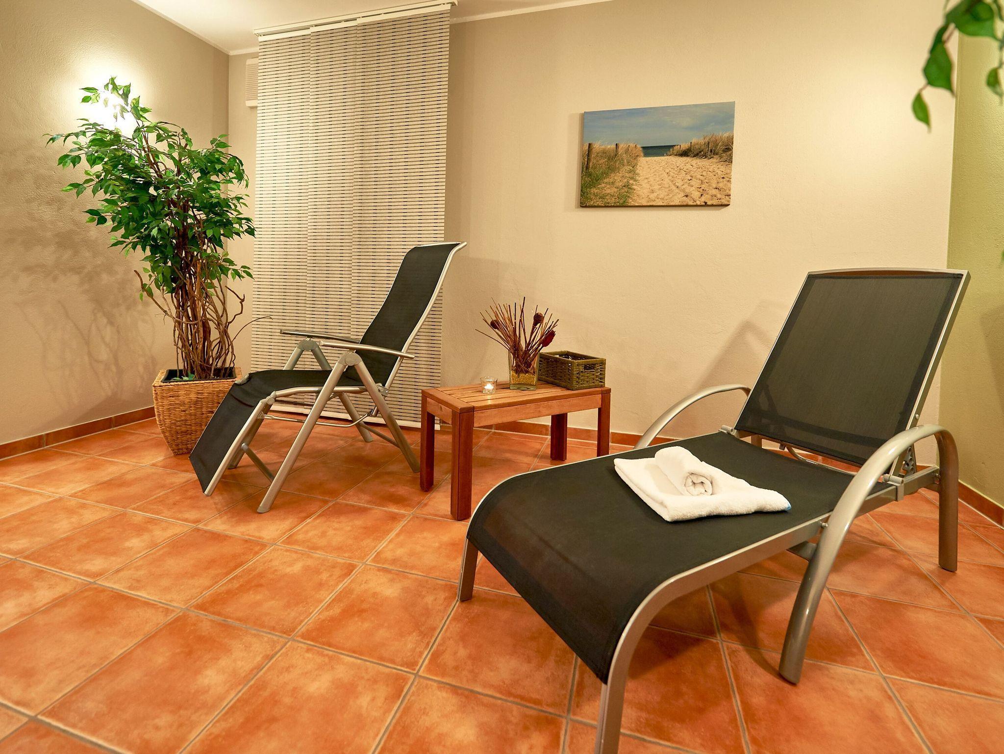 Der helle, freundliche Wohnraum ist mit einer bequemen Lederschlafcouch (Aufbettungsmöglichkeit für 2 Personen), zwei Korbsesseln, einem Flachbild-TV, einer Mini-Stereoanlage mit CD-Player und einem Esstisch ausgestattet. Die harmonisch in den Wohnbereich integrierte Küchenzeile ist ausgestattet mit einem Kühlschrank mit Gefrierfach, einem 4-Platten-Cerankochfeld, einem Backofen, einer Geschirrspülmaschine, einer Mikrowelle, Wasserkocher, Kaffeemaschine, Toaster und diversem Kleininventar, das die Küchenausstattung komplettiert.