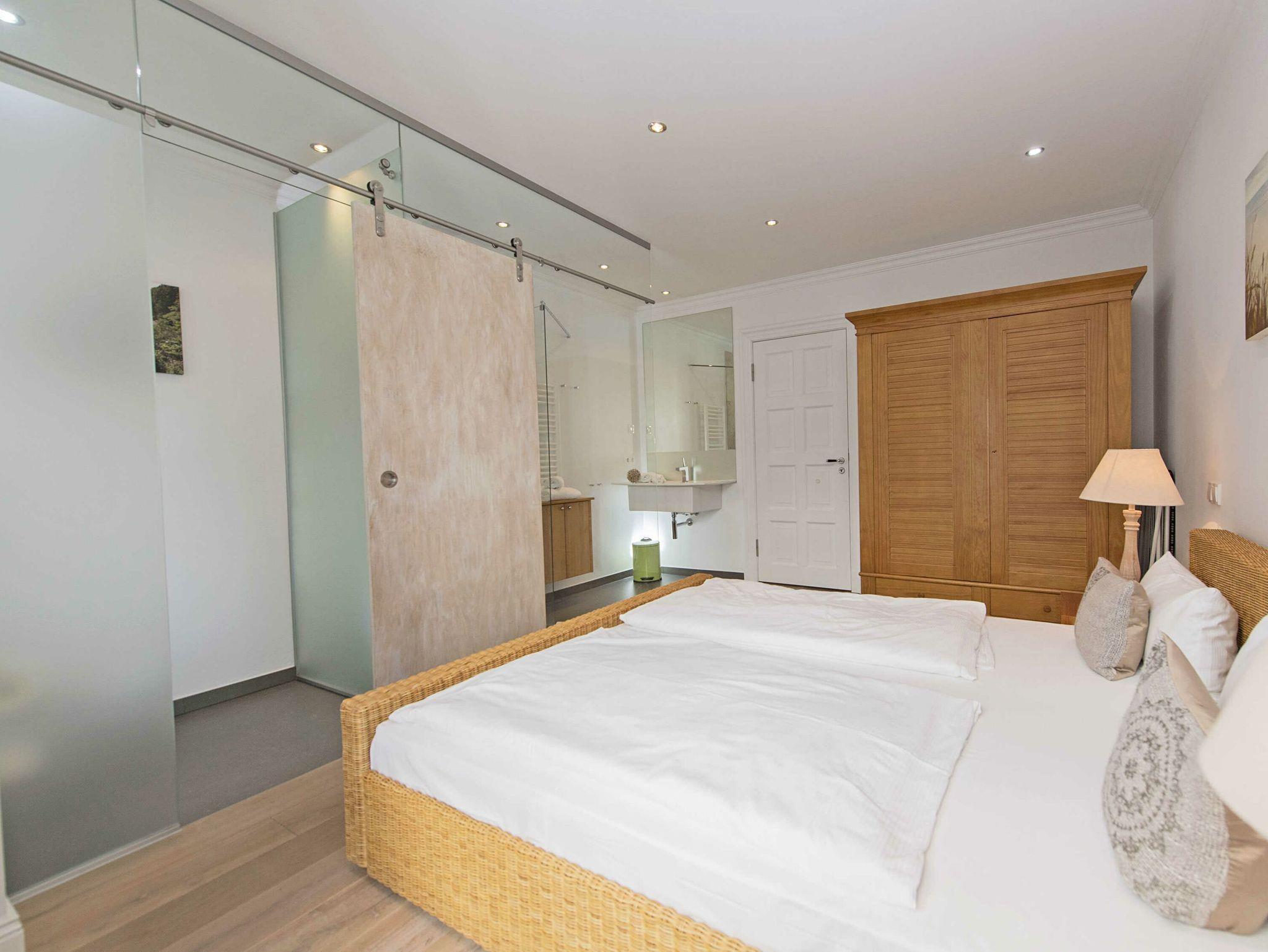 Das 3-Raum-Appartement Findling liegt von der Wilhelmstraße gesehen im 1. Obergeschoss, jedoch ebenerdig zur rückseitigen Grünanlage mit dem beheizten Außenpool (saisonal in Betrieb). Das Appartement wurde vom Eigentümer ausschließlich mit hochwertigen MARKTEX Möbeln ausgestattet. Bei der Einrichtung treffen modern und rustikal aufeinander ein besonderes Wohlfühlambiente ist damit garantiert. Maritime Dekorationselemente runden die exklusive Ausstattung dieses Appartements ab.
