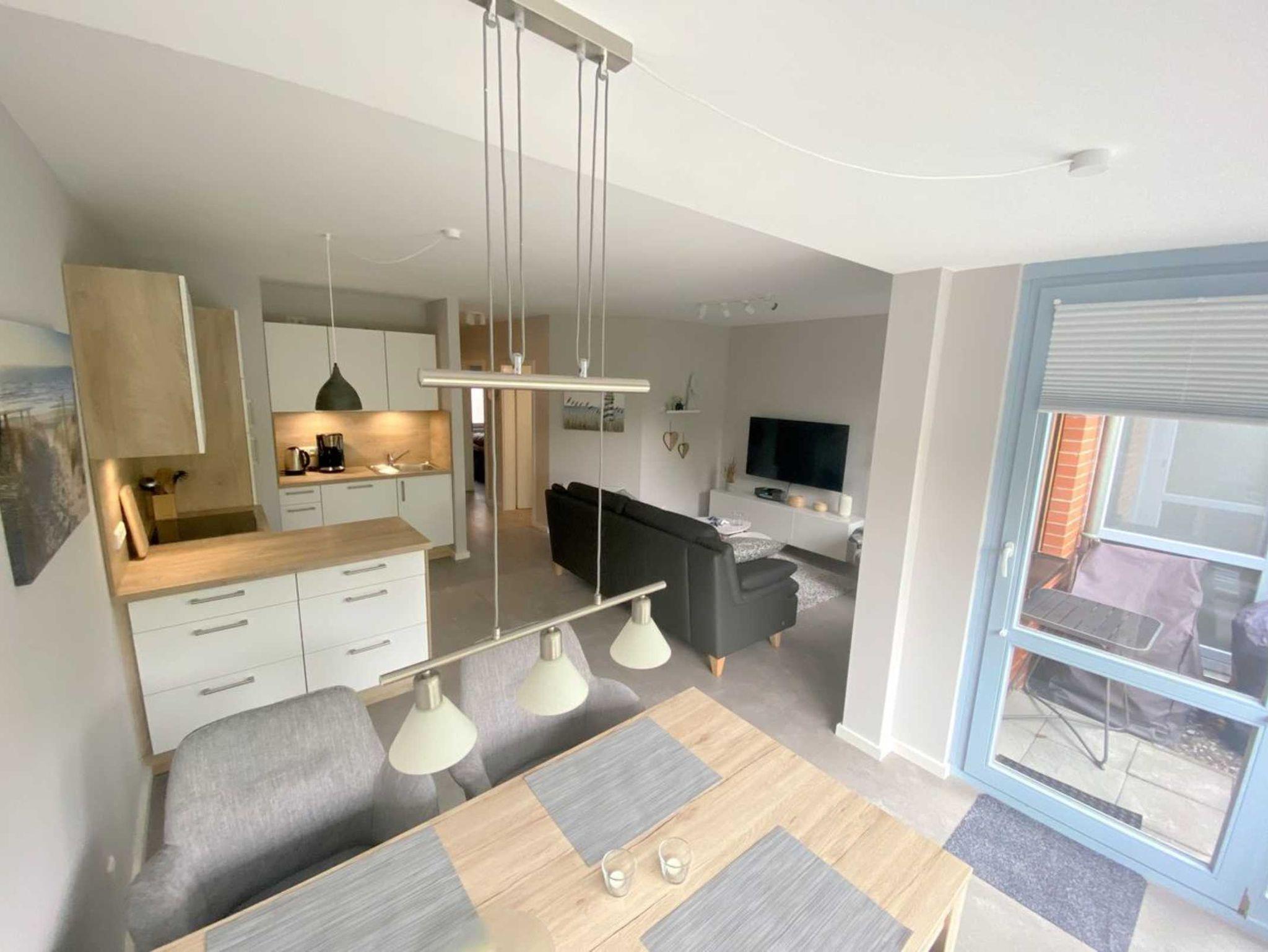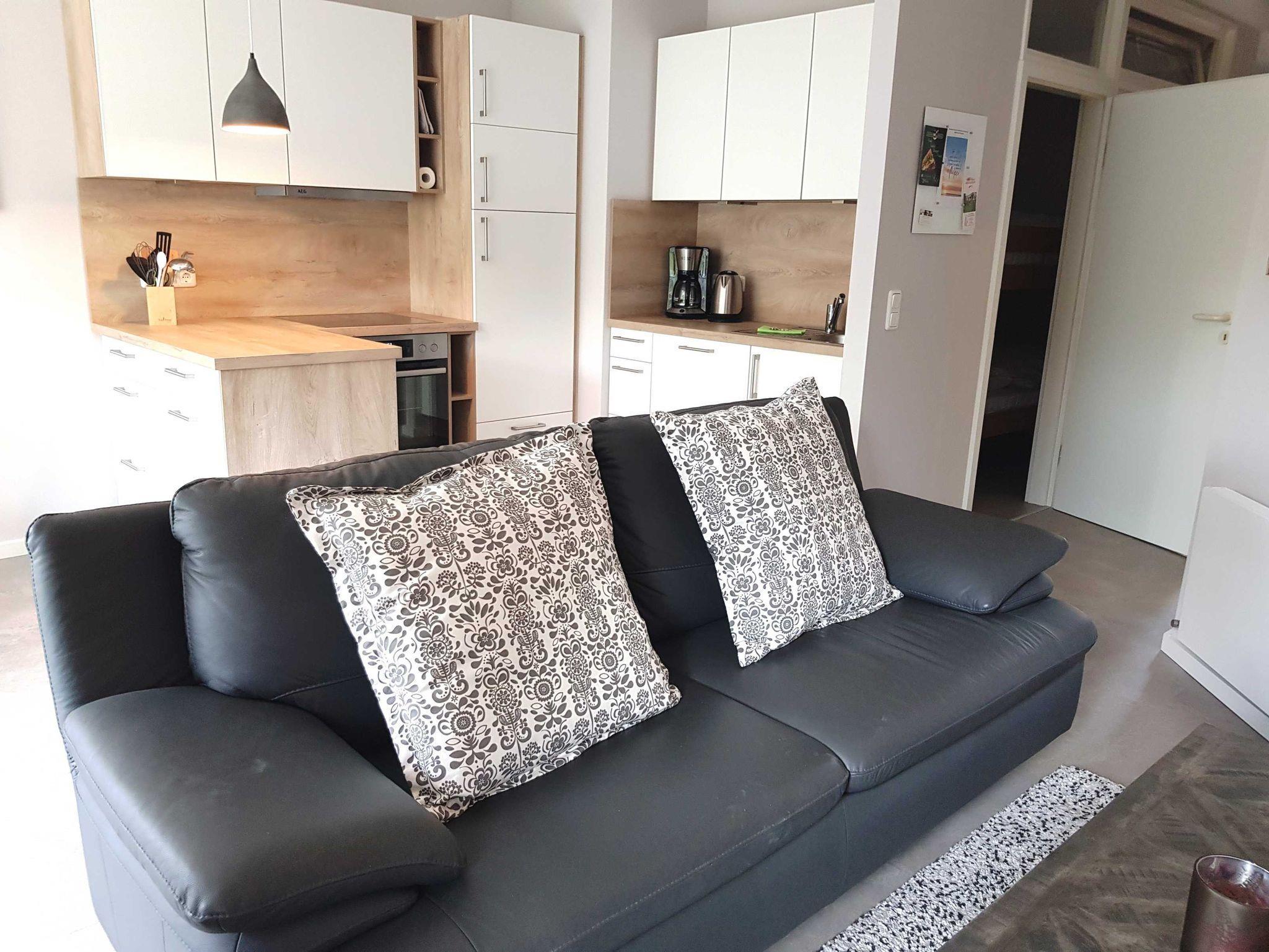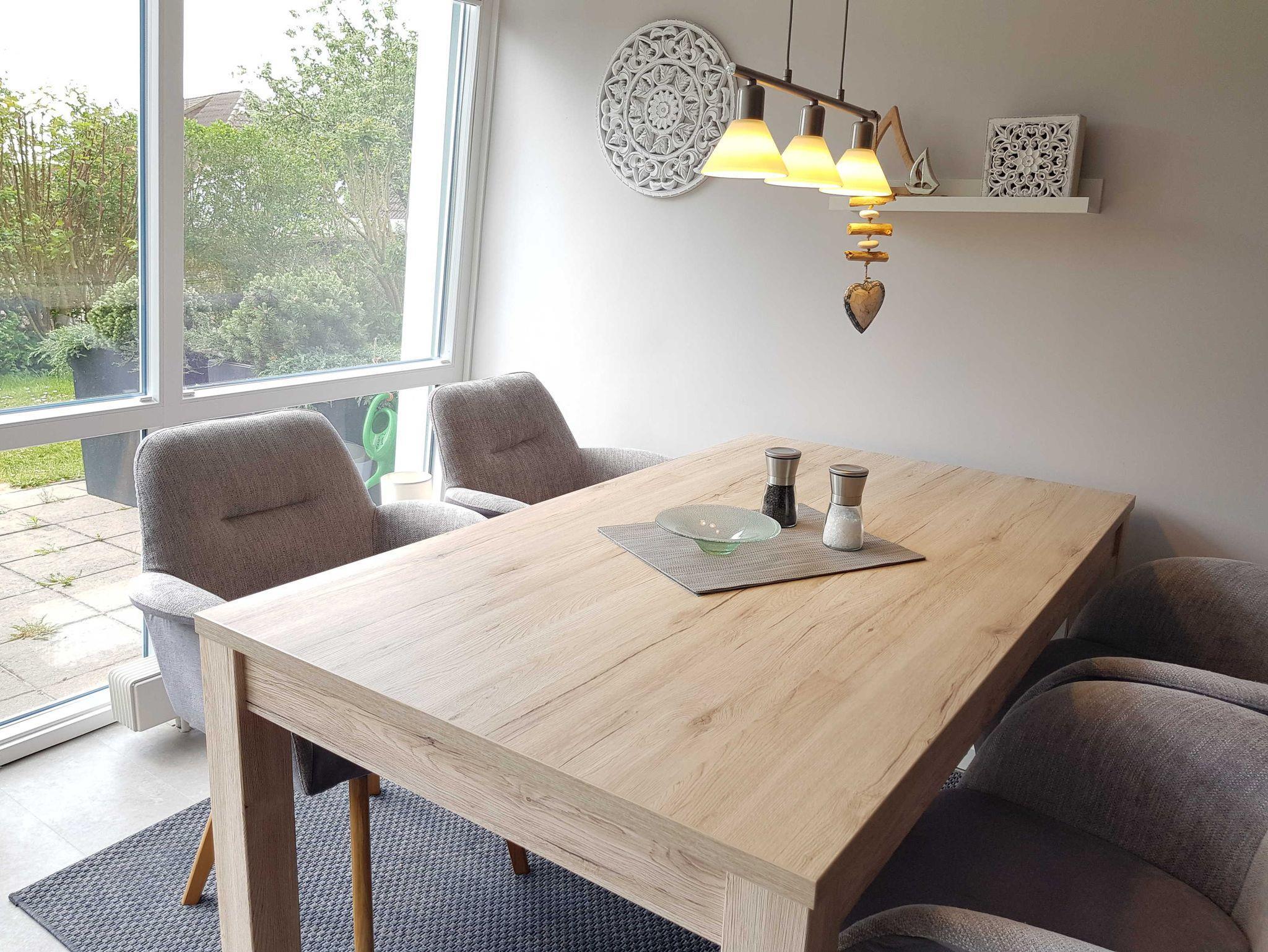 • Wohnzimmer mit Couch und Esstisch für 4 Personen