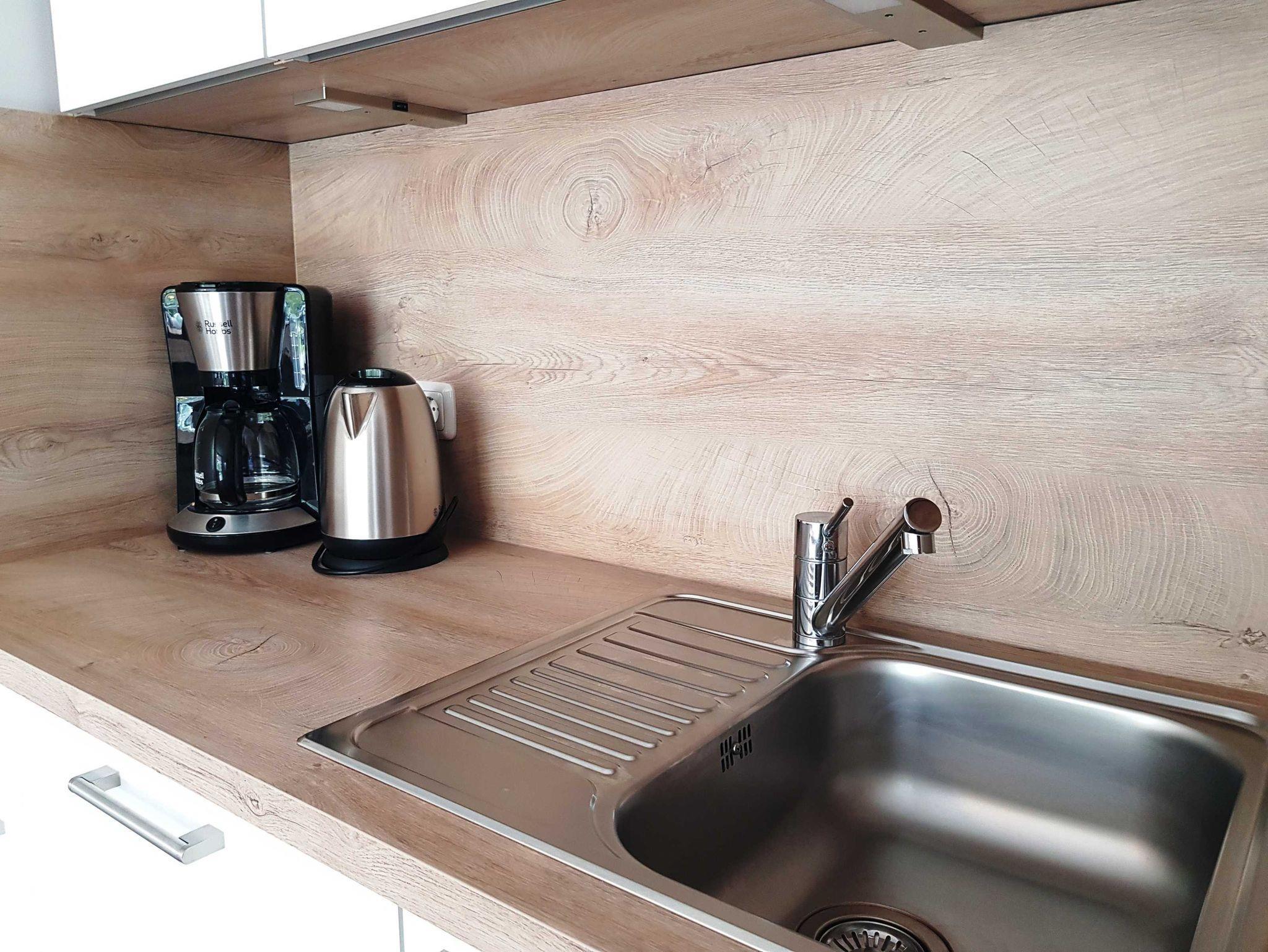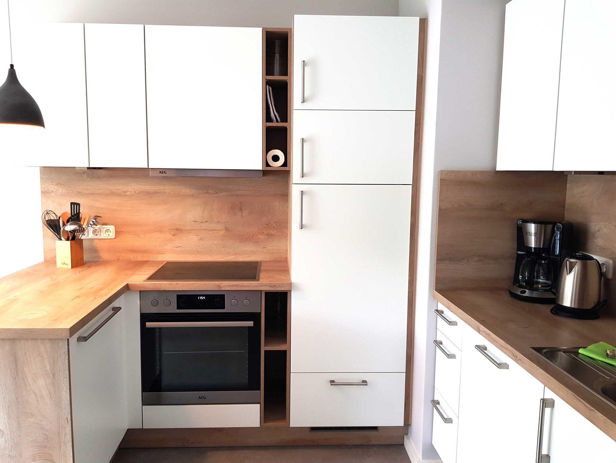 Die Einbauküche hat einen Herd mit vier Cerankochfeldern, einen Backofen, Geschirrspüler und einen Kühlschrank mit Gefrierfach. Toaster, Wasserkocher und Kaffeemaschine sowie Geschirr und alle nötigen Küchenuntensilien finden Sie auch dort.