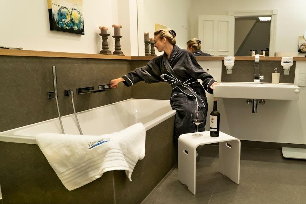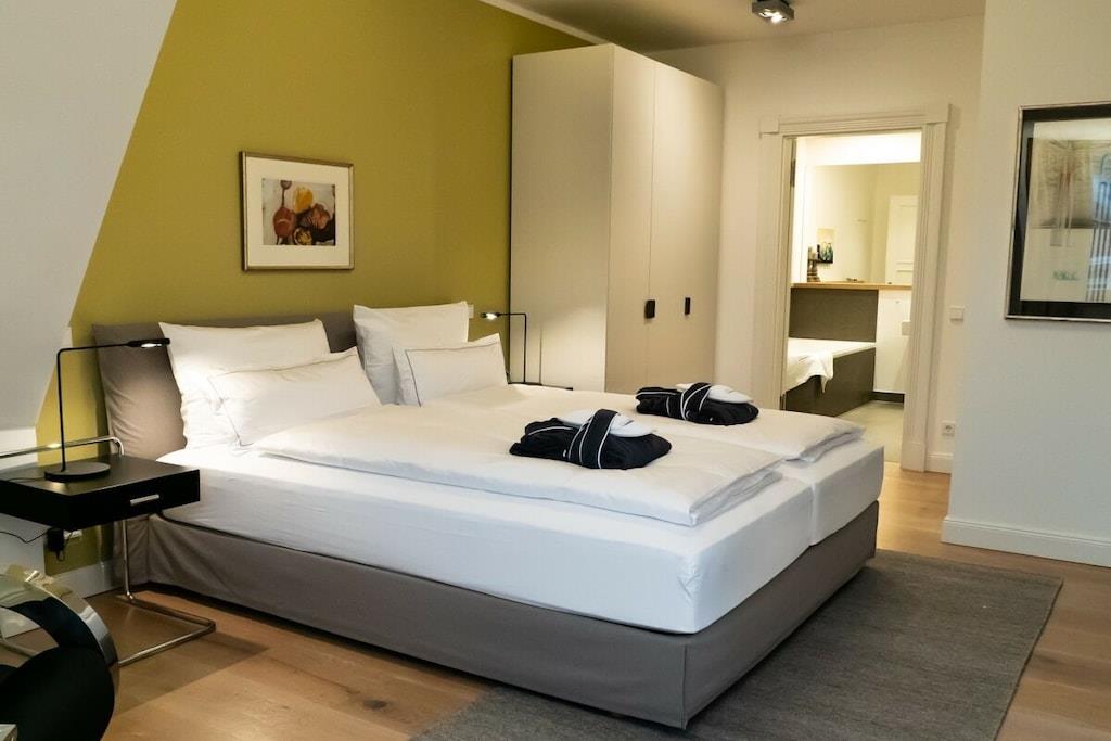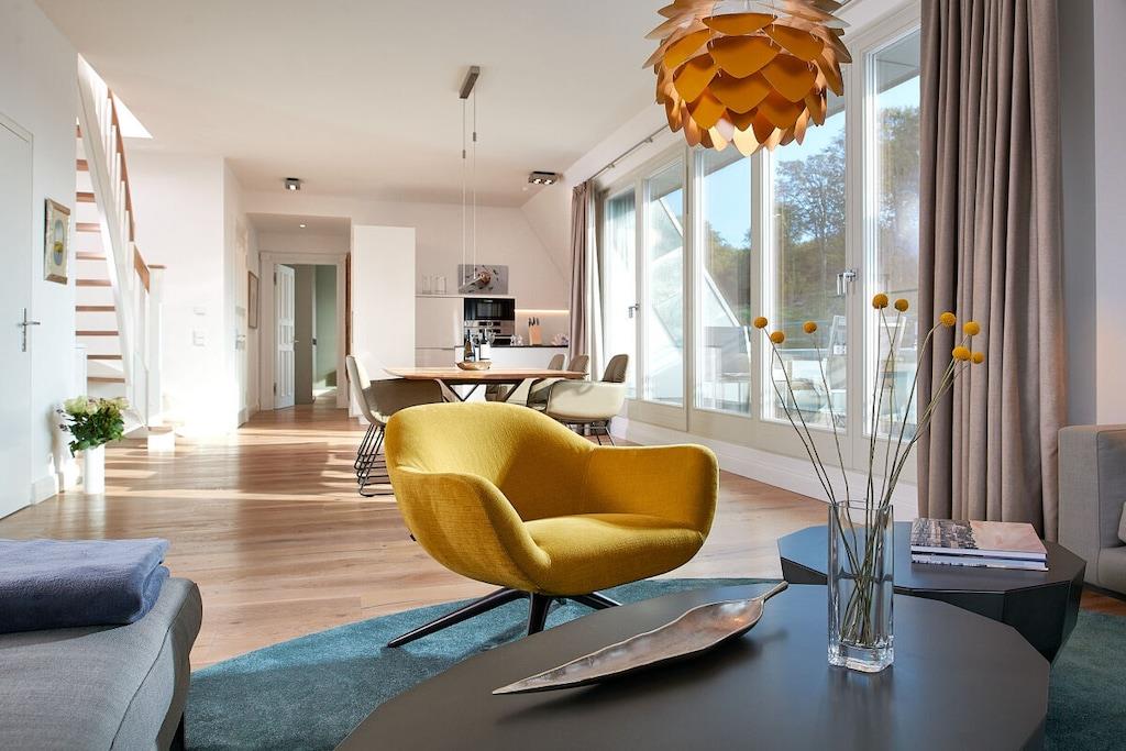 Das richtige Appartement für den, der das Besondere sucht! Das Highlight dieses Appartements ist die Dachterrasse über dem Wohnbereich, die exklusiv von Ihnen genutzt werden kann. Sie ist 86 m² groß. Ein Teil der Terrasse ist durch einen Turm besonders attraktiv. In einer schönen "Turm-Lounge" können Sie entspannt mit einem Glas Wein den Sonnenuntergang genießen. Von der Dachterrasse ist der direkte Zugang zum Hallenbad und zu dem Saunenbereich möglich. Hervorzuheben ist der phantastische Blick auf das Meer und nach Süden hin auf den Selliner See und weite Bereiche der Insel Rügen. Das "Paradies" verfügt über einen großzügigen Wohn-/Eßbereich (ca. 53 m²), zwei Schlafzimmer mit angrenzenden En-suite-Bädern und ein separates Gäste-WC. Eine wunderschöne Ausstattung mit Möbeln von Minotti, Poliform, B&B italia, Freifrau und Schramm erwartet Sie. Die gesamte Ferienwohnung verfügt über Fußbodenheizung unter einem Eichenholzfußboden. Hinweis auf Bautätigkeit in der Nähe: Das "Kurhaus" auf der dem FIRST gegenüberliegenden Seite der Wilhelmstraße wurde in den letzten Monaten abgerissen. Zurzeit beginnen die Neubauarbeiten, die sich - je nach Art der aktuellen Arbeiten - mehr oder minder stark beeinträchtigend auf die Nachbarschaft auswirken könnten. Nach Informationen der Gemeinde sind Bauarbeiten werktags zwischen 07.00 Uhr und 18.00 Uhr zulässig. Wir haben deshalb bei der diesjährigen Preisgestaltung einen entsprechenden "Baustellenrabatt" bereits berücksichtigt. Dies gilt für alle vier unserer Penthouse-Wohnungen, auch wenn sie aufgrund ihrer jeweiligen Lage unterschiedlich betroffen sein dürften. Über den Fortgang bzw. den Ablauf der Bauarbeiten haben wir leider keine Kenntnis und natürlich können wir auch keinen Einfluss darauf nehmen. Wir bitten um Beachtung.