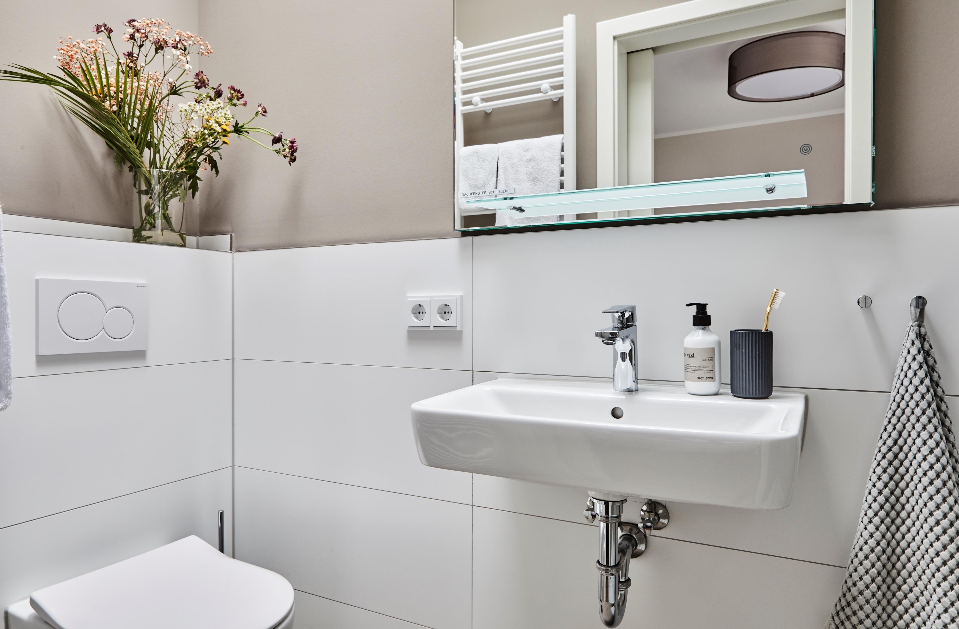 Die Küchenzeile ist mit einem Geschirrspüler, Kühlschrank, Mikrowelle und Herd ausgerüstet. Geschirr und Besteck sind ausreichend vorhanden. Eine Nespresso-Kaffeemaschine sowie eine Kaffeefiltermaschine und ein Toaster stehen Ihnen zur Verfügung.