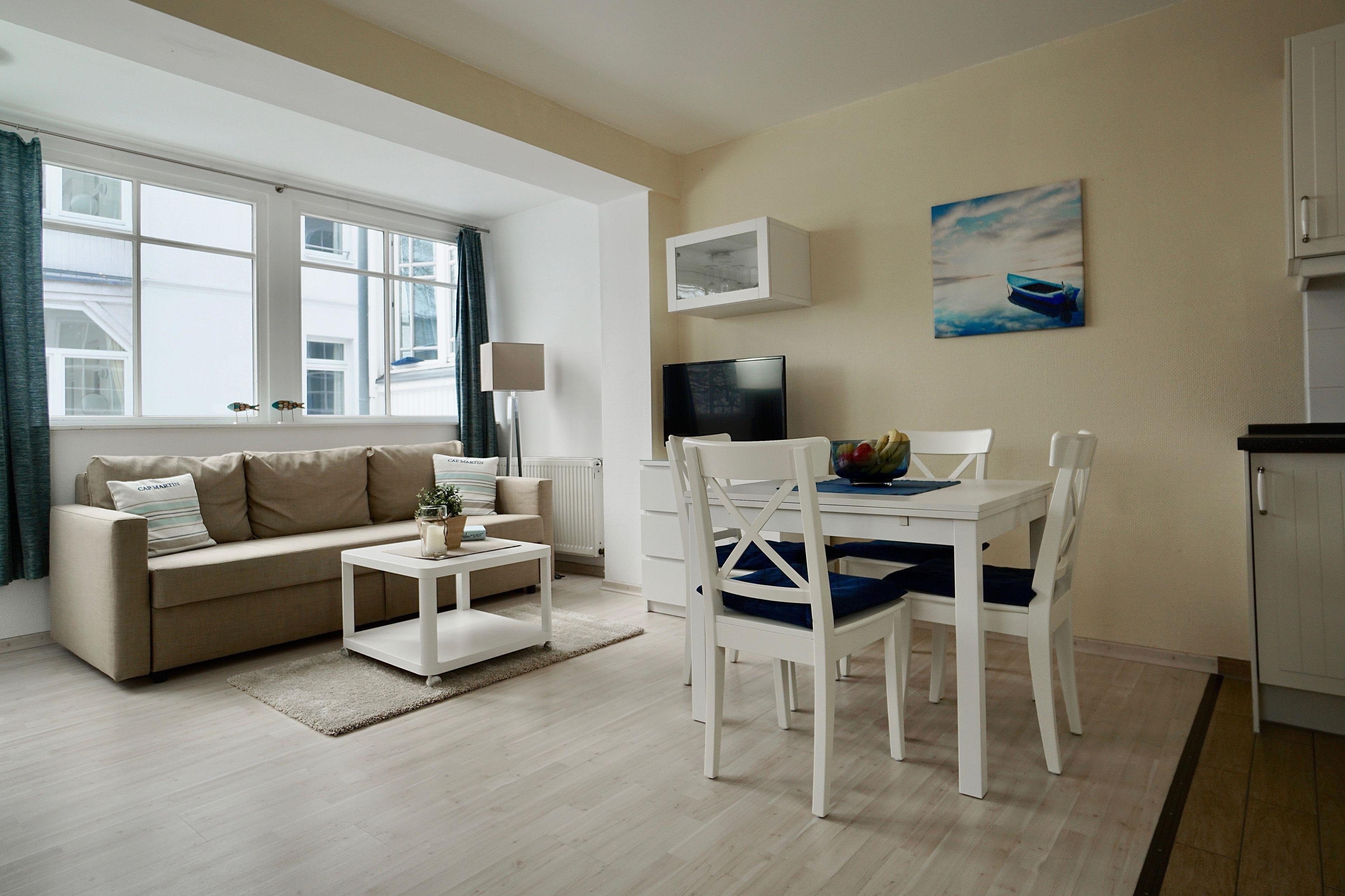 In diesem gemütlichen Appartement finden 4 Personen Platz für einen entspannten Urlaub. Auf 44 qm finden Sie einen großen Wohn-, Ess- und Schlafbereich mit angrenzendem offenen Wintergarten.