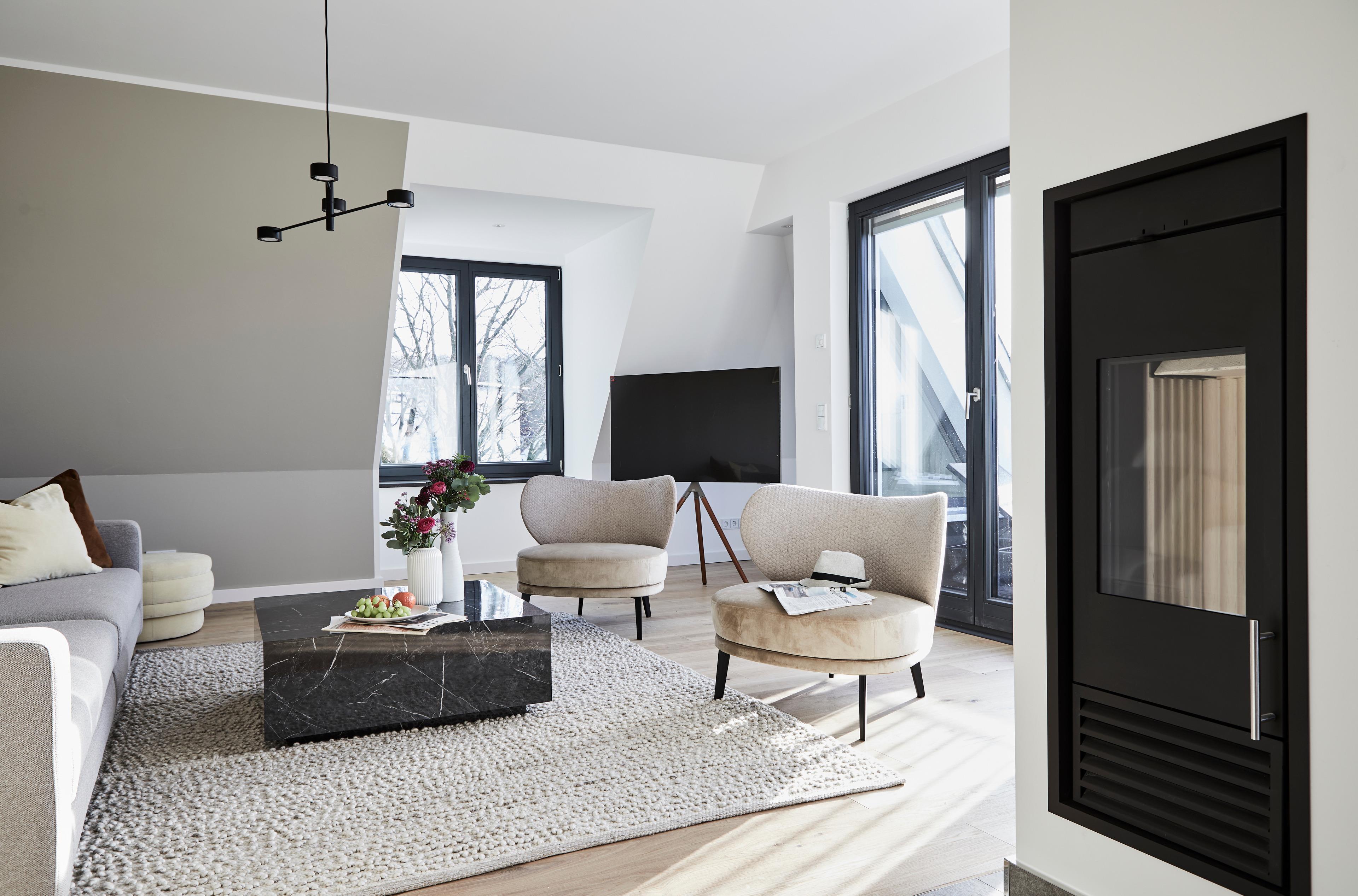 Hoch über den Dächern von Sellin ist das Sunseeker Bay – Penthouse Premium mit privater Design Sauna und Dampfsauna, Balkon, Kamin die größte Wohnung der Villa Baltique.