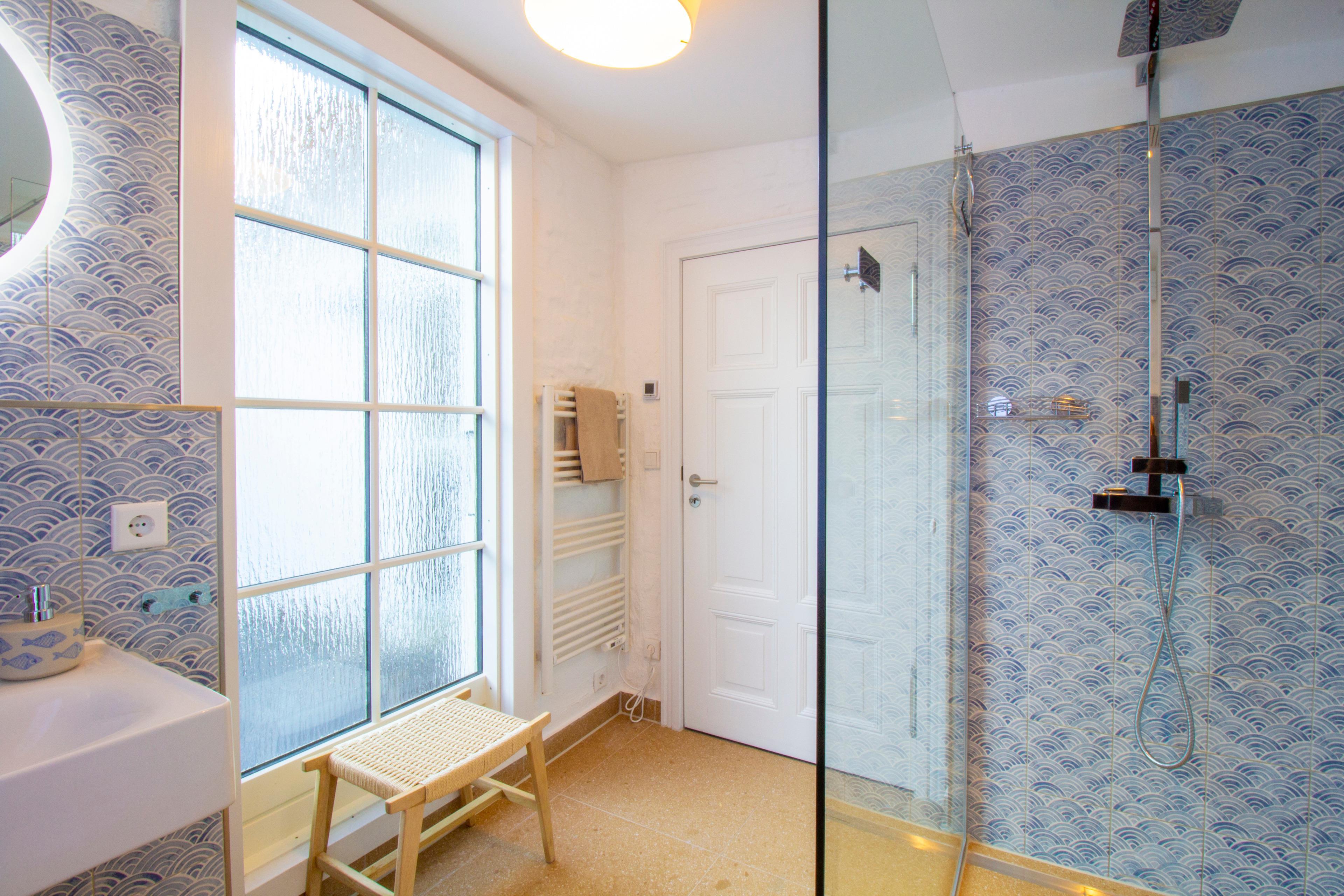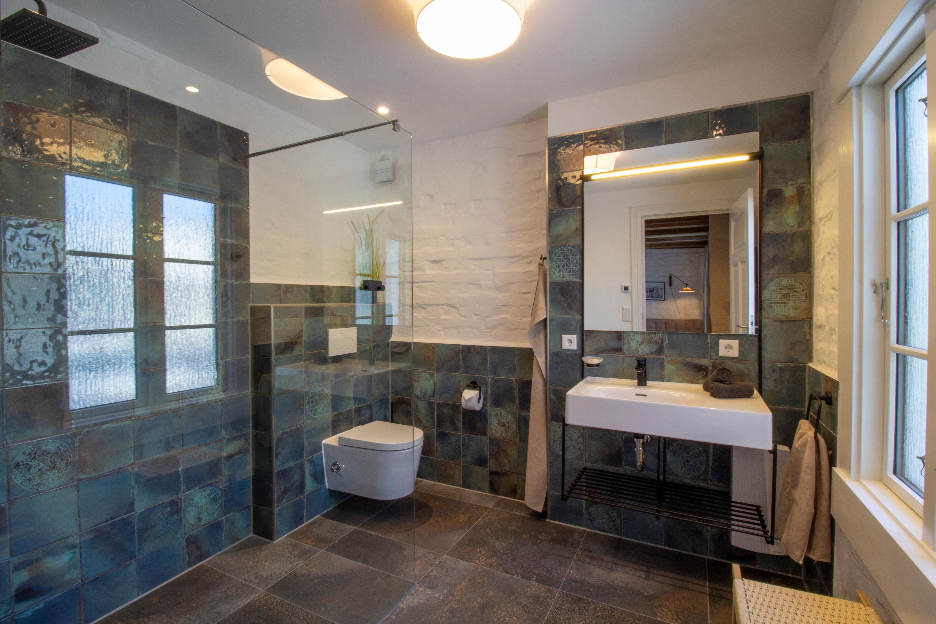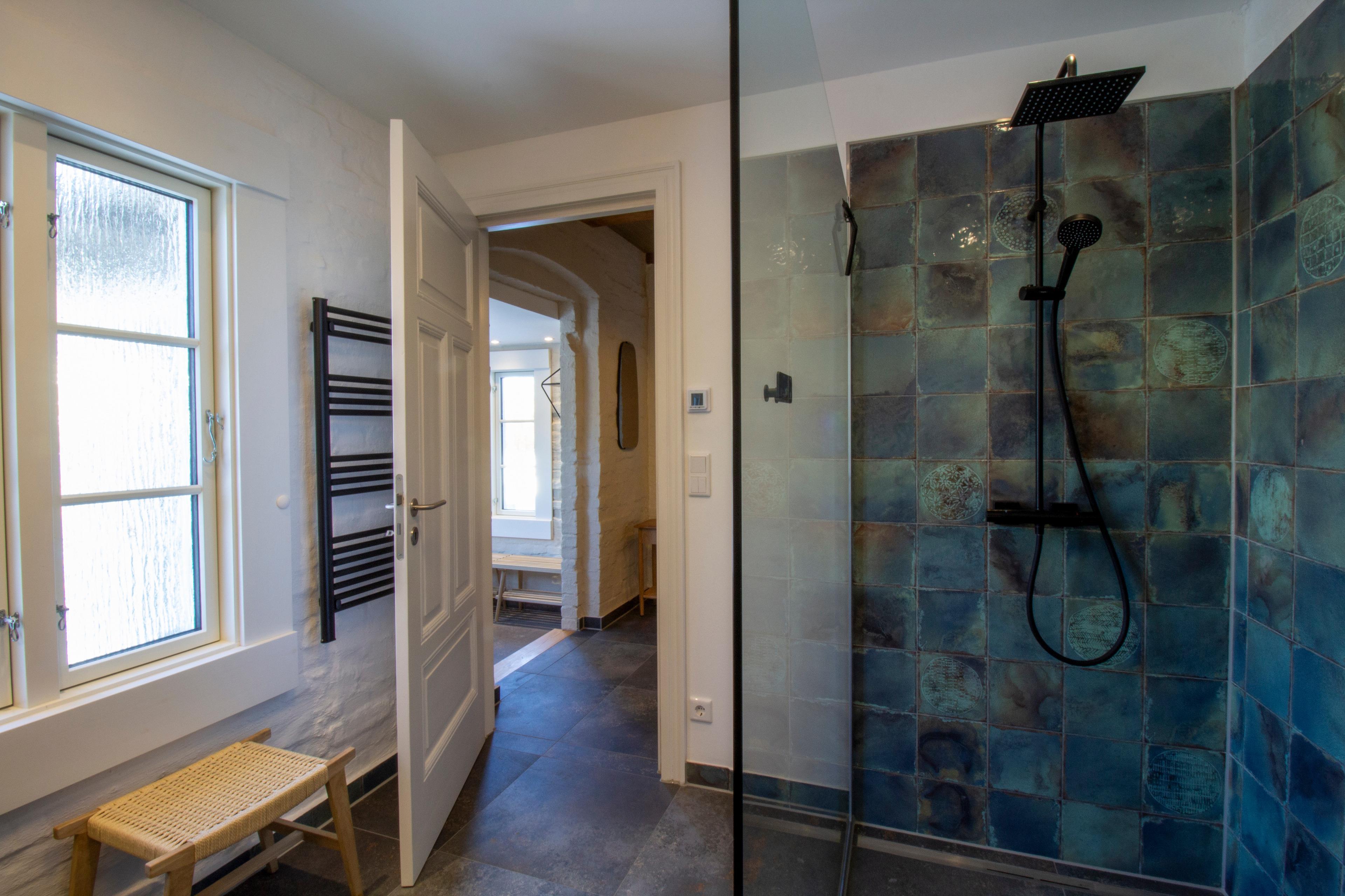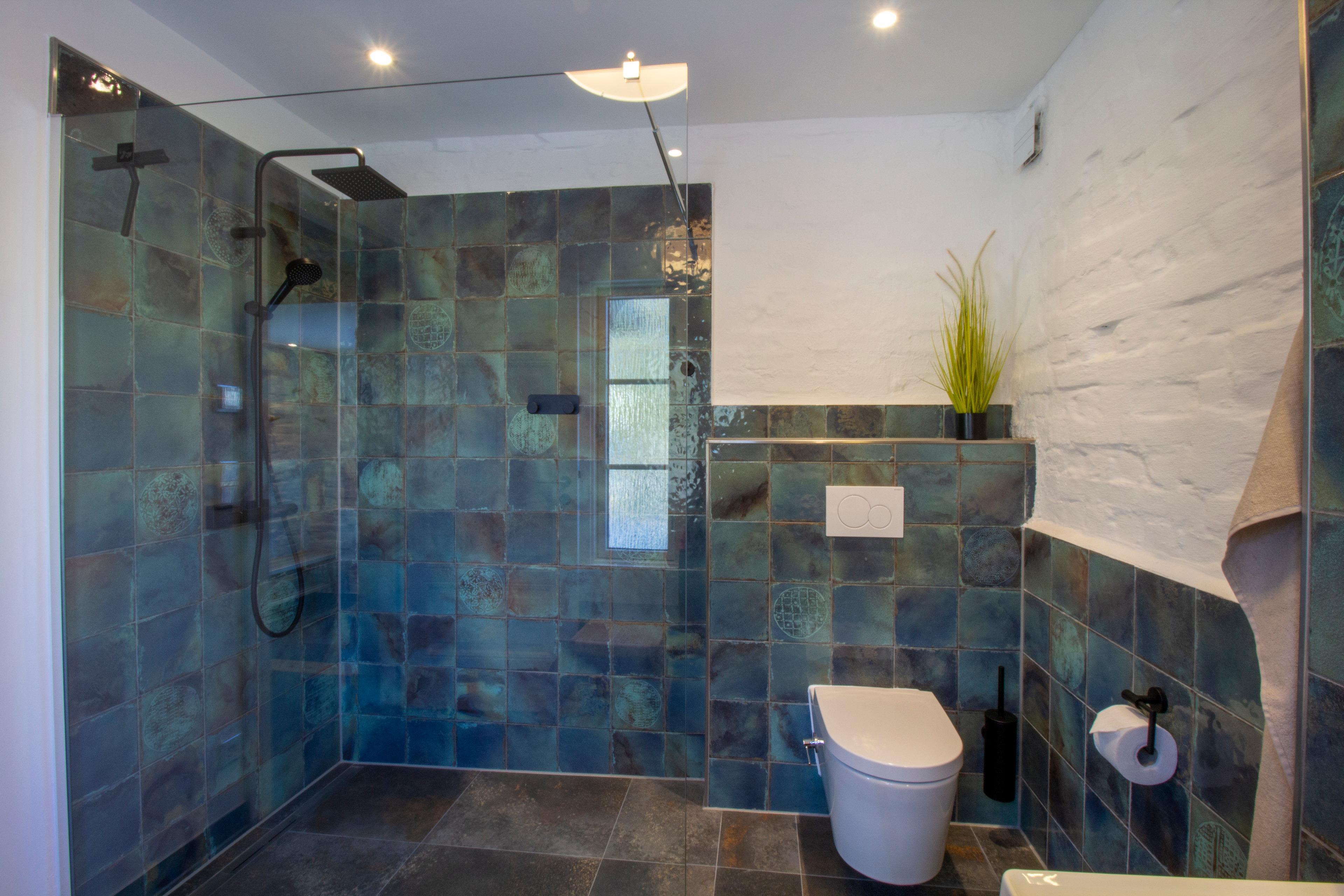 Die beiden Badezimmer des Hauses bieten eine luxuriöse Ausstattung und verfügen über eine ebenerdige Dusche, Fußbodenheizung, WC mit Bidet-Funktion und einen elektrischen Handtuchtrockner. Für zusätzlichen Komfort stehen in beiden Badezimmern Föhne zur Verfügung.