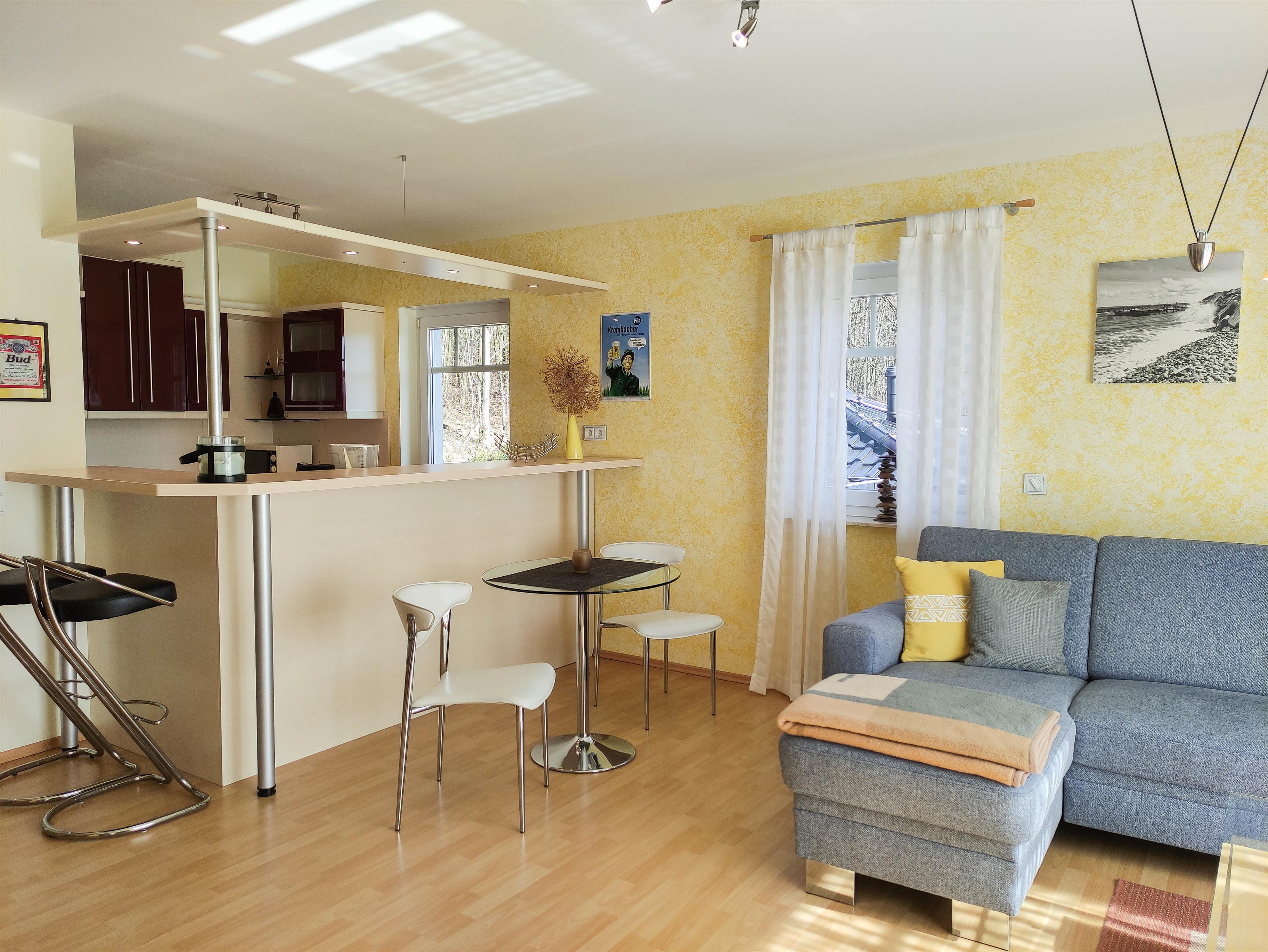 Platz für 2 Personen. Sie verfügt über ein Wohnzimmer, eine Küche, welche sich mit einem Tresen an das Wohnzimmer anschließt,