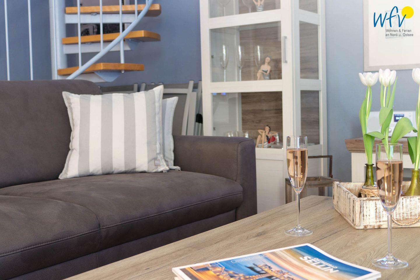 Die geschmackvolle Maisonettewohnung auf Rügen wird Sie begeistern! Harmonische Farbkombinationen, stilvolle Möbel und maritime Accessoires machen die Wohnung zu einer Wohlfühloase.